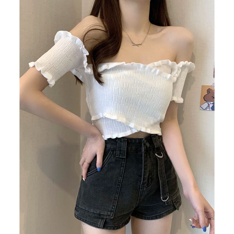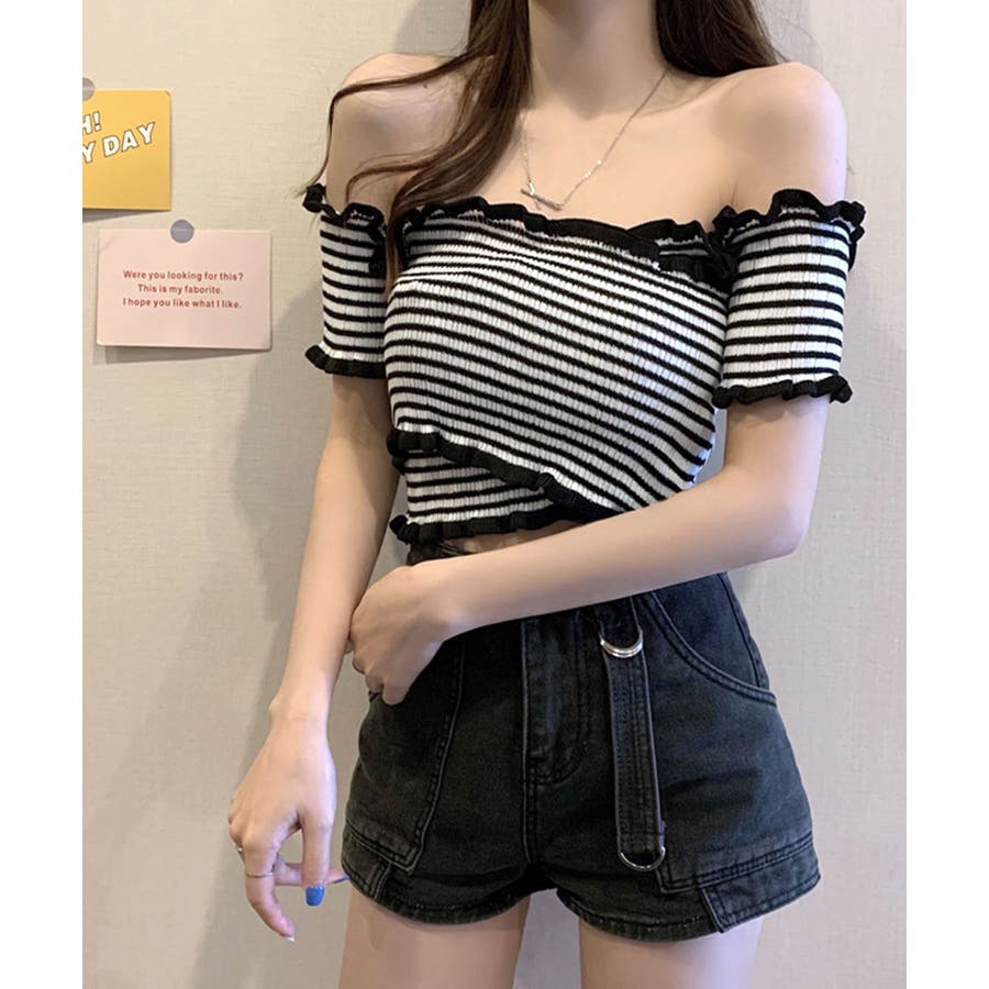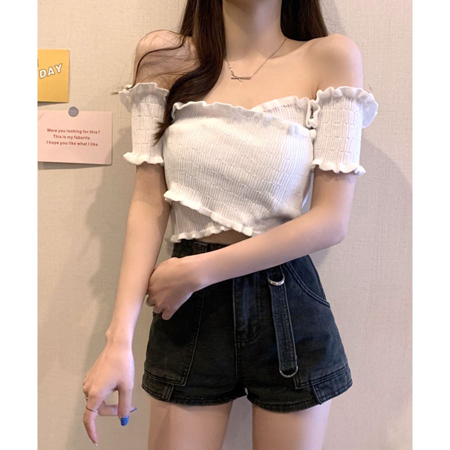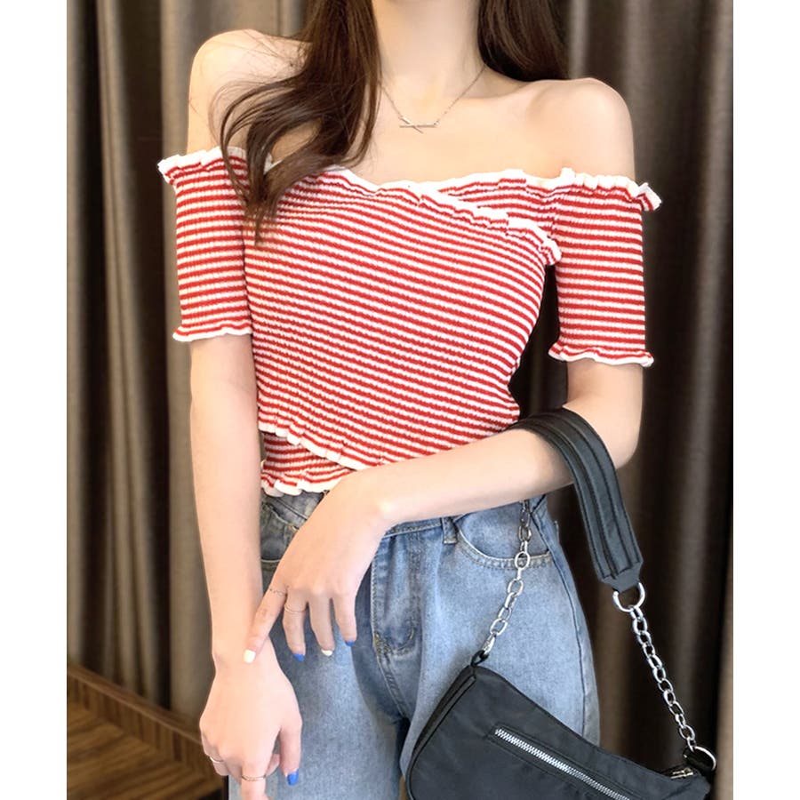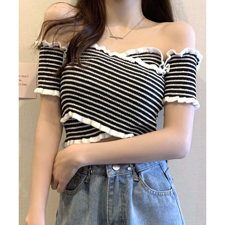 クロスデザインがシャープな印象に オフショルダートップス 半袖