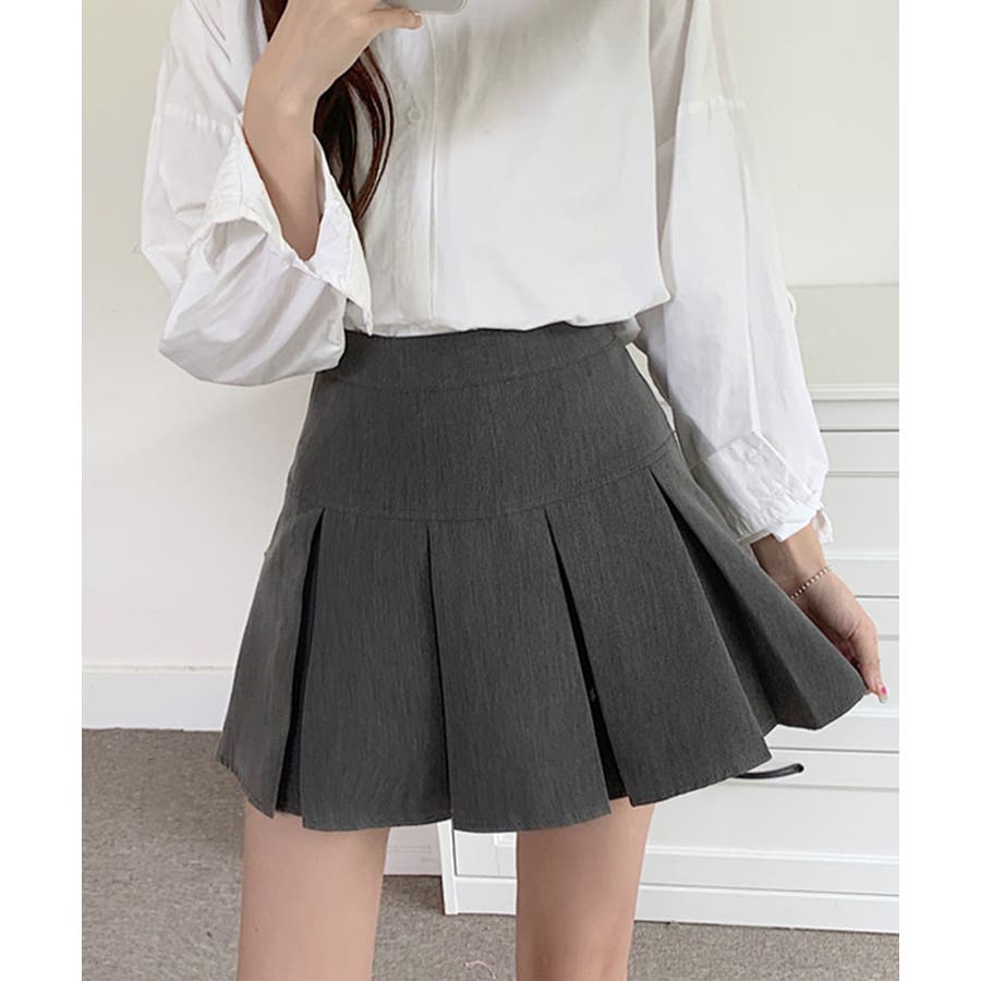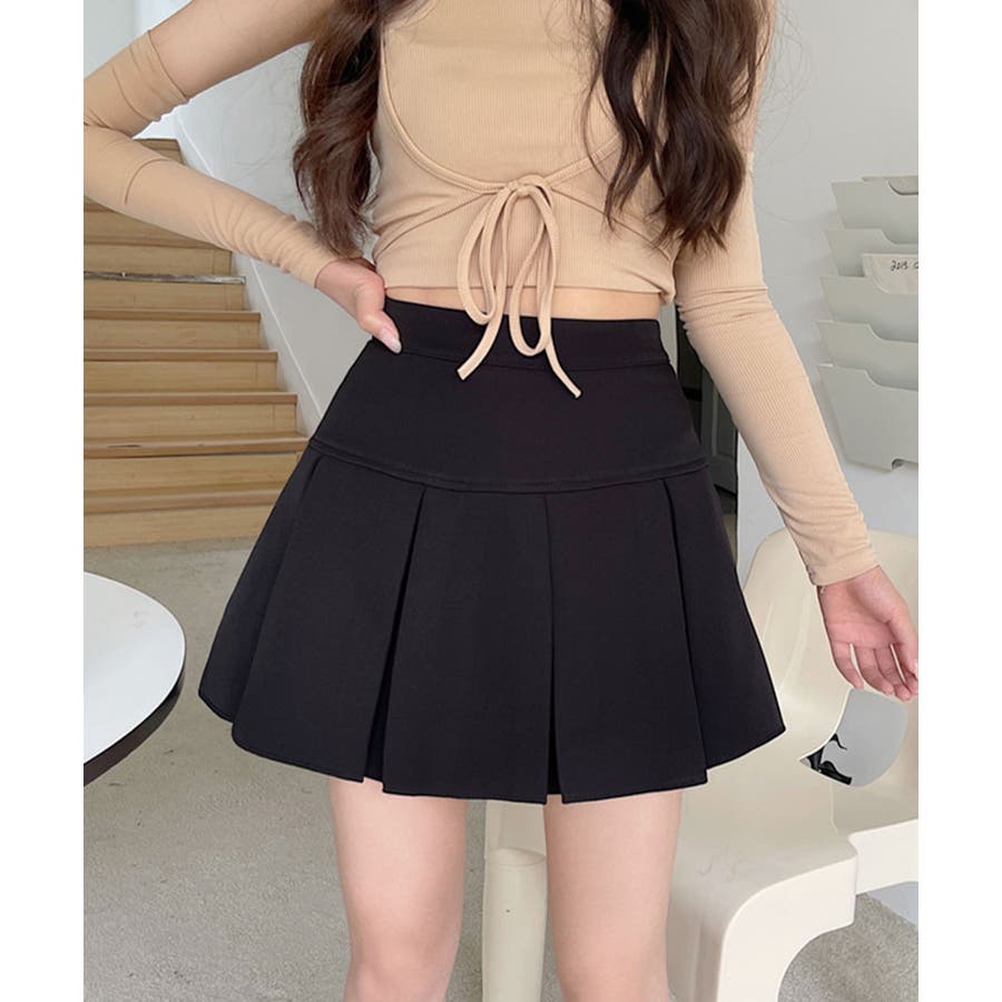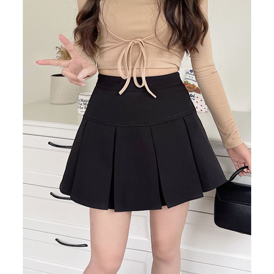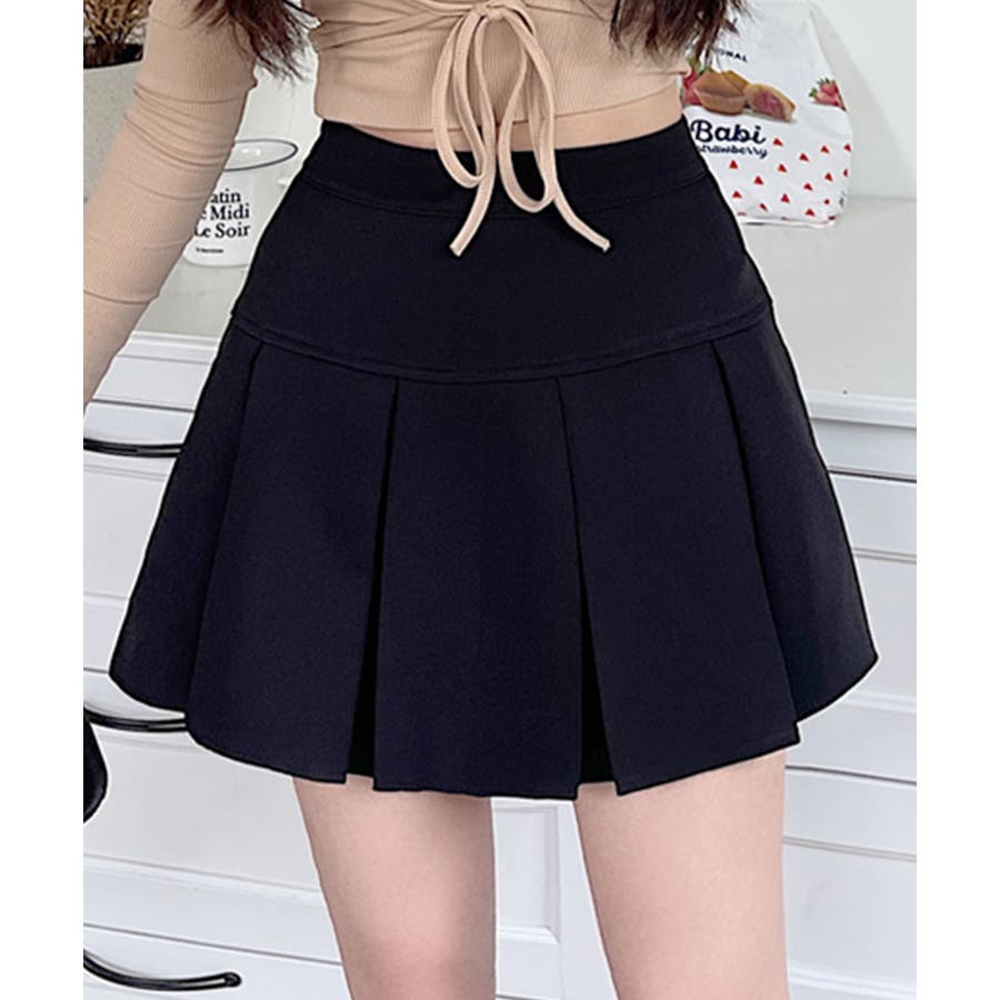 ボックスプリーツで広がりにくく、すとんとしたラインになり着ぶくれしにくいデザインです。Tシャツやパーカーと合わせてカジュアルに着てみたり、キレイめなトップスと合わせても大人っぽく着られるのでコーデの幅が広がります♪インナーパンツ付きで安心です◎