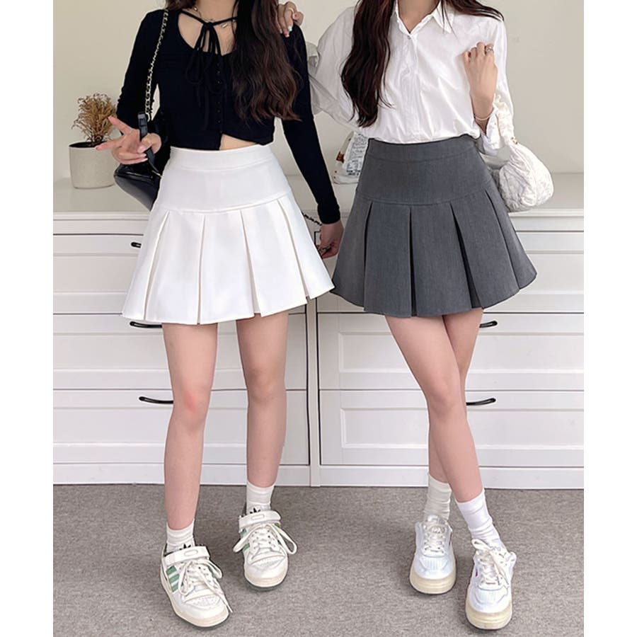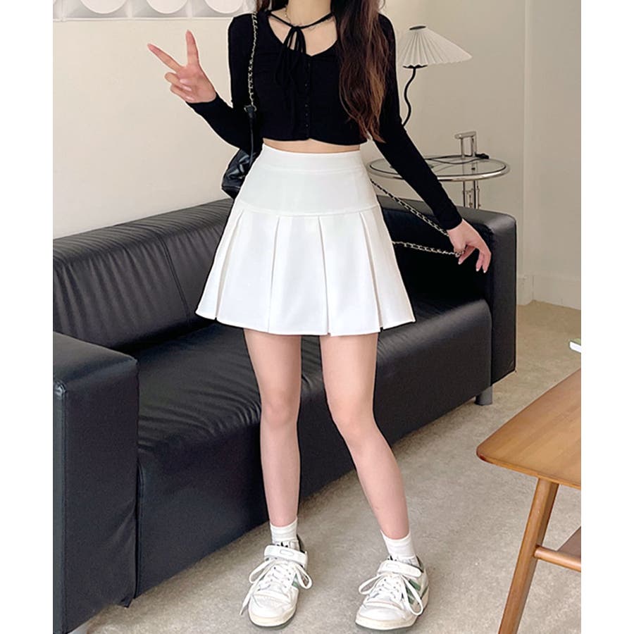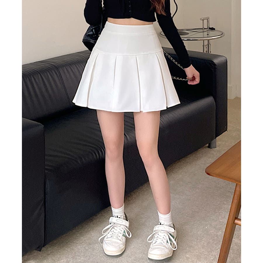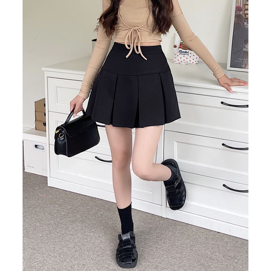 ボックスプリーツで広がりにくく、すとんとしたラインになり着ぶくれしにくいデザインです。Tシャツやパーカーと合わせてカジュアルに着てみたり、キレイめなトップスと合わせても大人っぽく着られるのでコーデの幅が広がります♪インナーパンツ付きで安心です◎