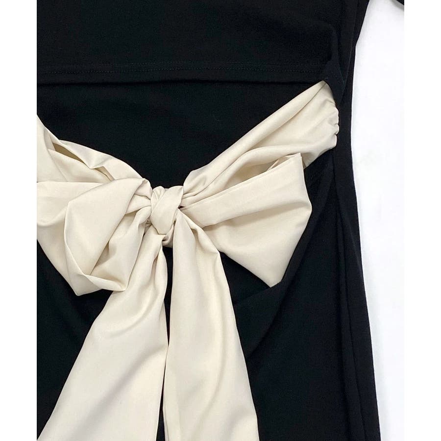 大きなバックリボンがアクセントに 後リボンワンピース ウエスト見せ