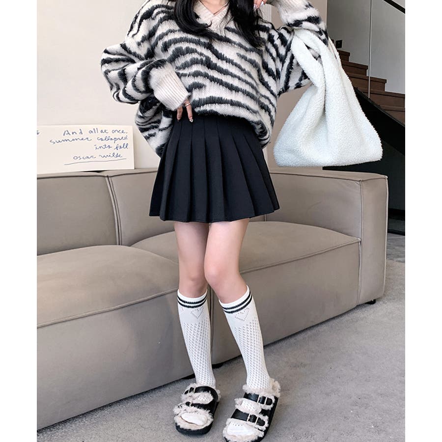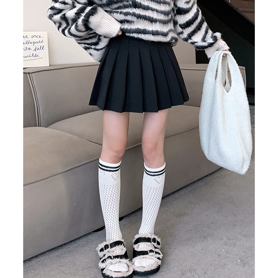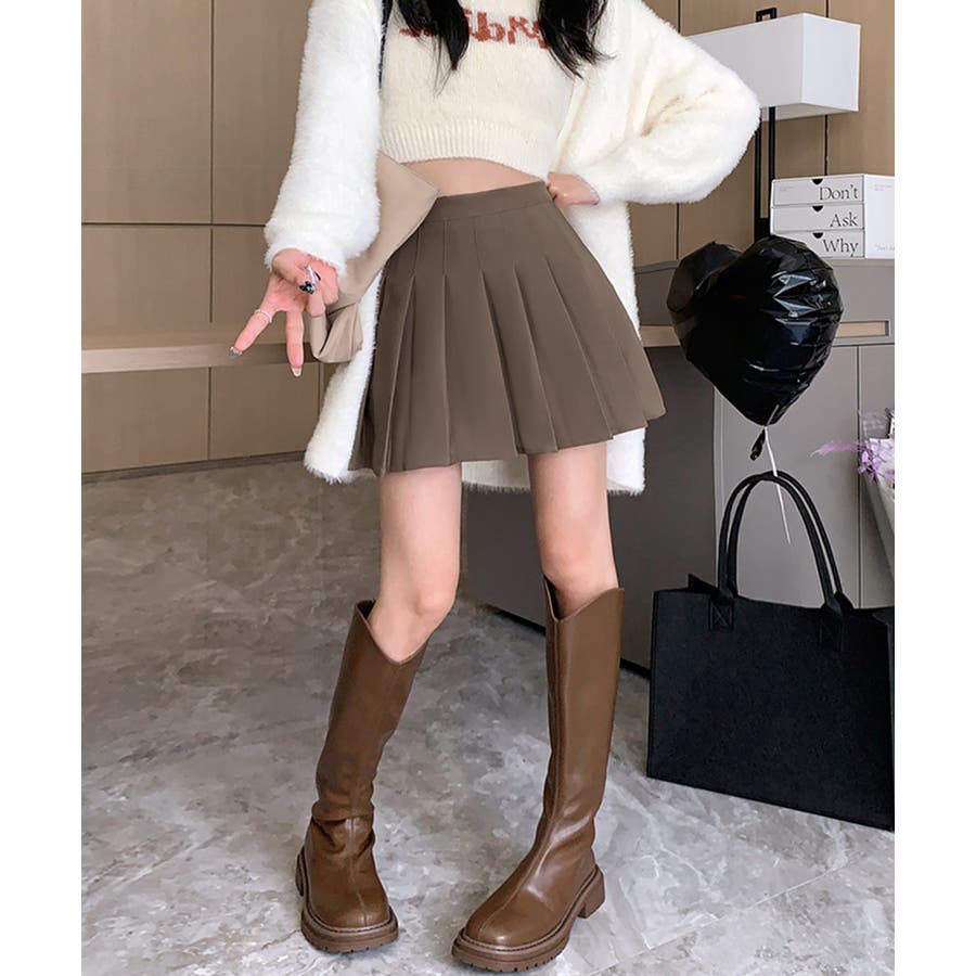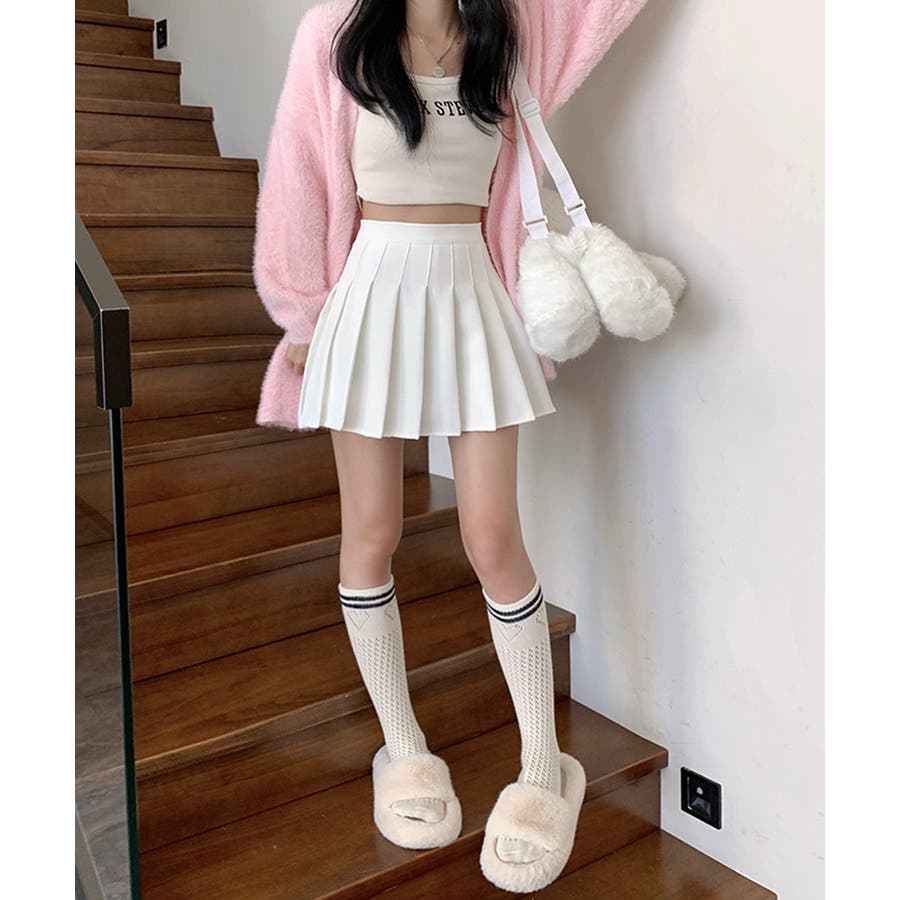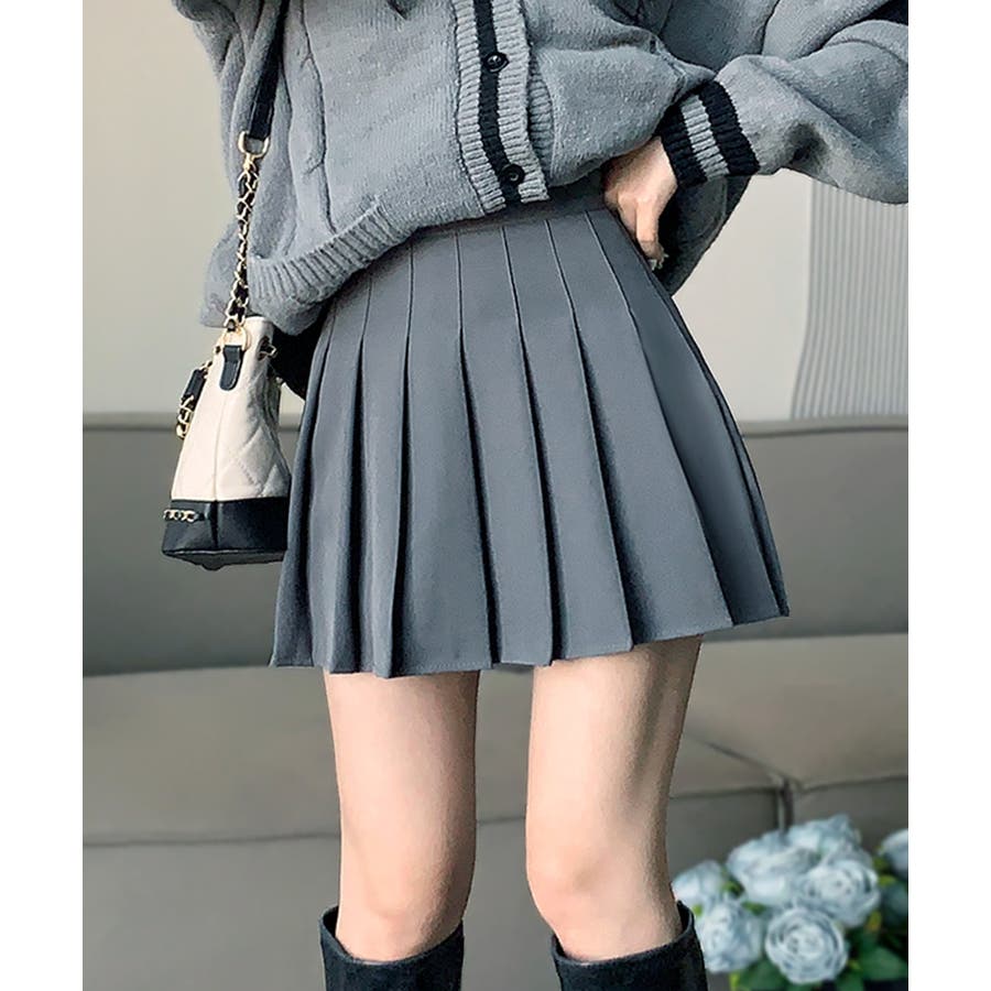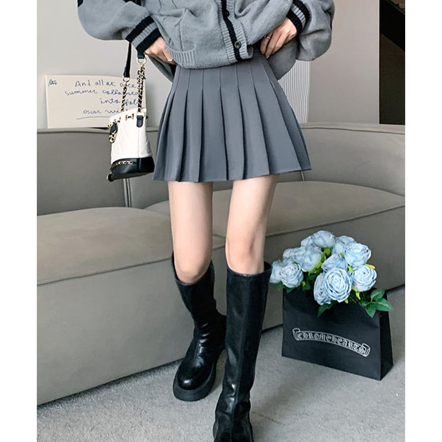 ・脚をすっきりときれいにみせてくれるプリーツスカート。