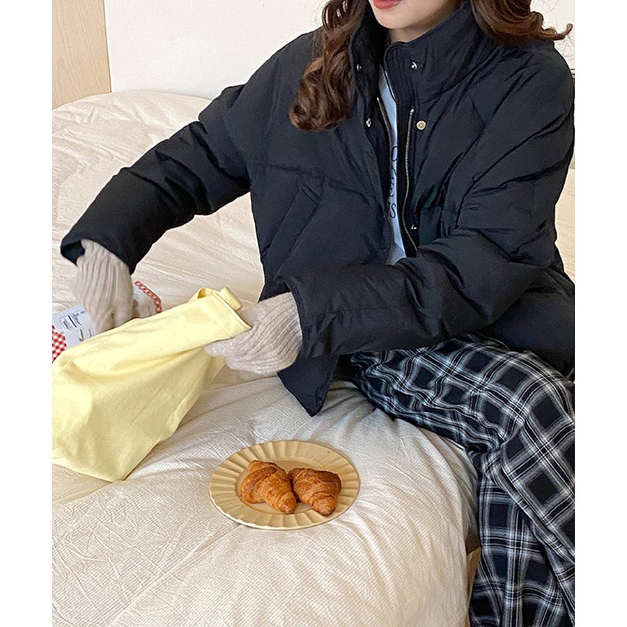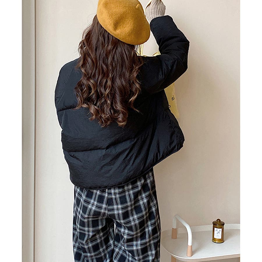 ・首元まであたたかい、シンプルなスタンドネックデザイン。