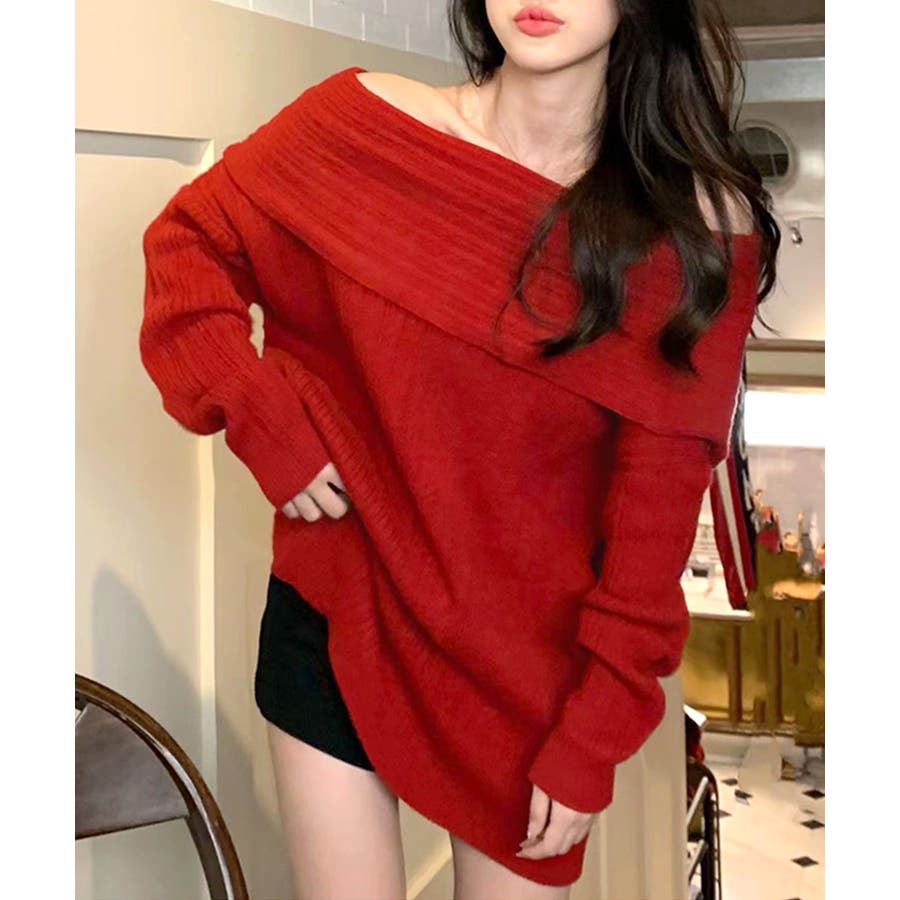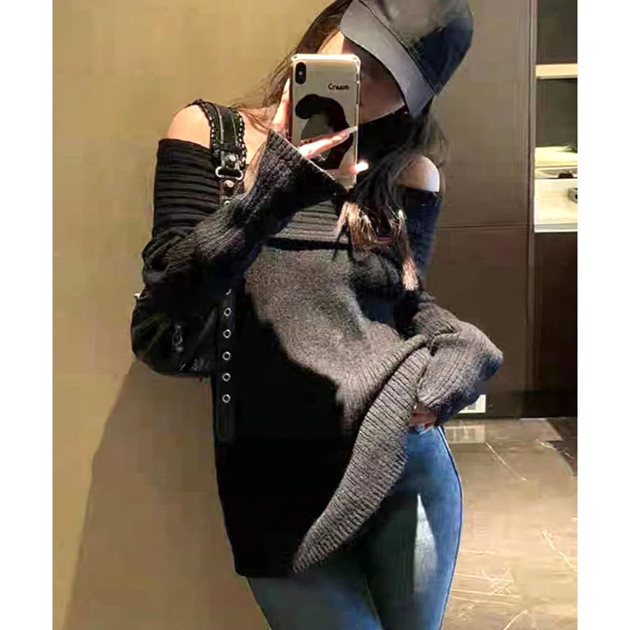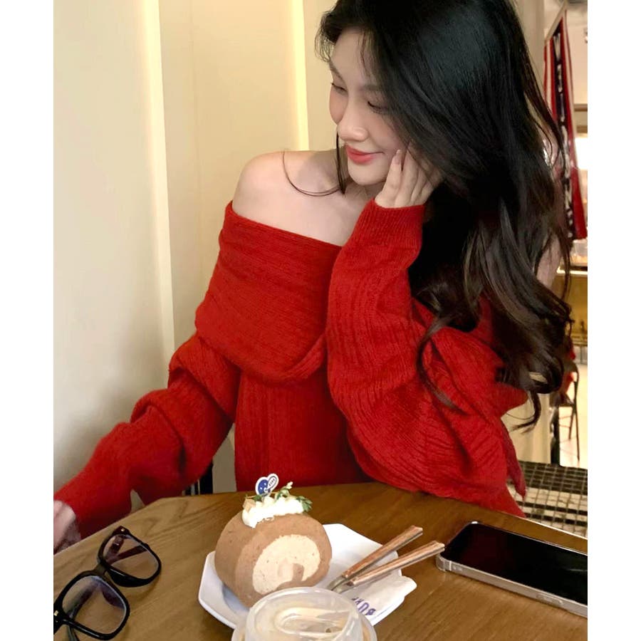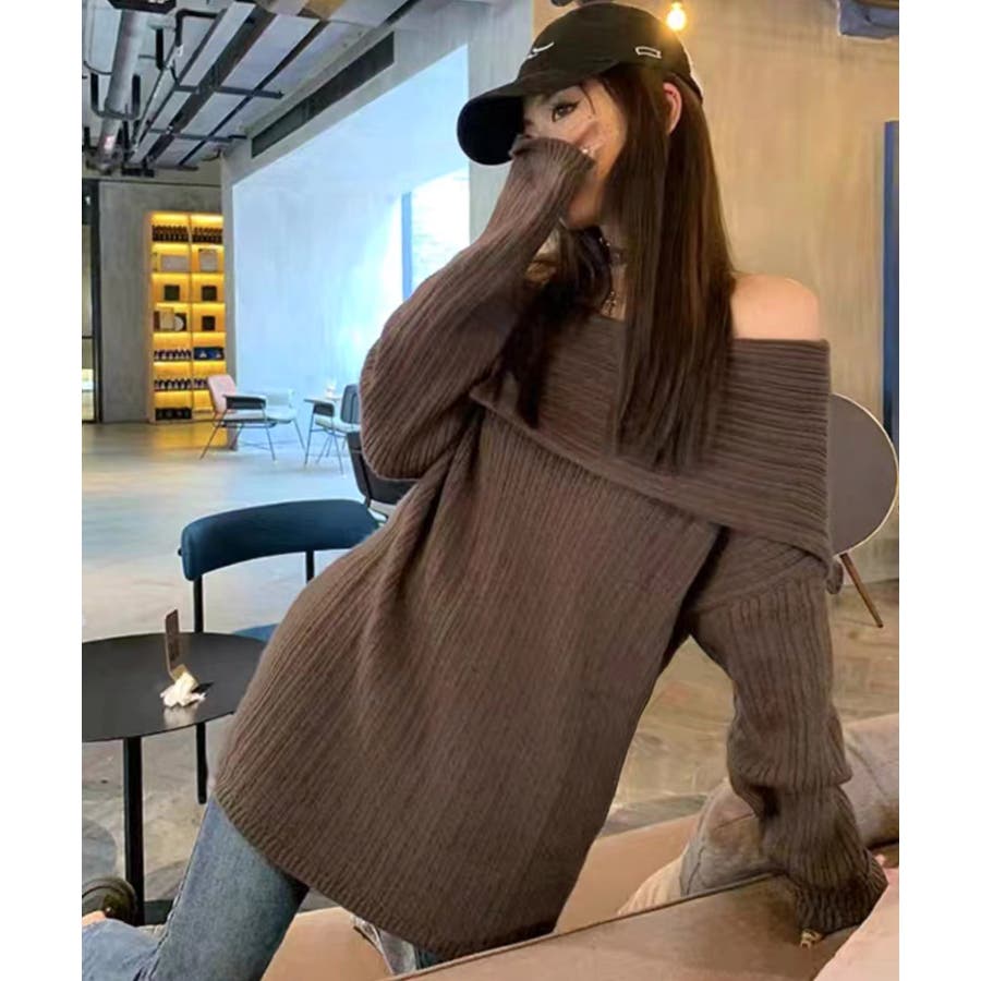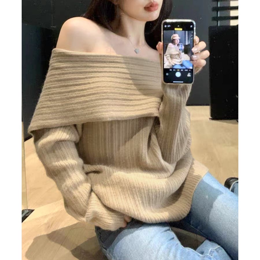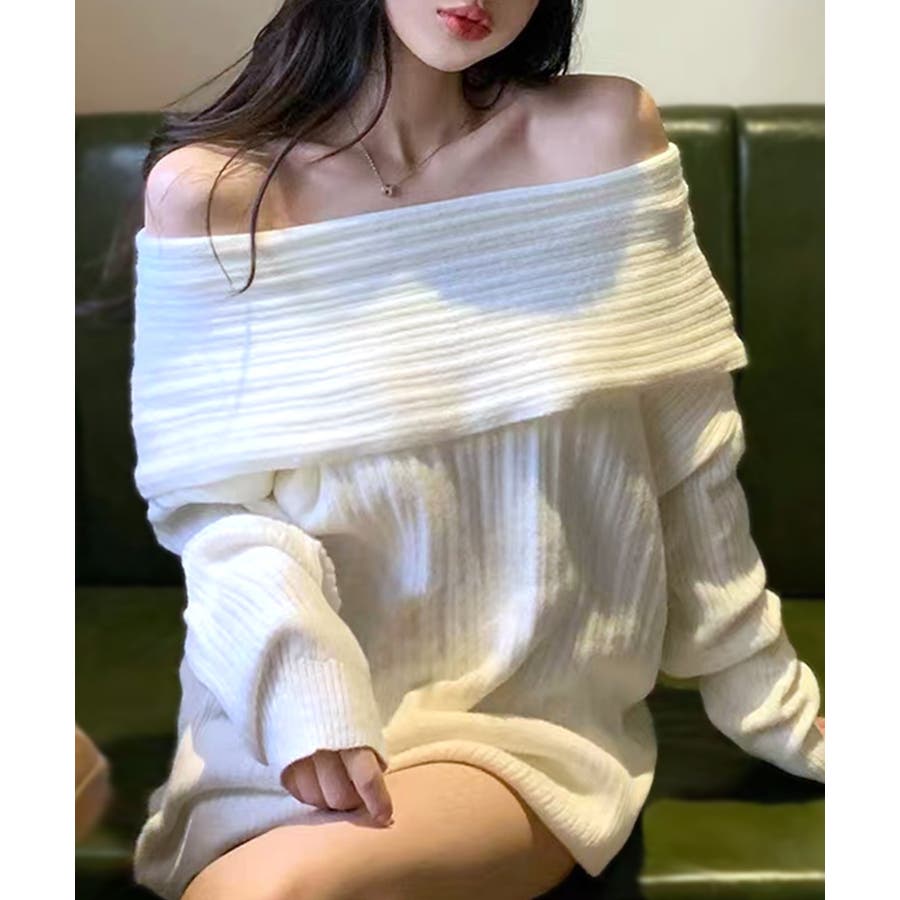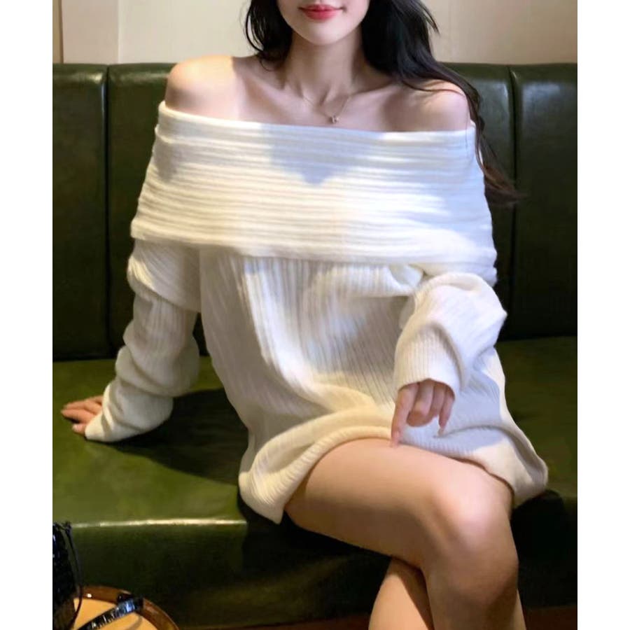 オフショルニットトップス