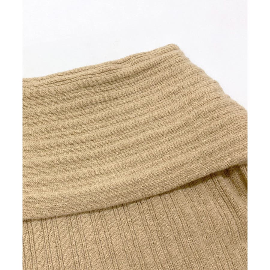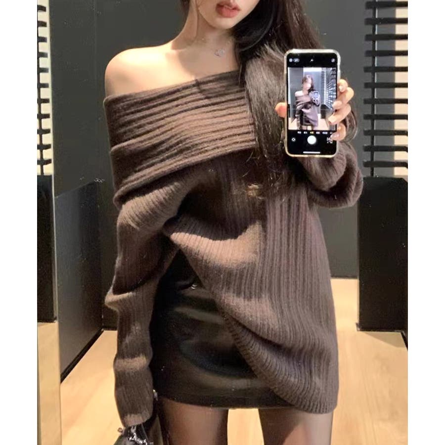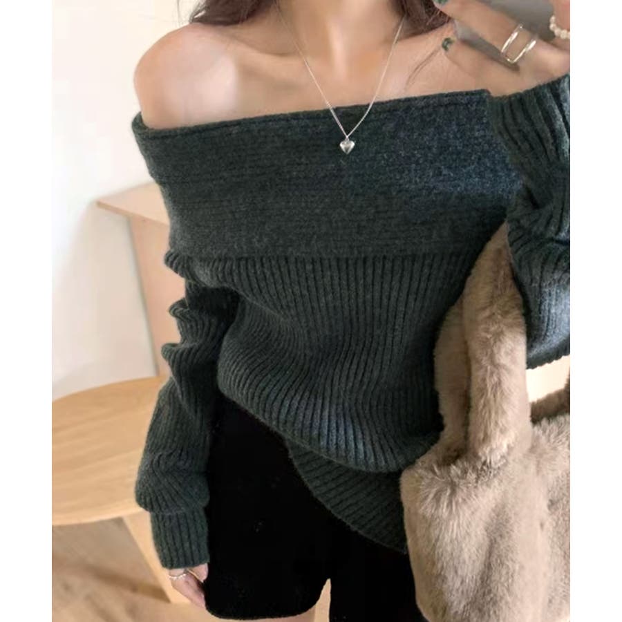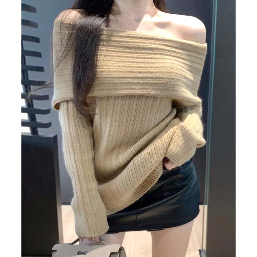 リブ編みが引き立つオフショルニット。