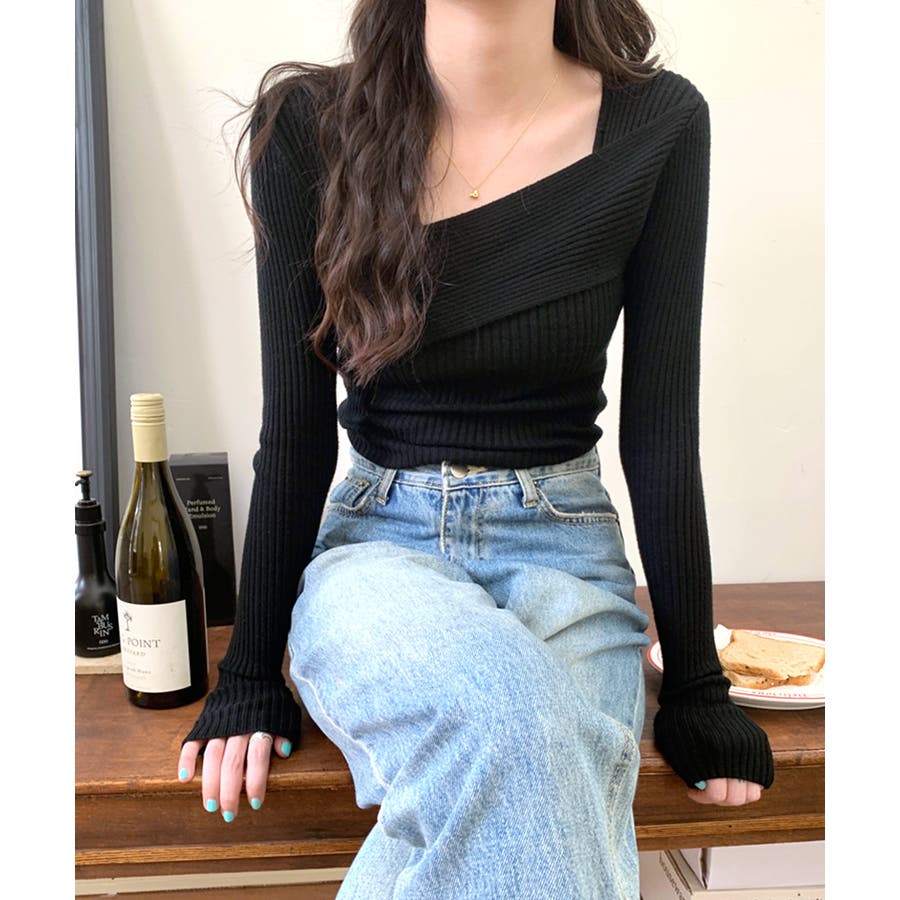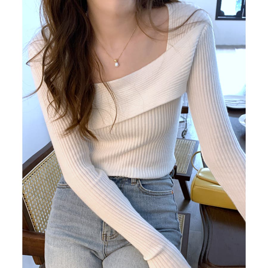 デコルテ見せニット