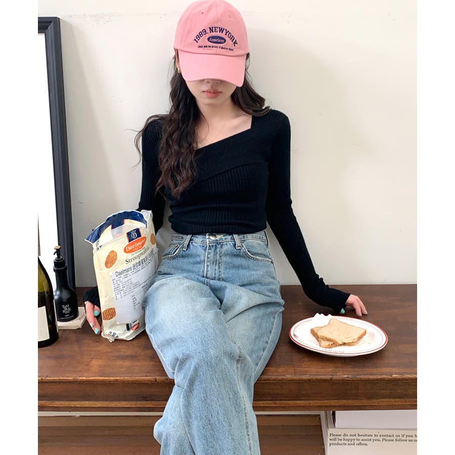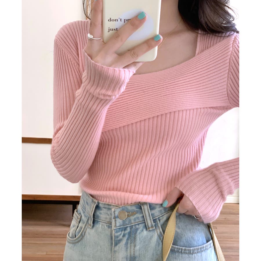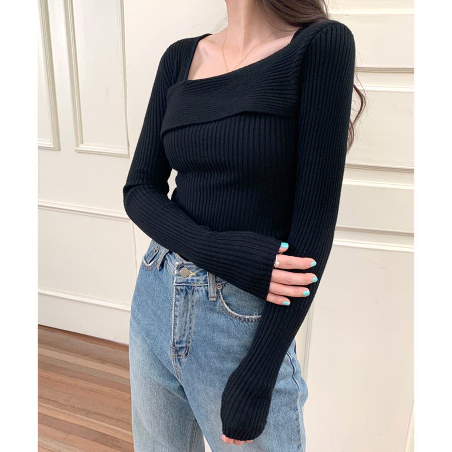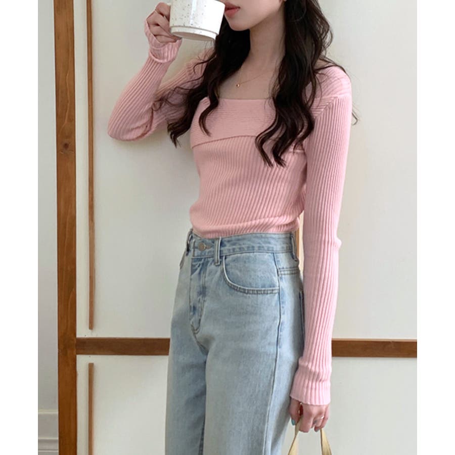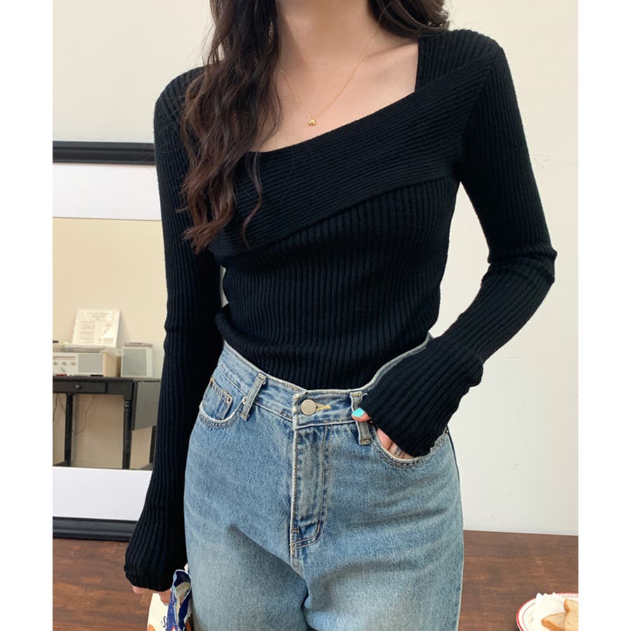 デコルテ見せニット リブニット Tシャツ