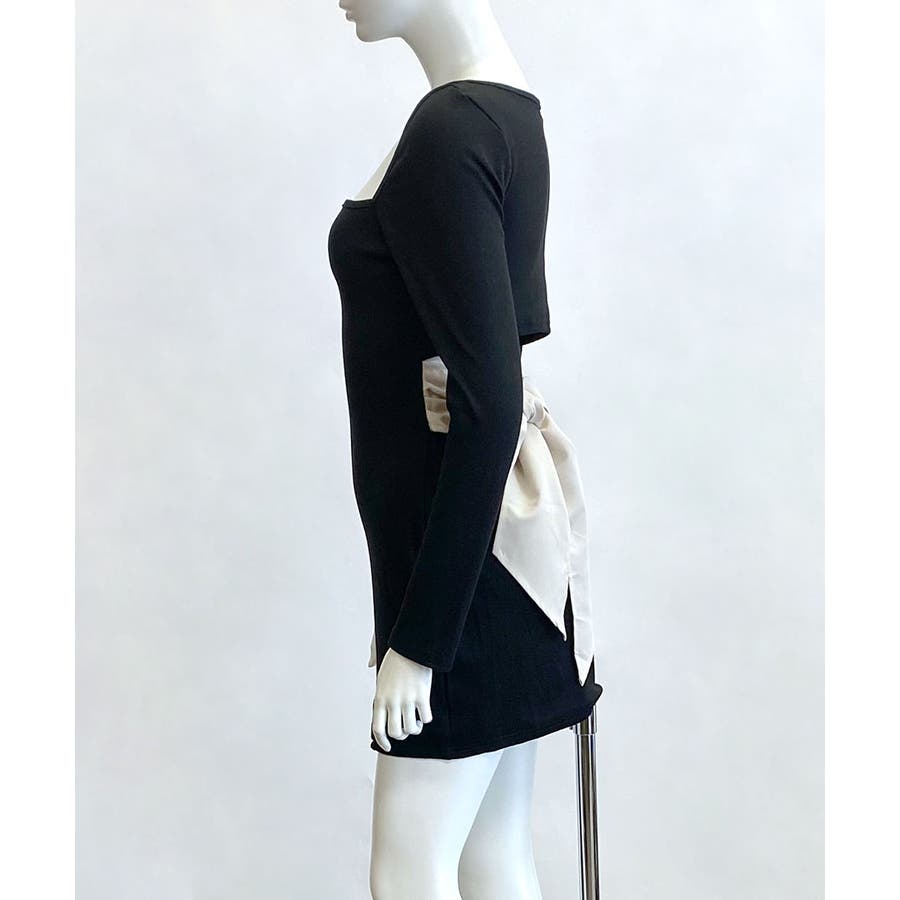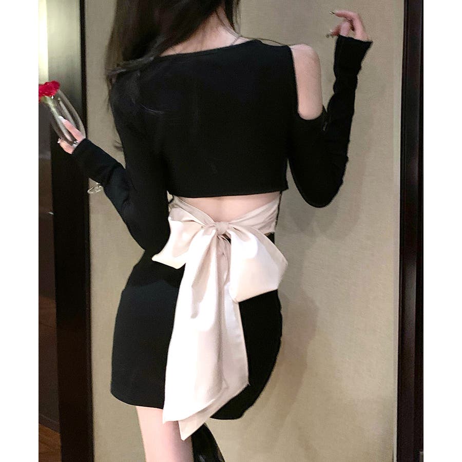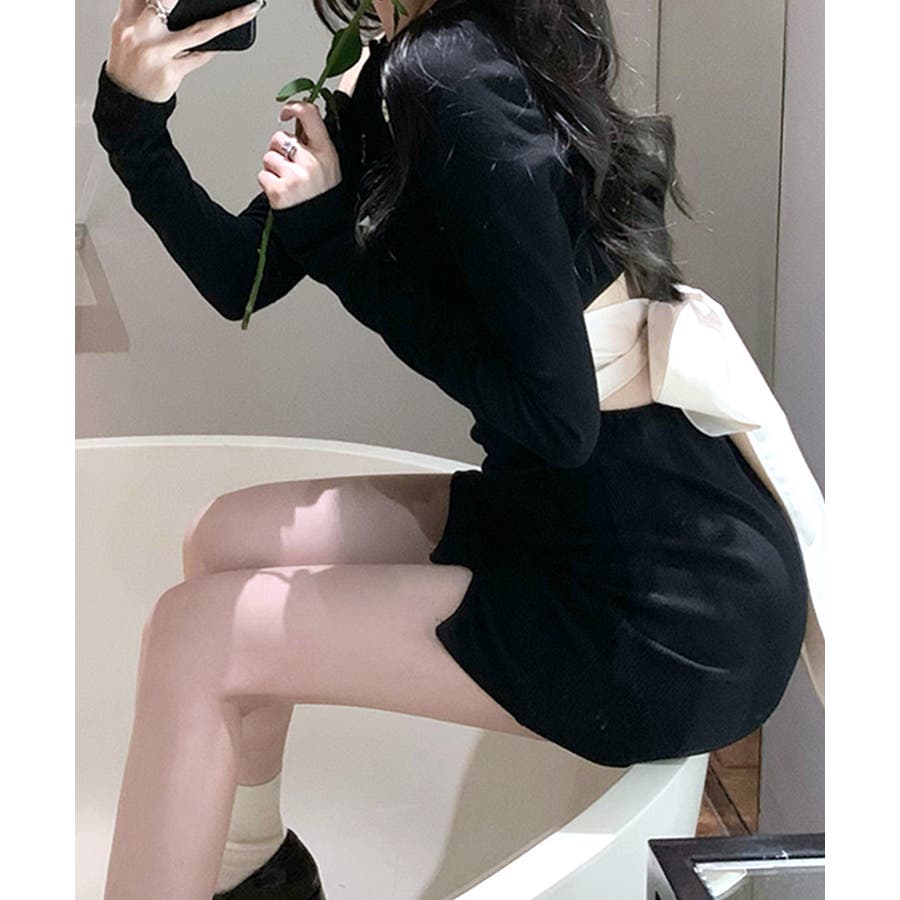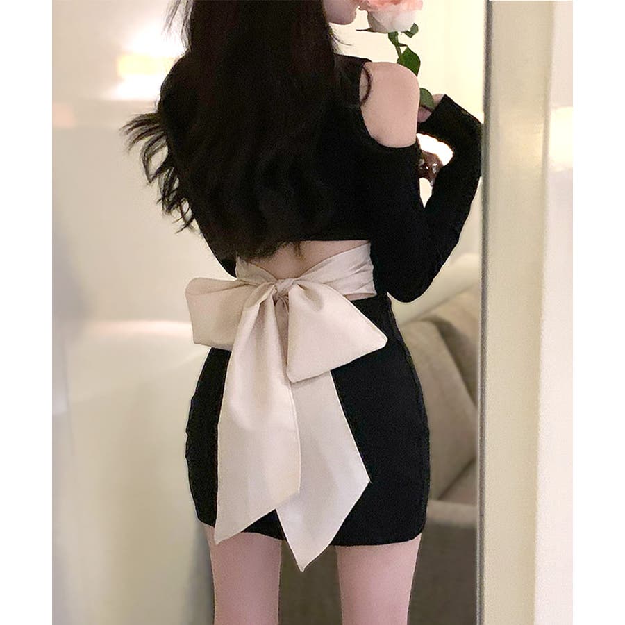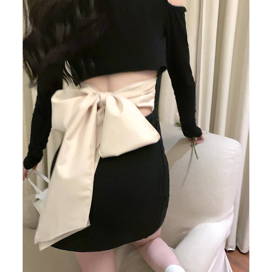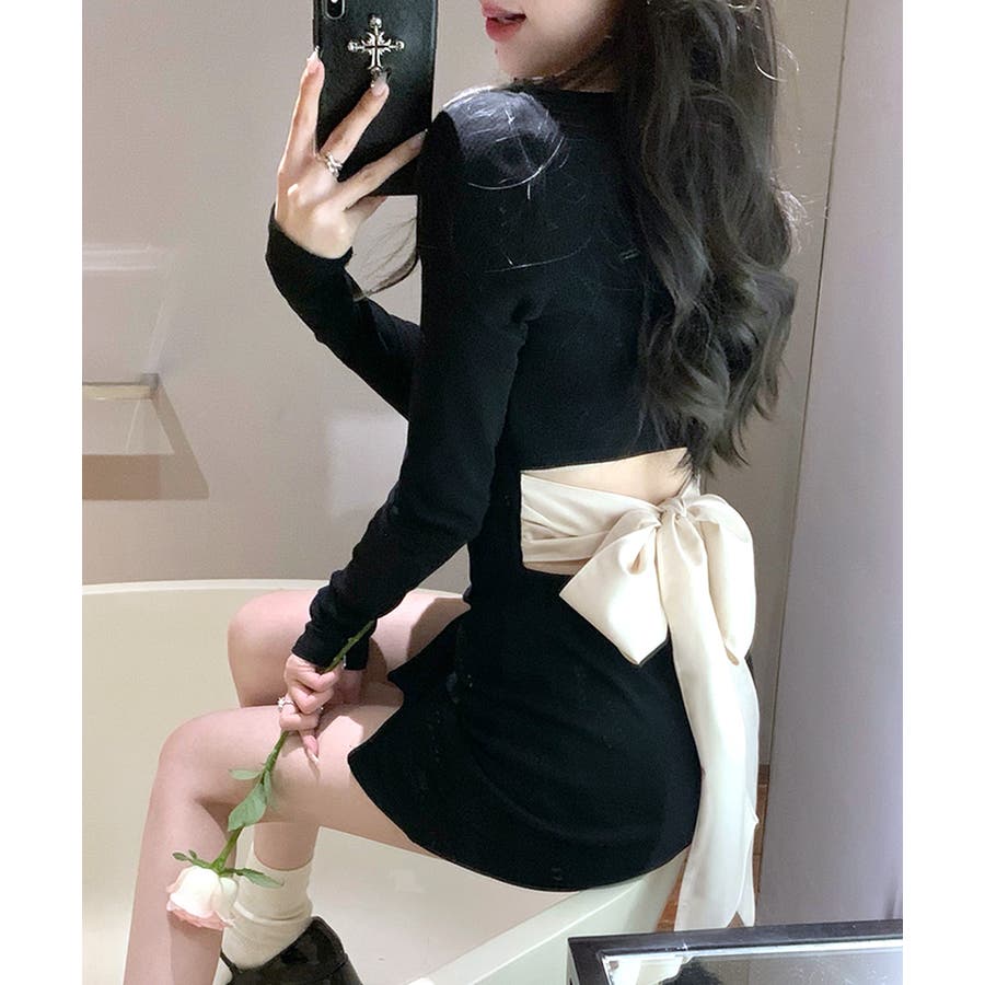 BACKリボン付きミニワンピース ウエスト見せ ミニワンピース