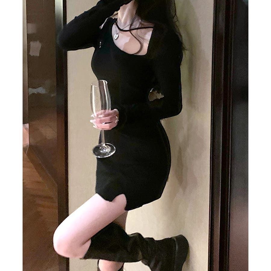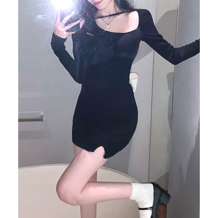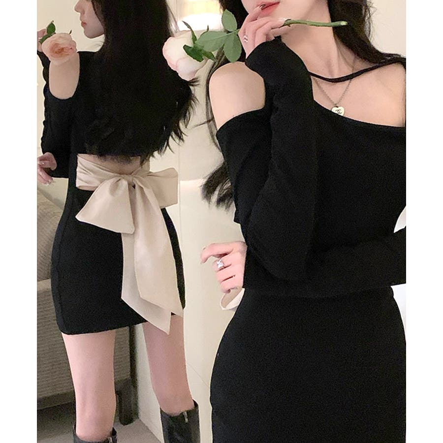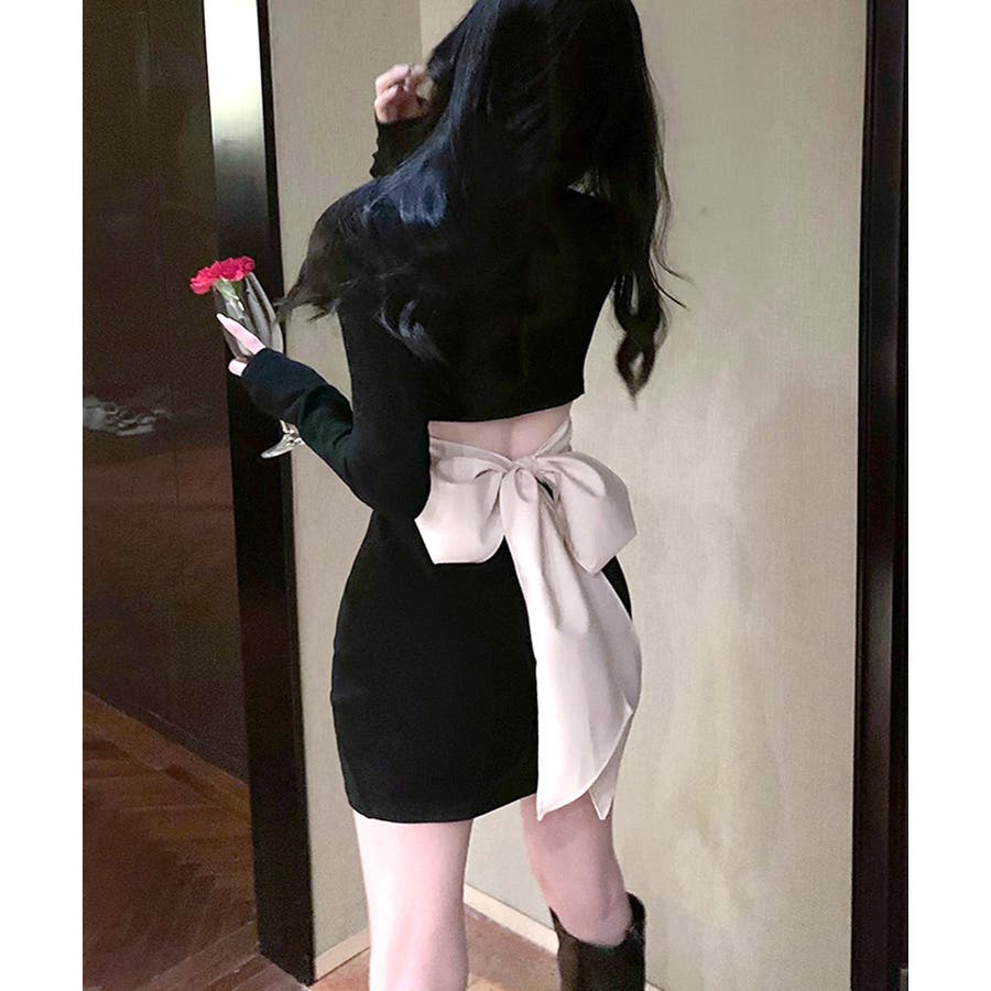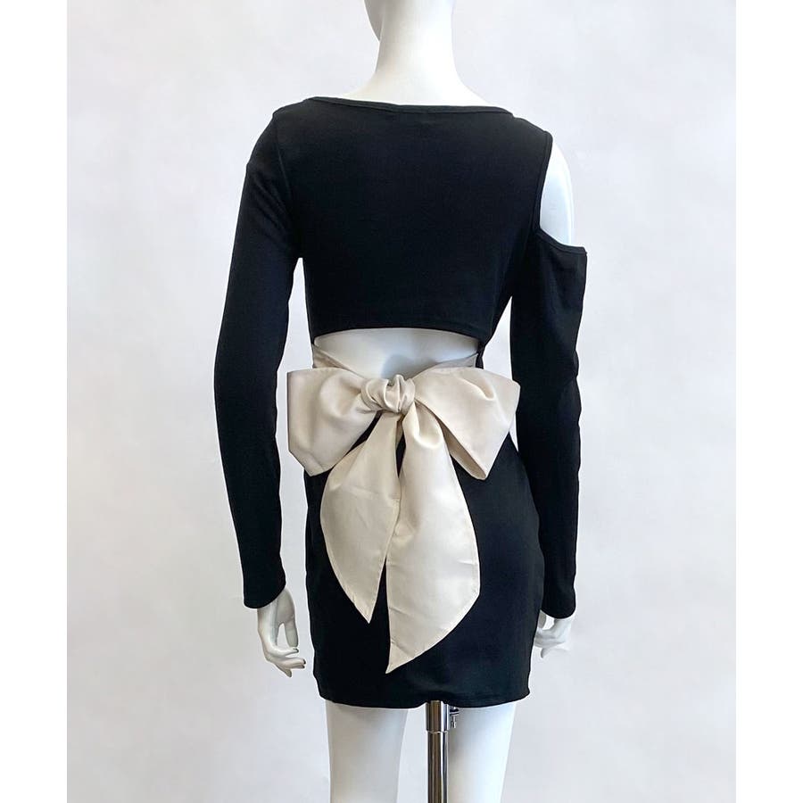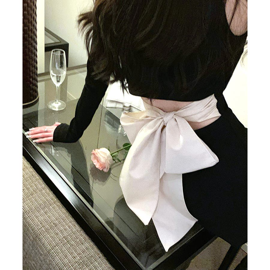 BACKリボン付きミニワンピース ウエスト見せ ミニワンピース