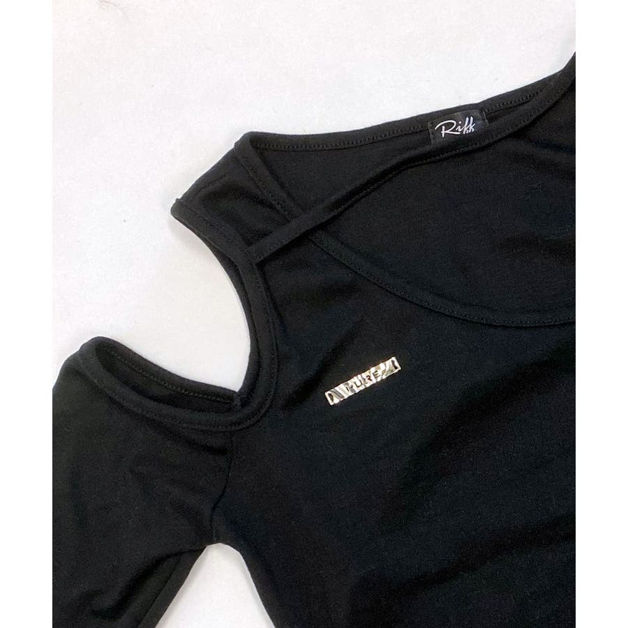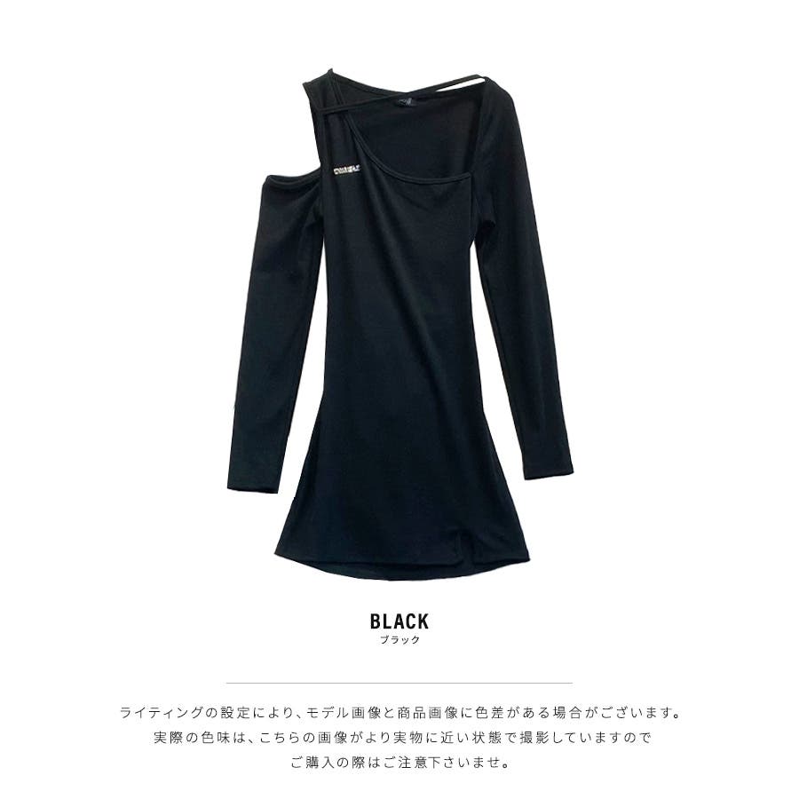 ・アシンメトリーなオープンショルダーがデコルテをスッキリ見せ。