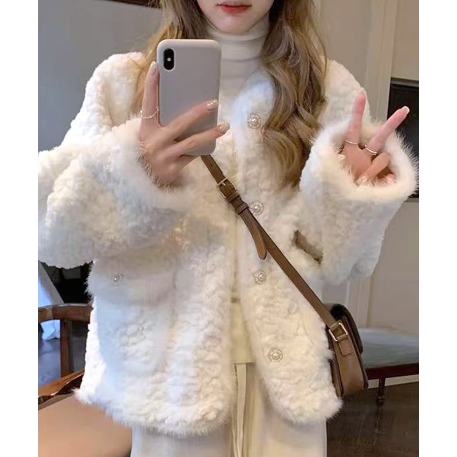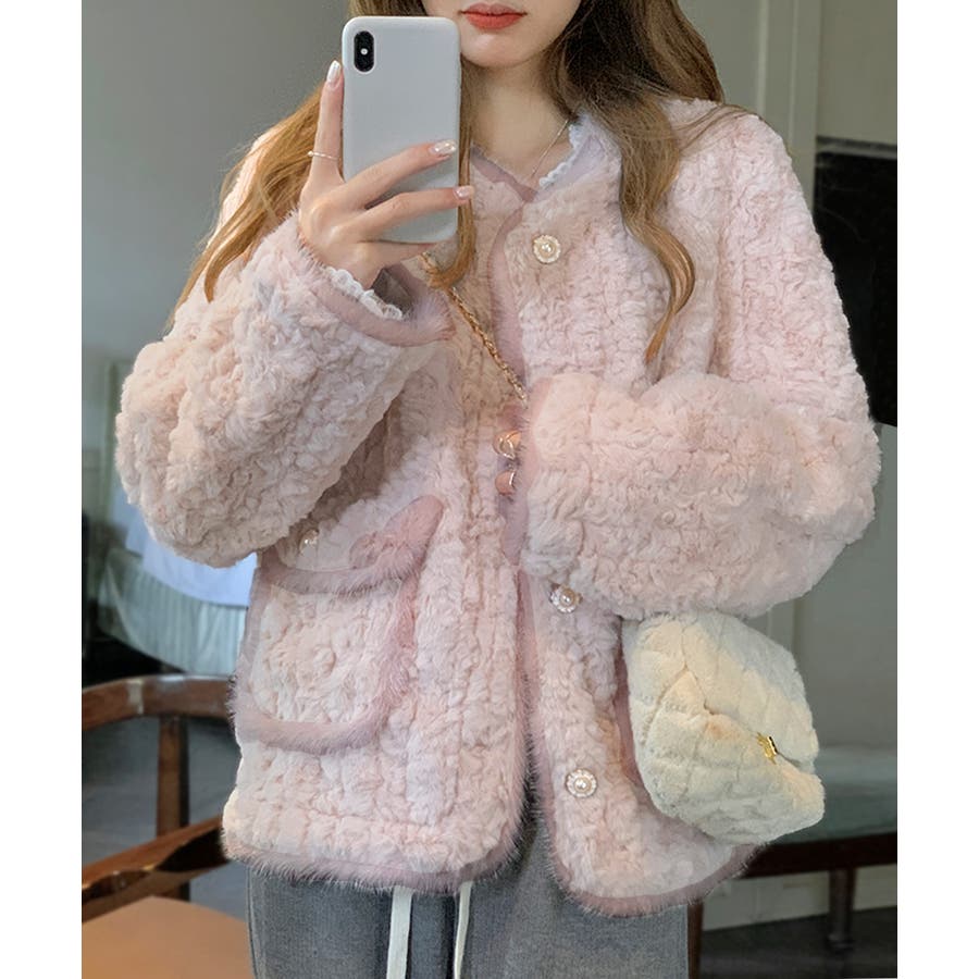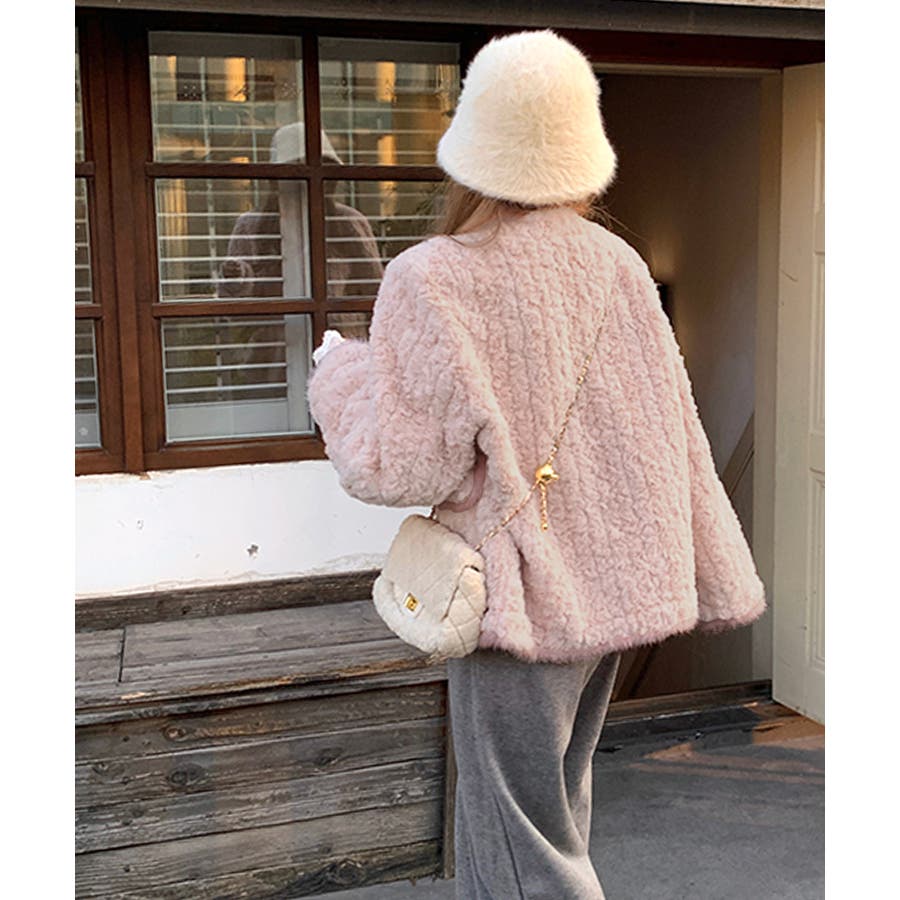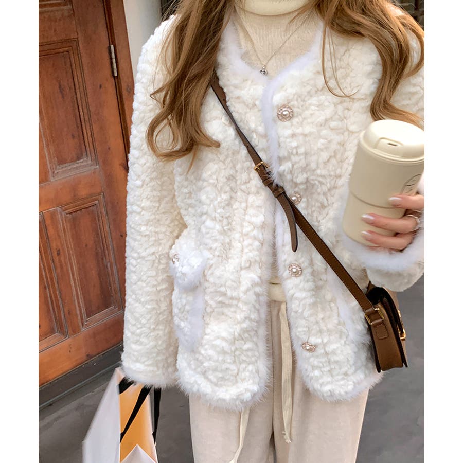 もこもこした肌触りが気持ちいいフェイクファーアウター。