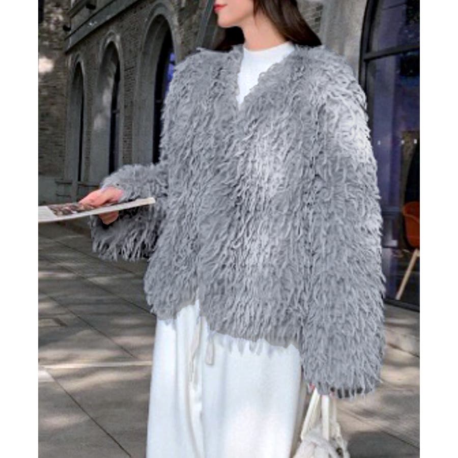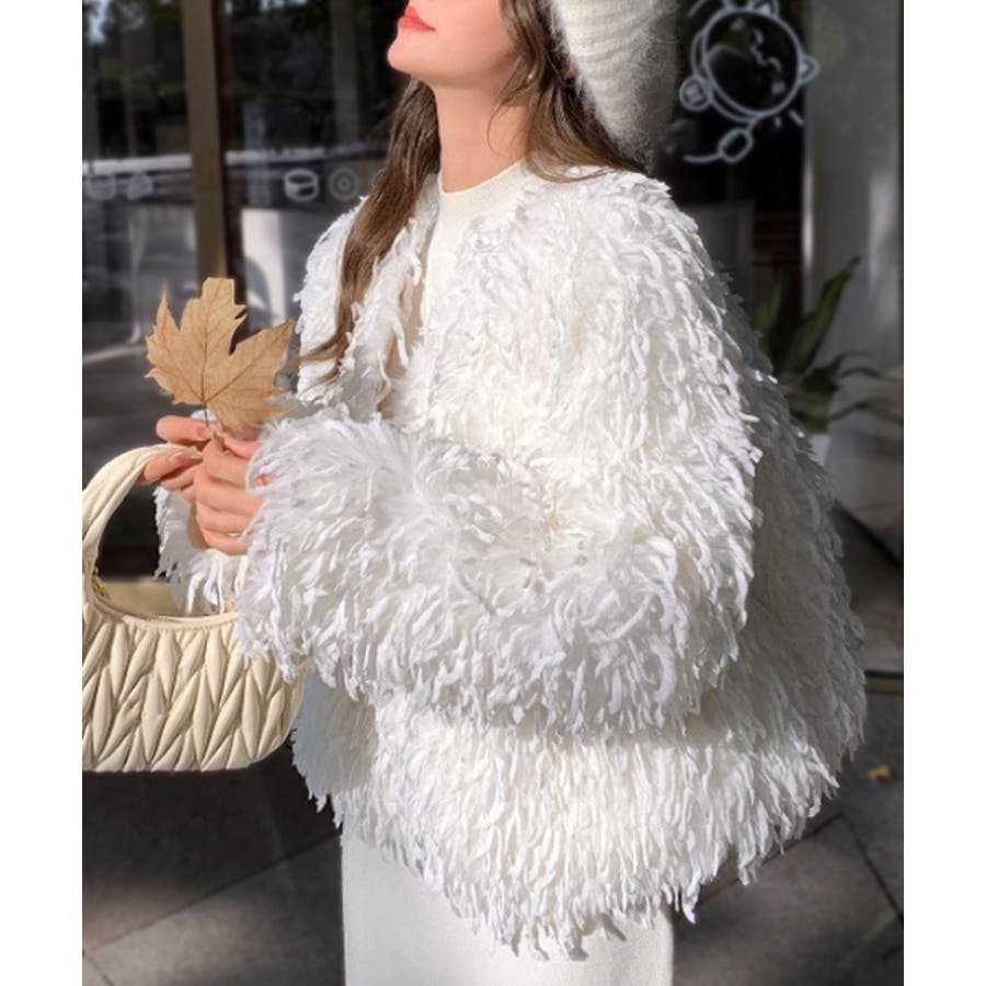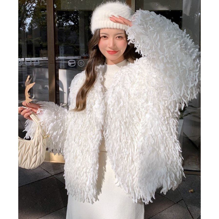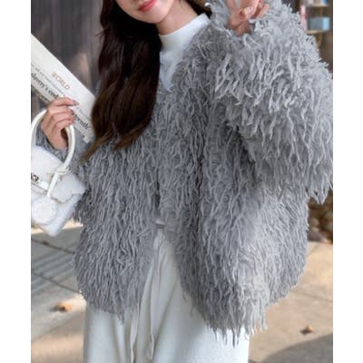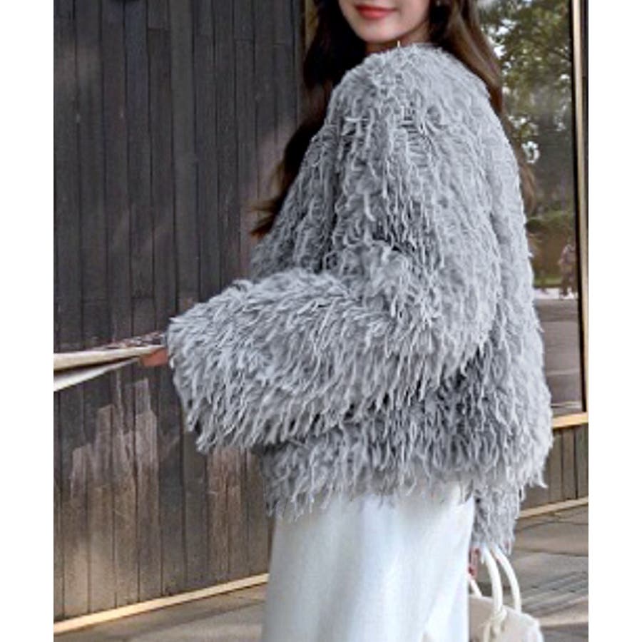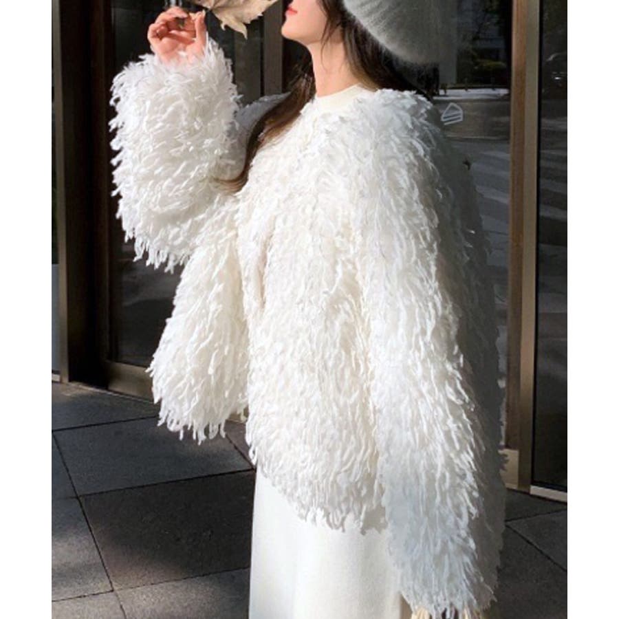 長い毛足のカーリーな動きのあるシャギーファーで存在感抜群♡