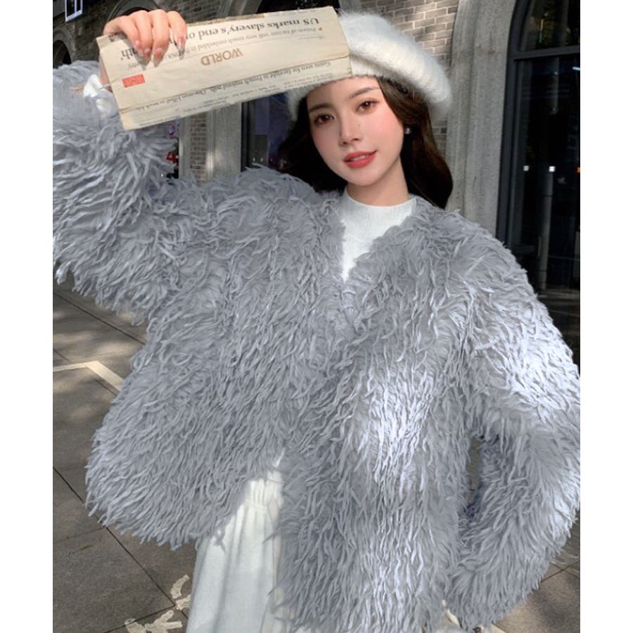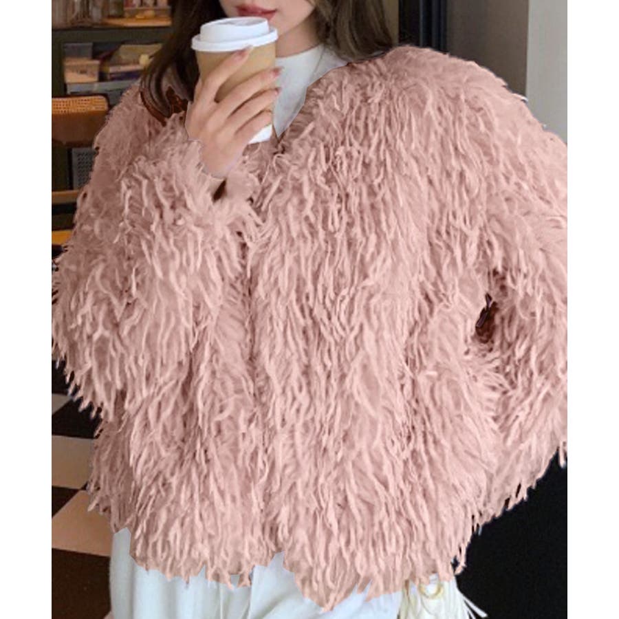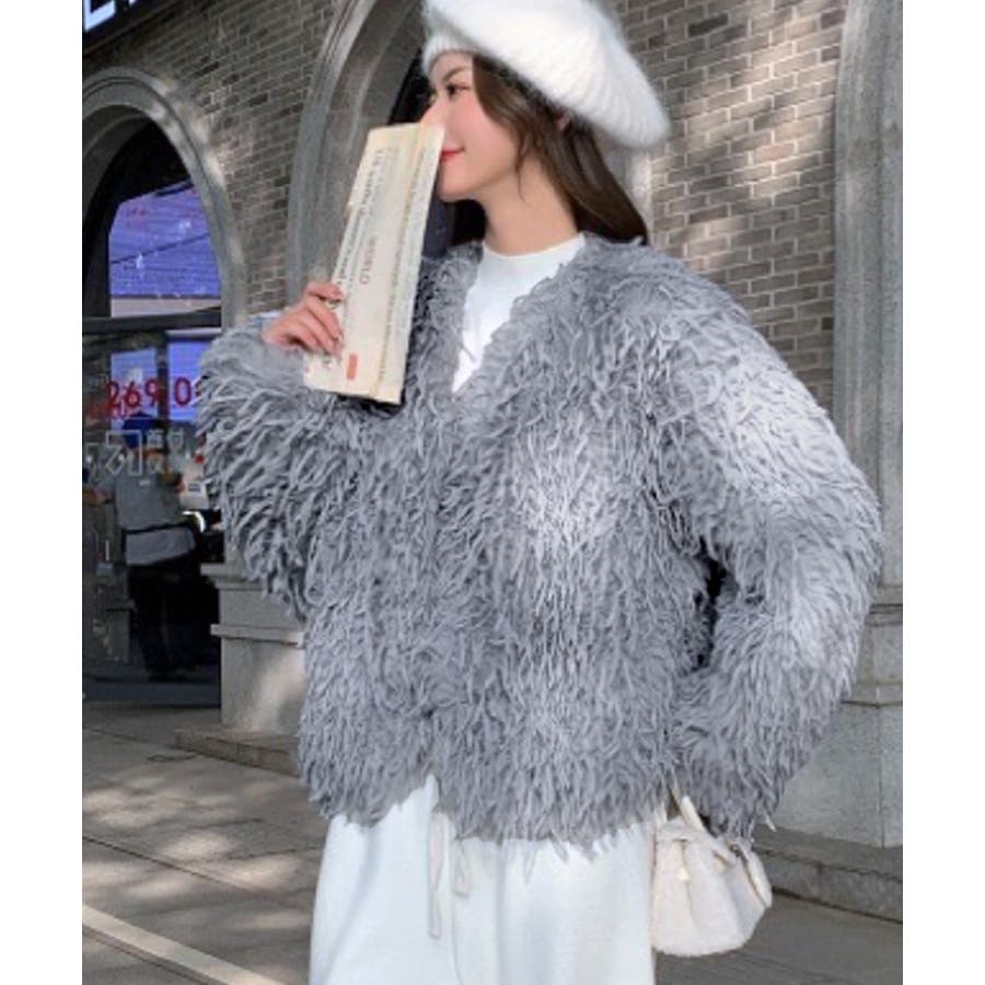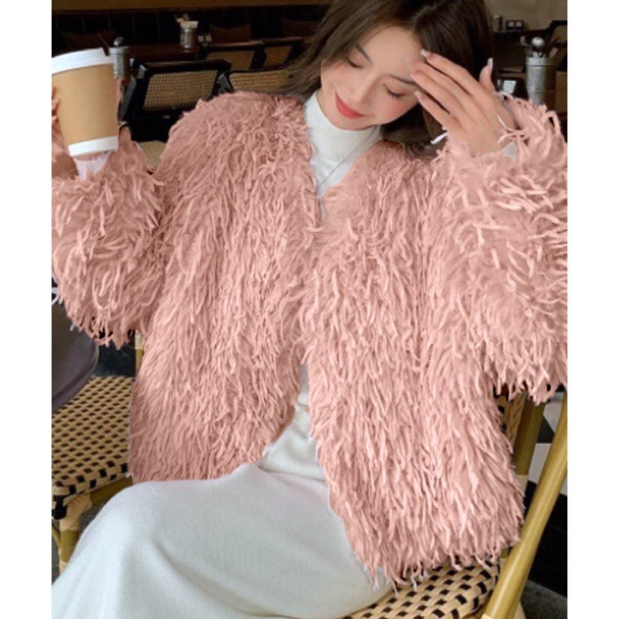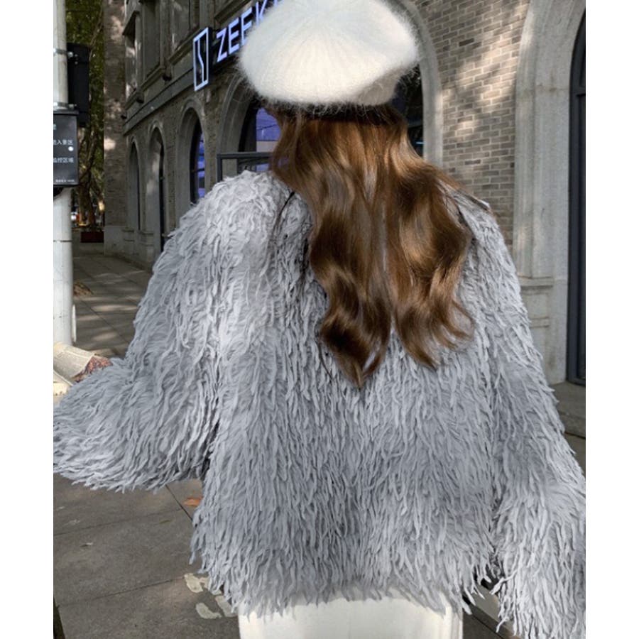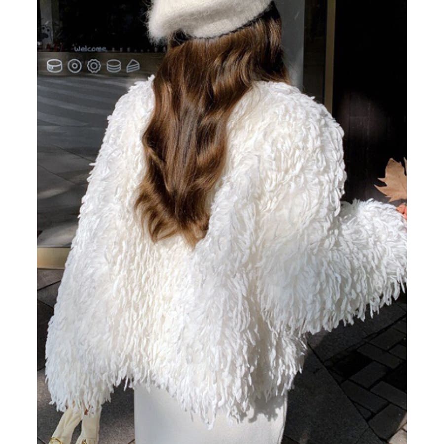 長い毛足のカーリーな動きのあるシャギーファーで存在感抜群♡