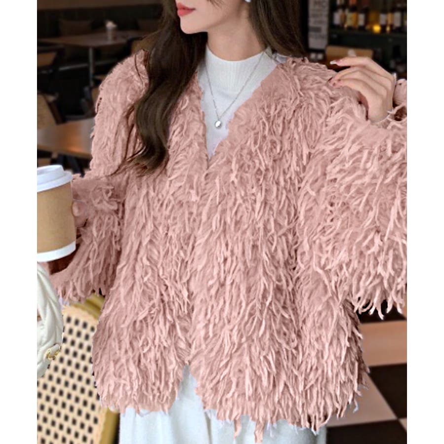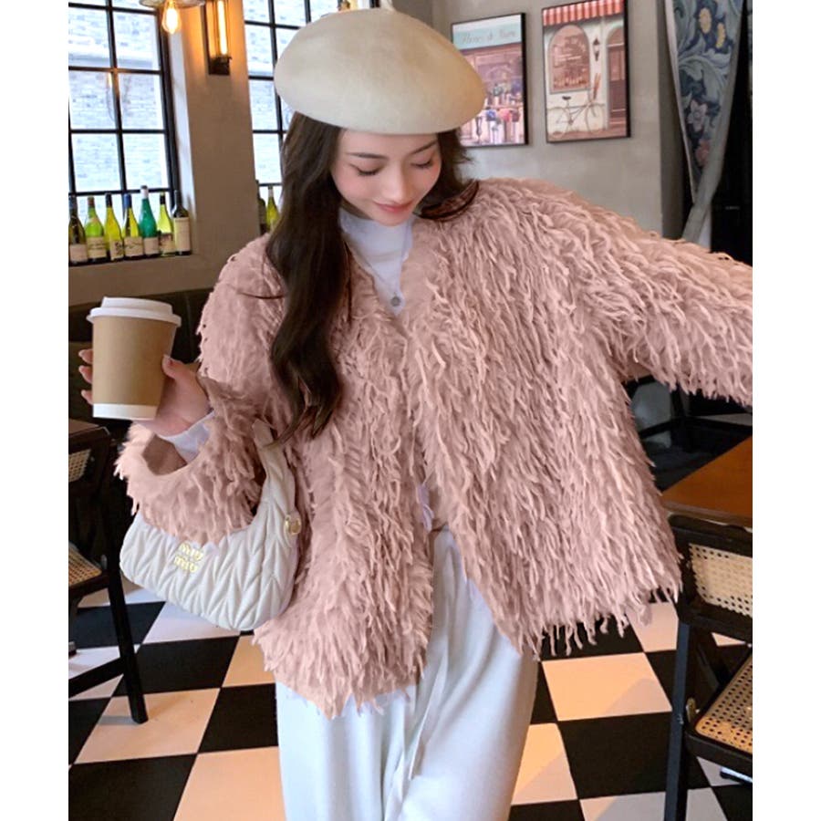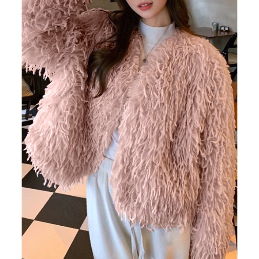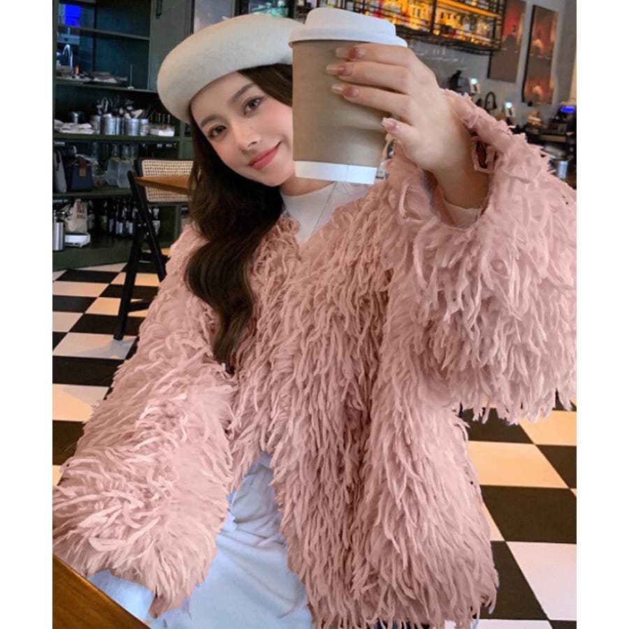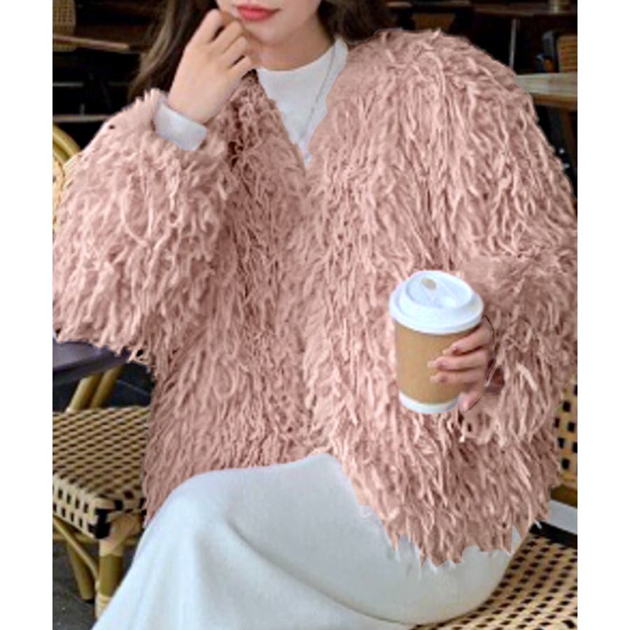 長い毛足のカーリーな動きのあるシャギーファーで存在感抜群♡