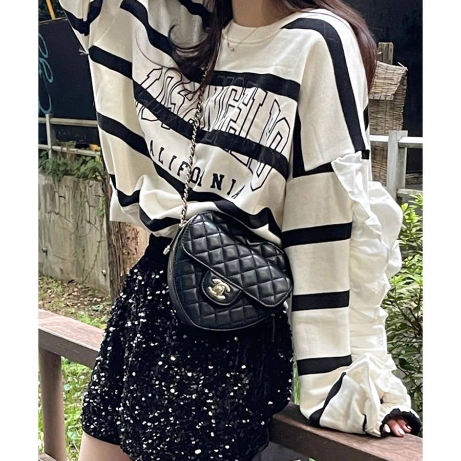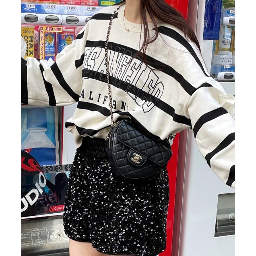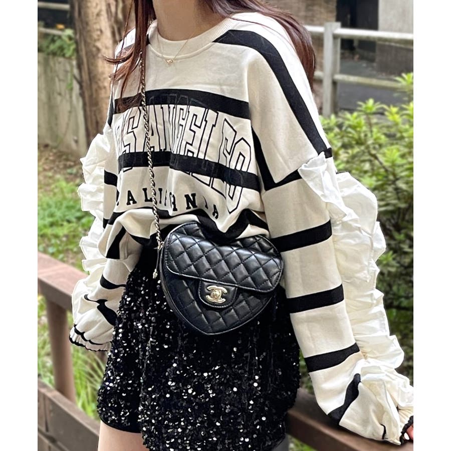・甘くなりすぎないように、スウェット×ロゴプリントを使用。