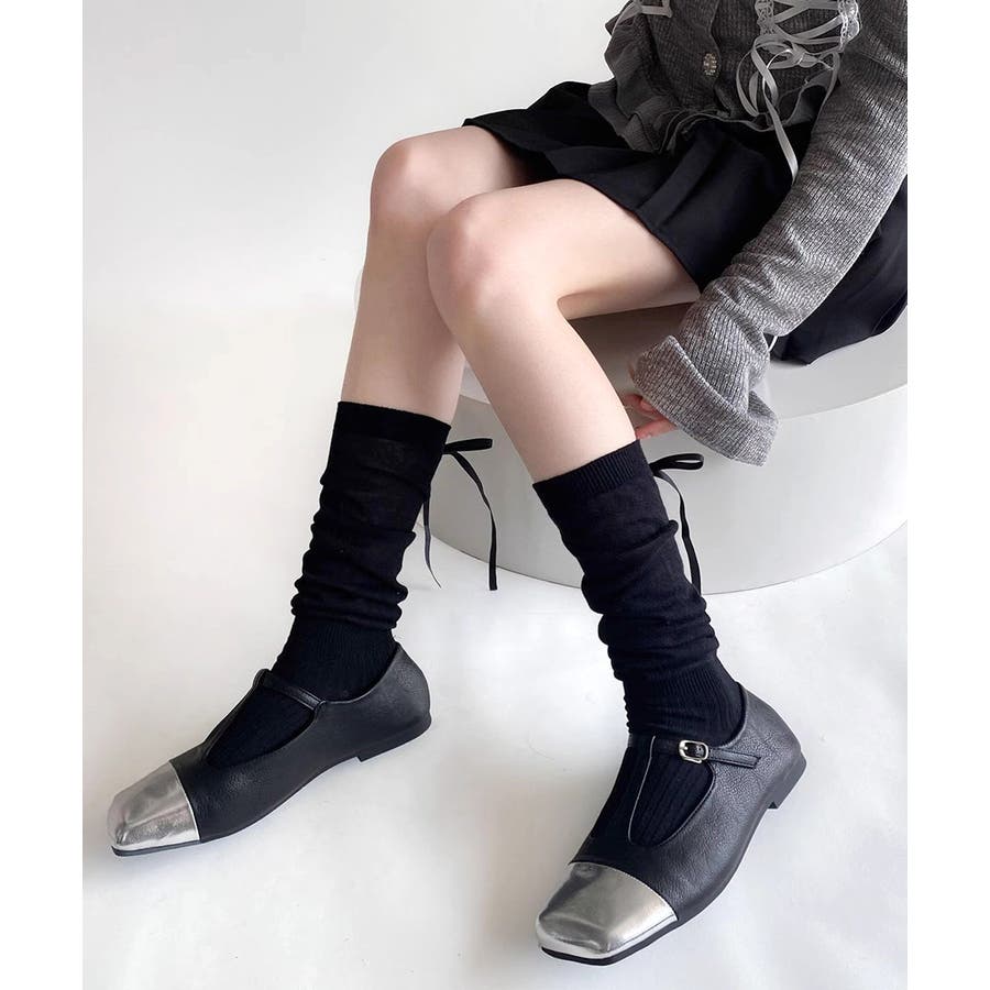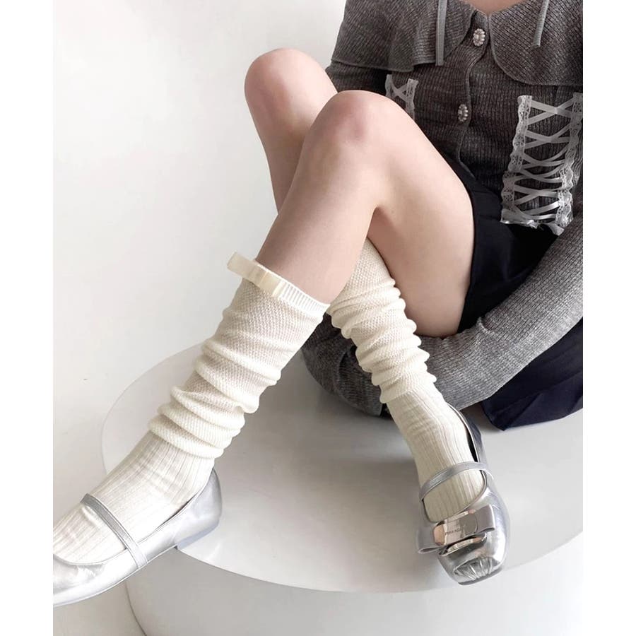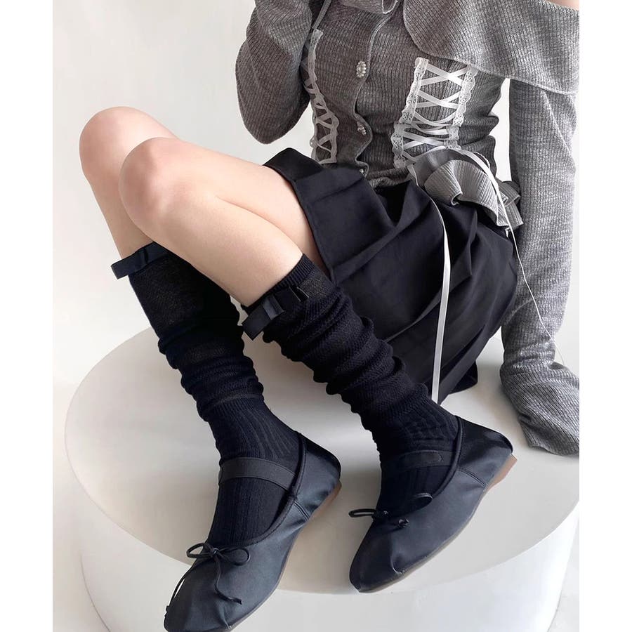 ・足元を華やかにしてくれるリボンソックスはミニボトムやミドルボトムと相性◎