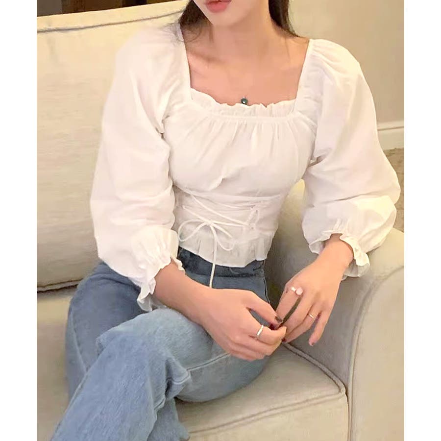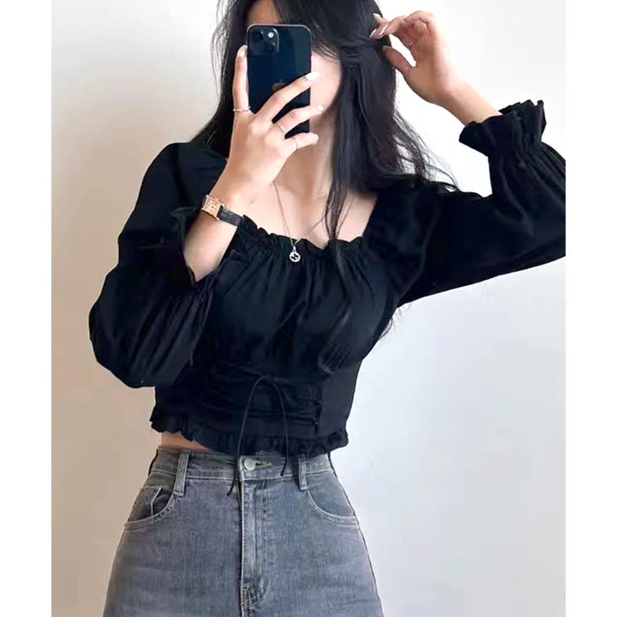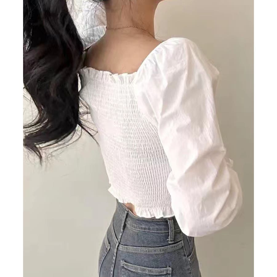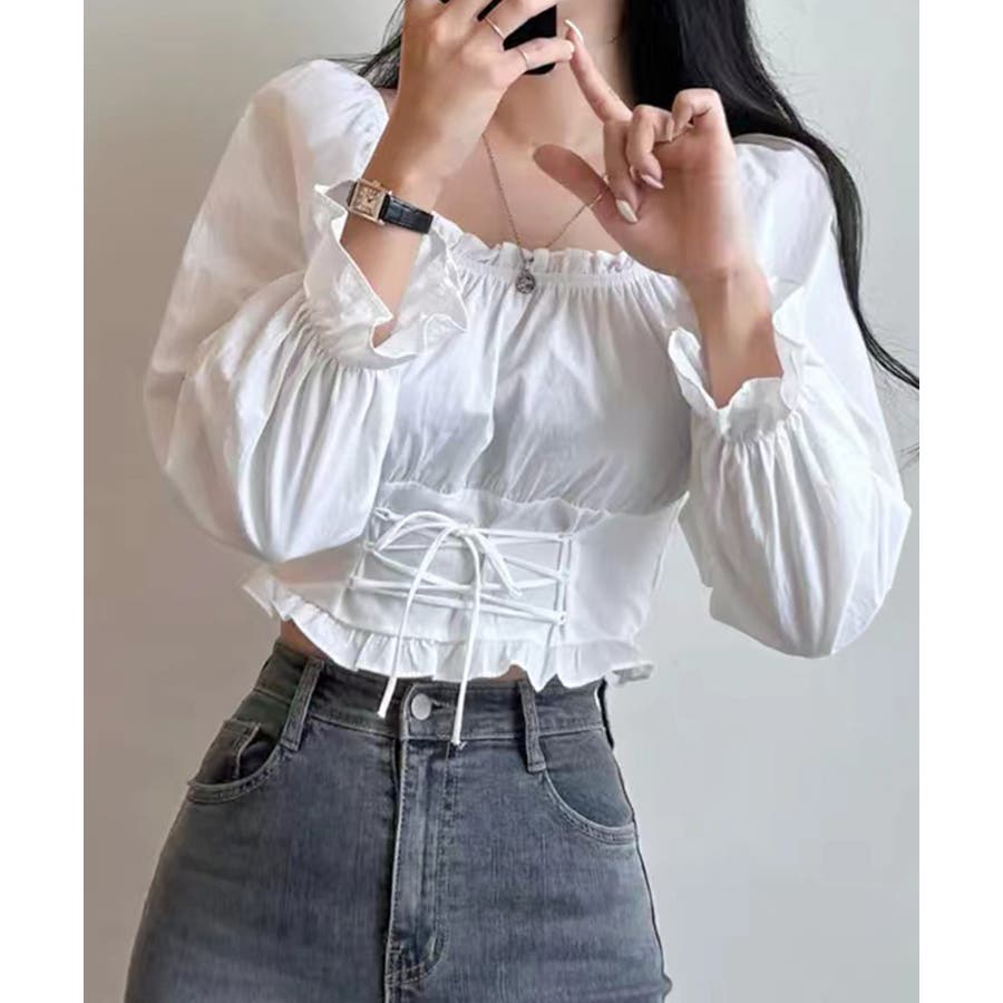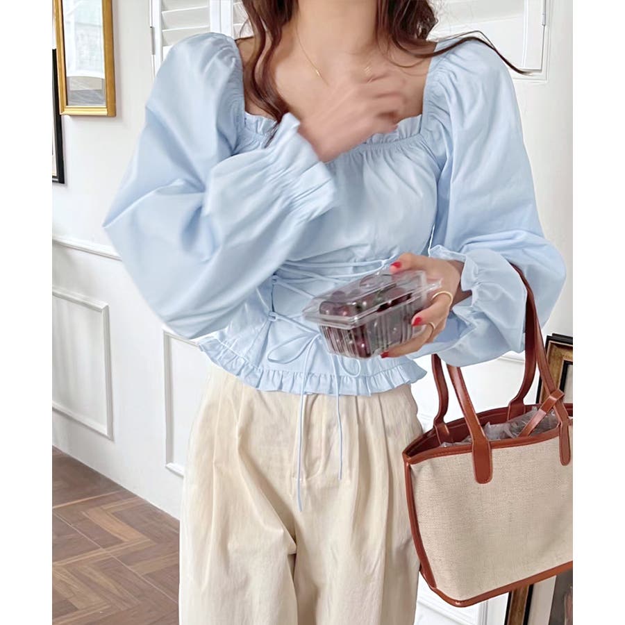 韓国っぽスタイルを叶えるショート丈ブラウス。