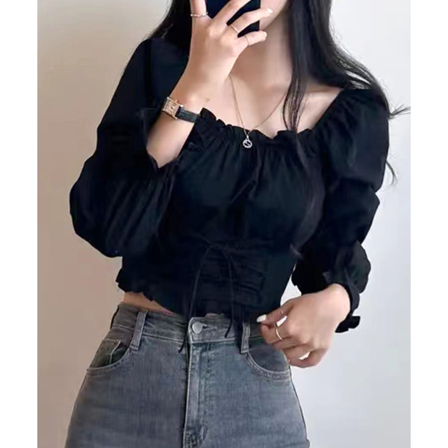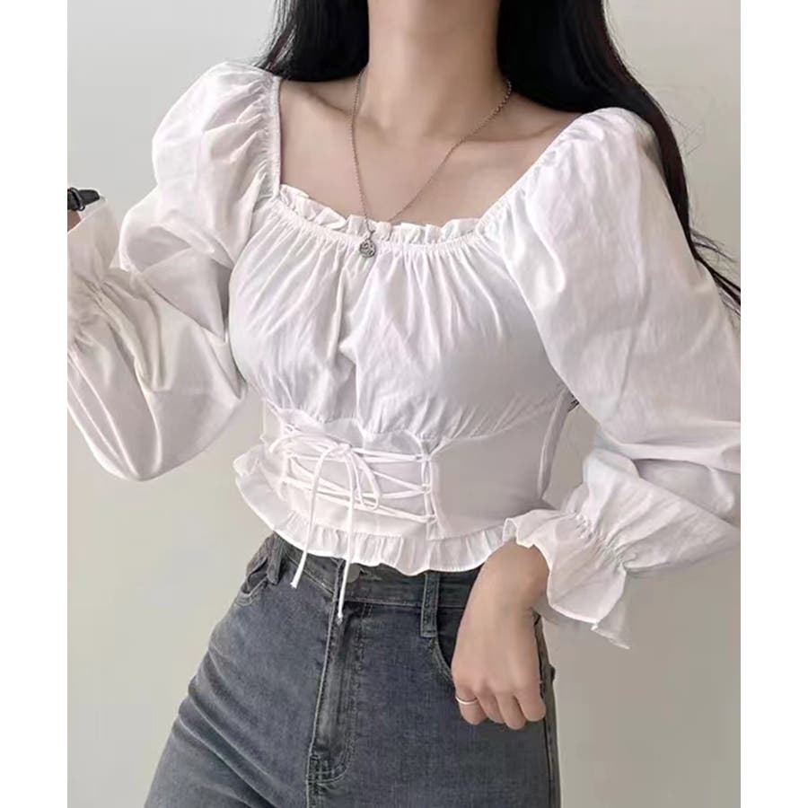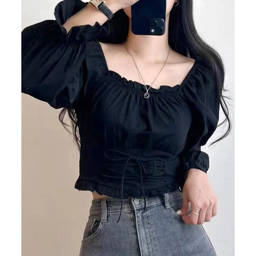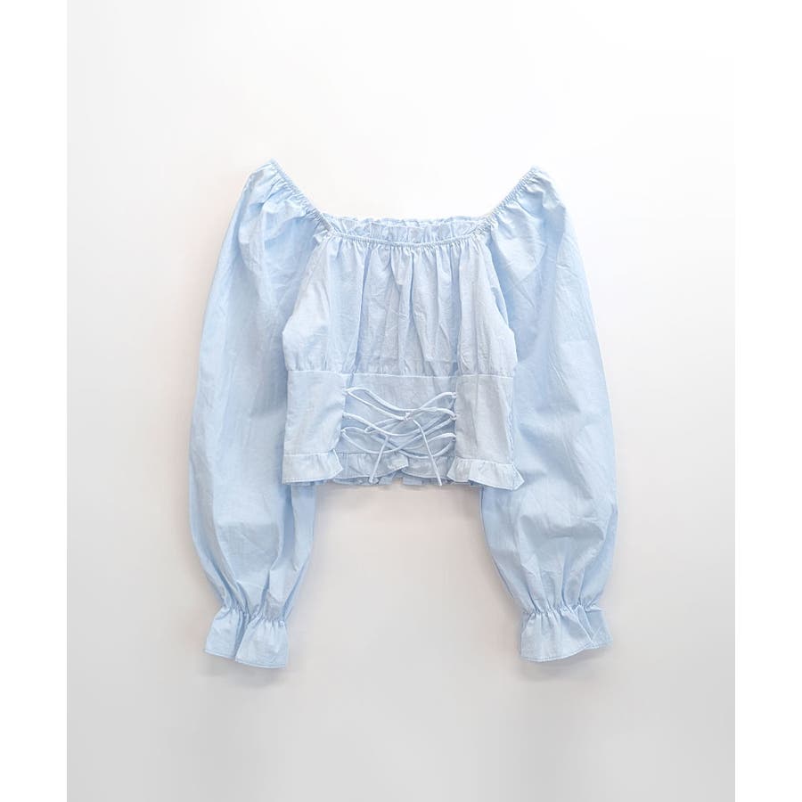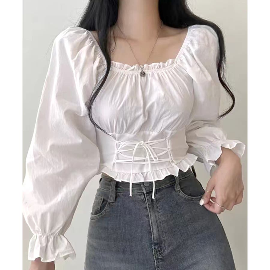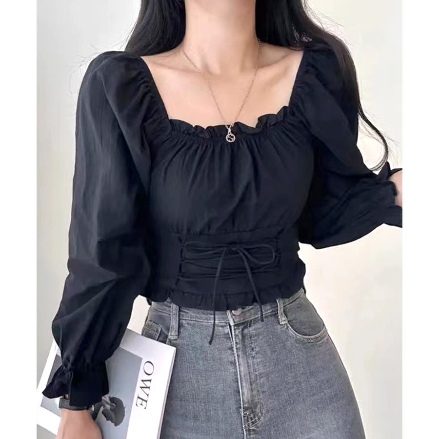 韓国っぽスタイルを叶えるショート丈ブラウス。
