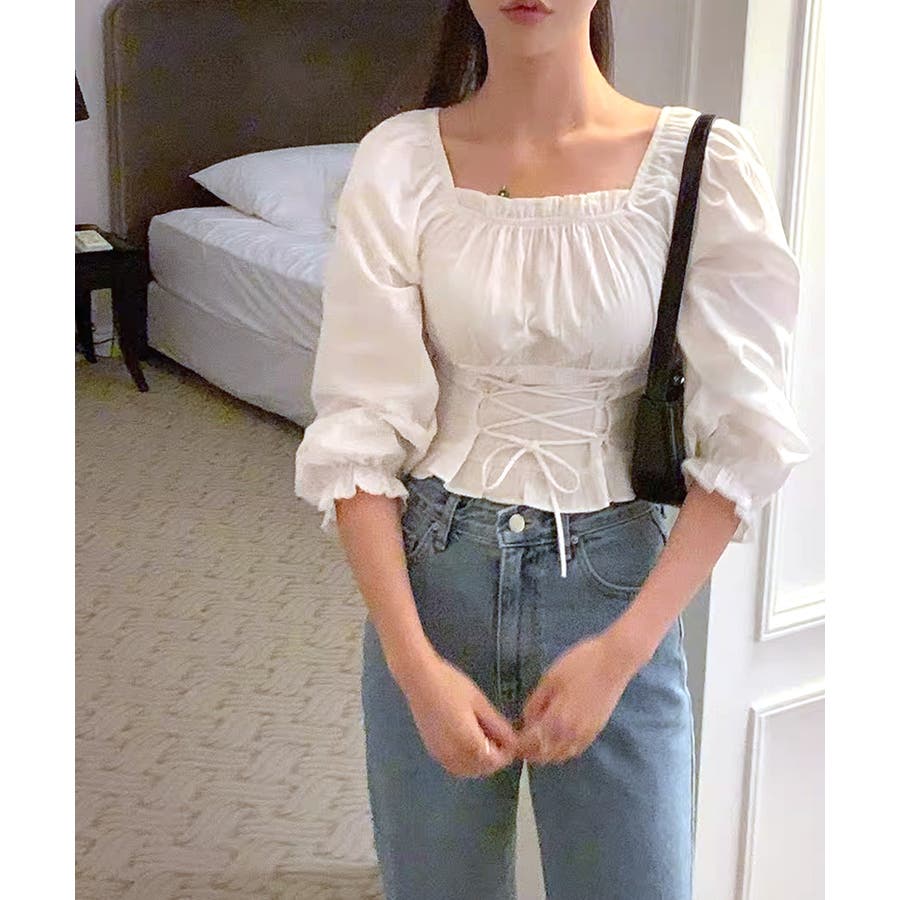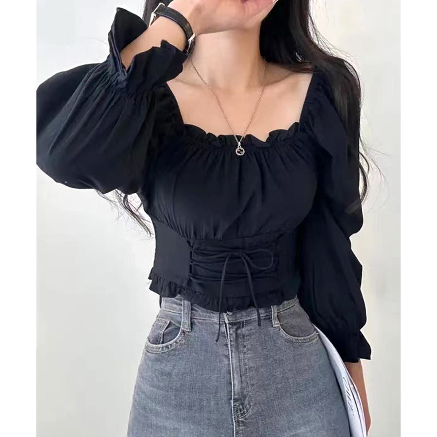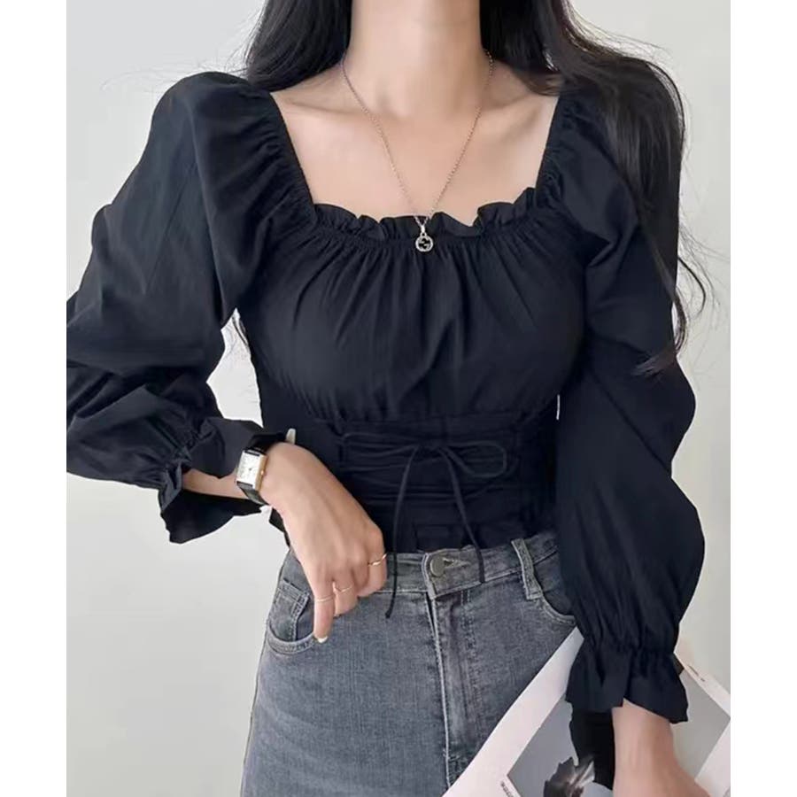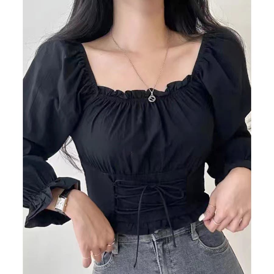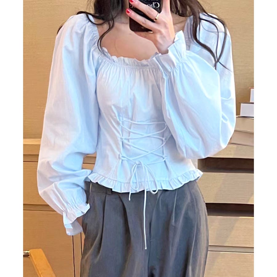 韓国っぽスタイルを叶えるショート丈ブラウス。