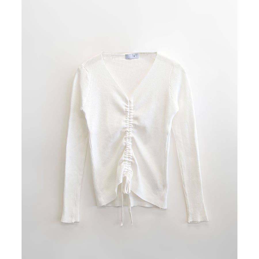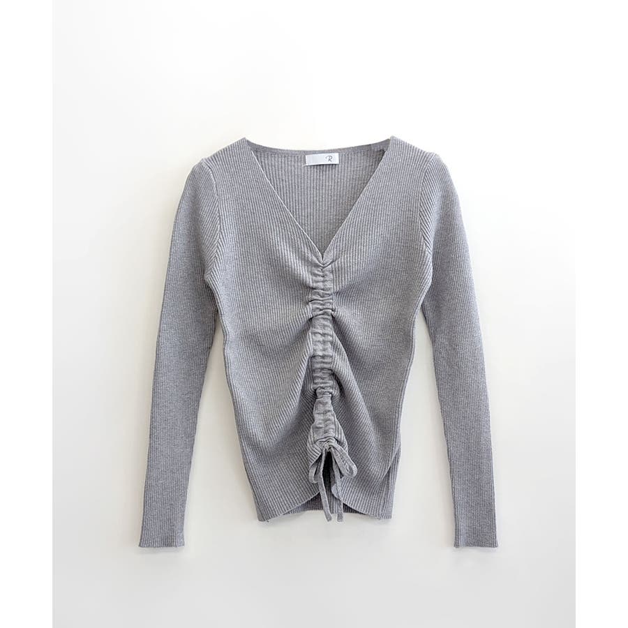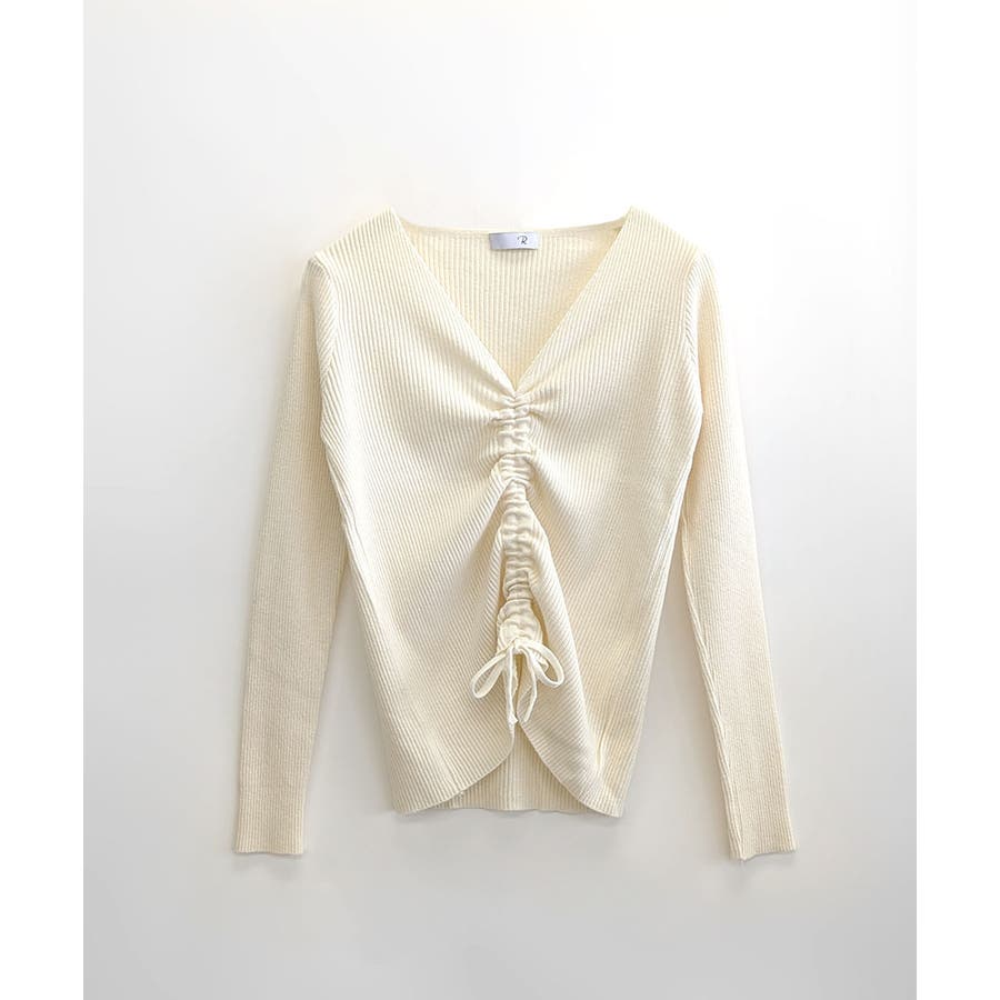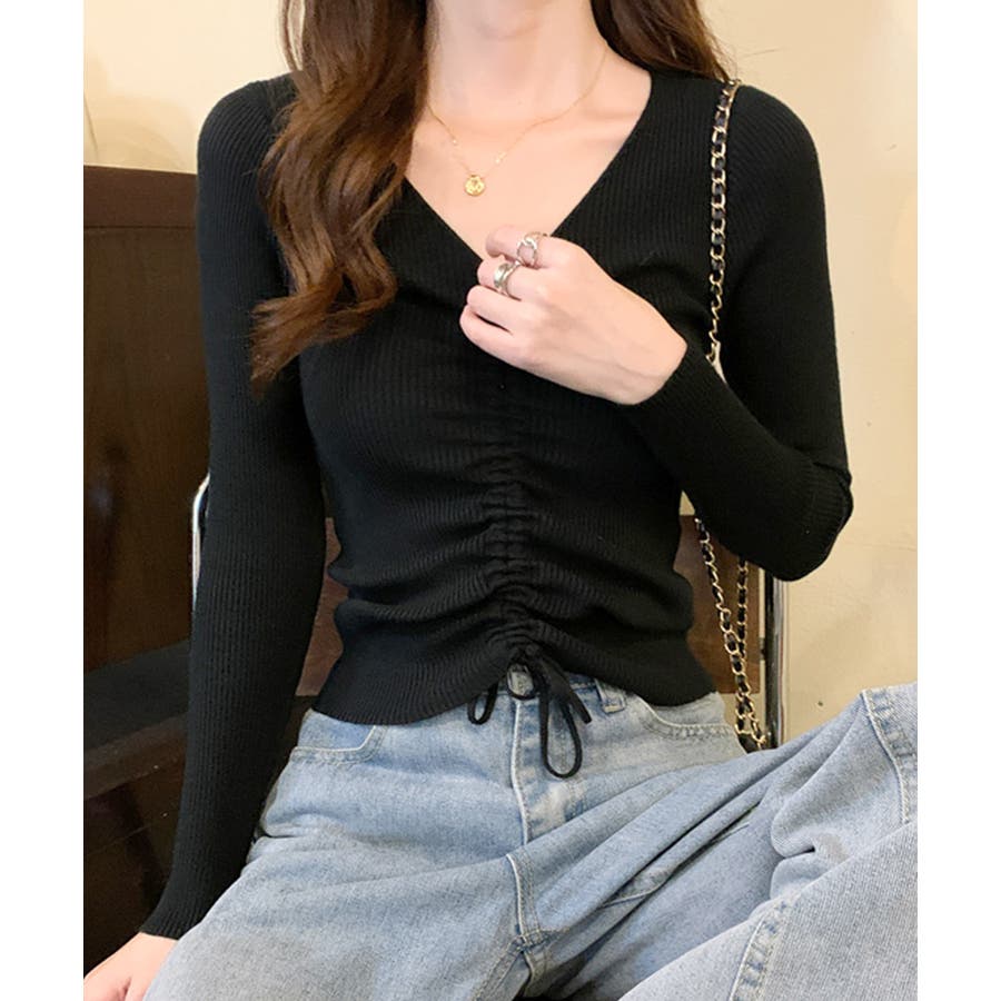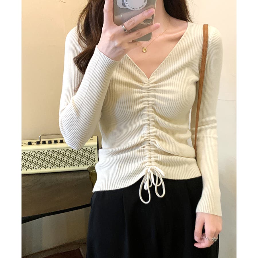 ・すっきりと開いたVネックでデコルテを綺麗に演出。