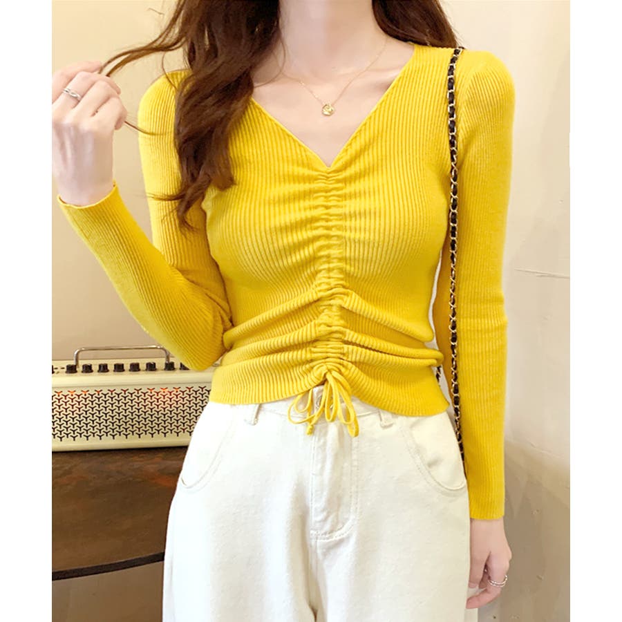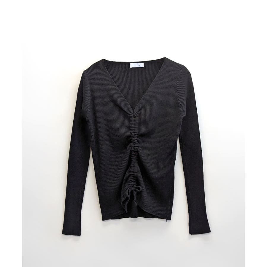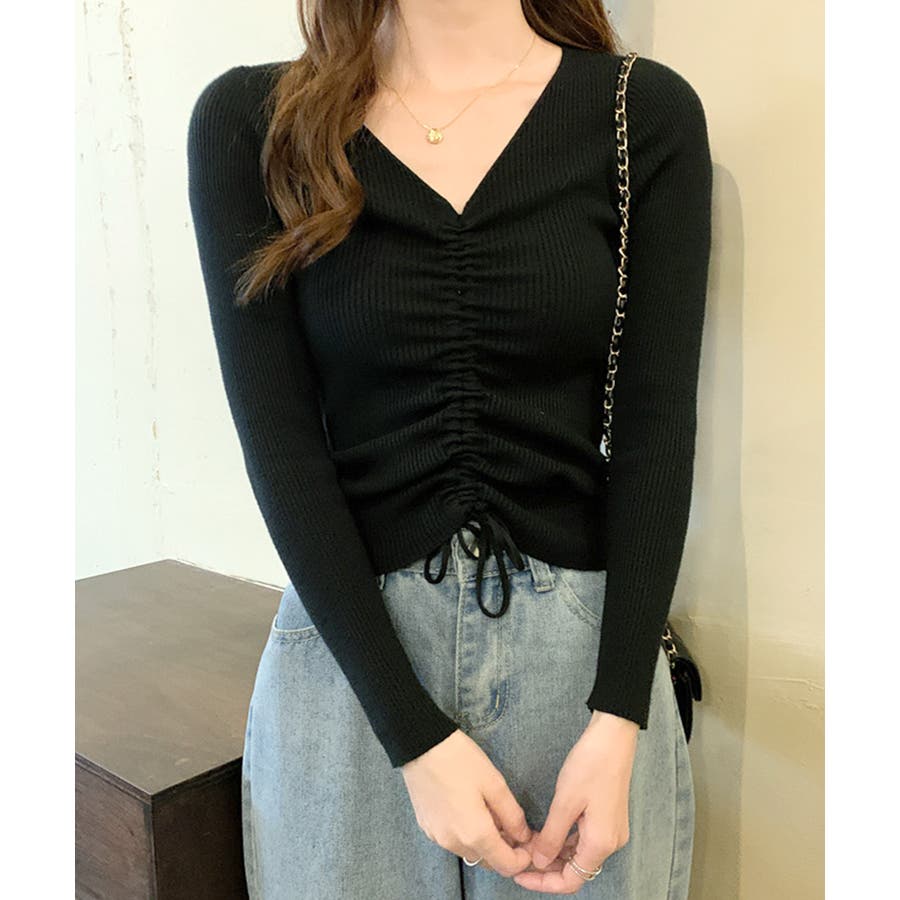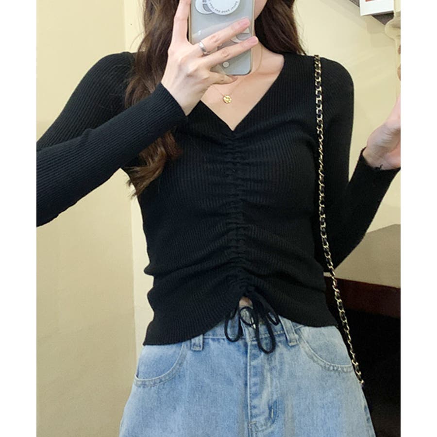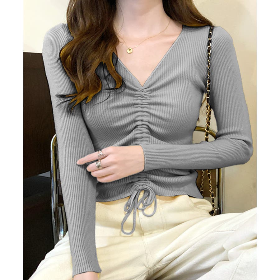 ・すっきりと開いたVネックでデコルテを綺麗に演出。