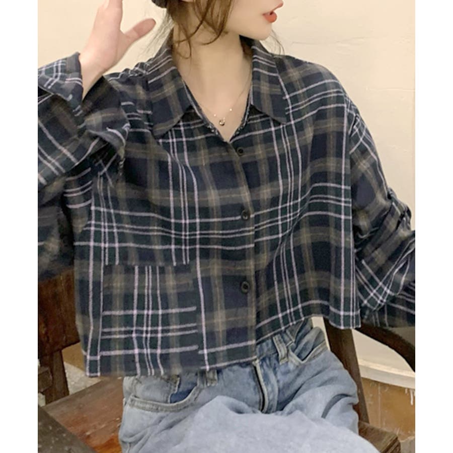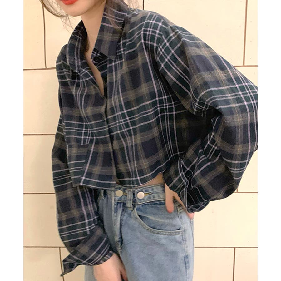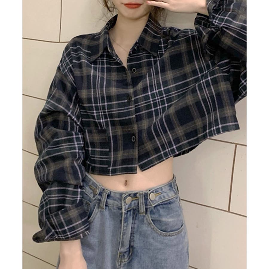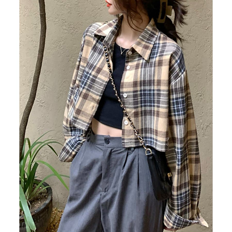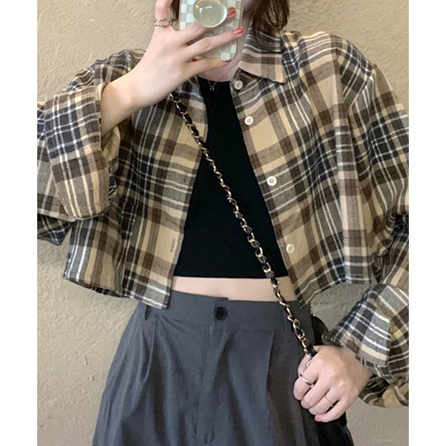 チェック柄ショート丈シャツ クロップド丈 ゆるシャツ