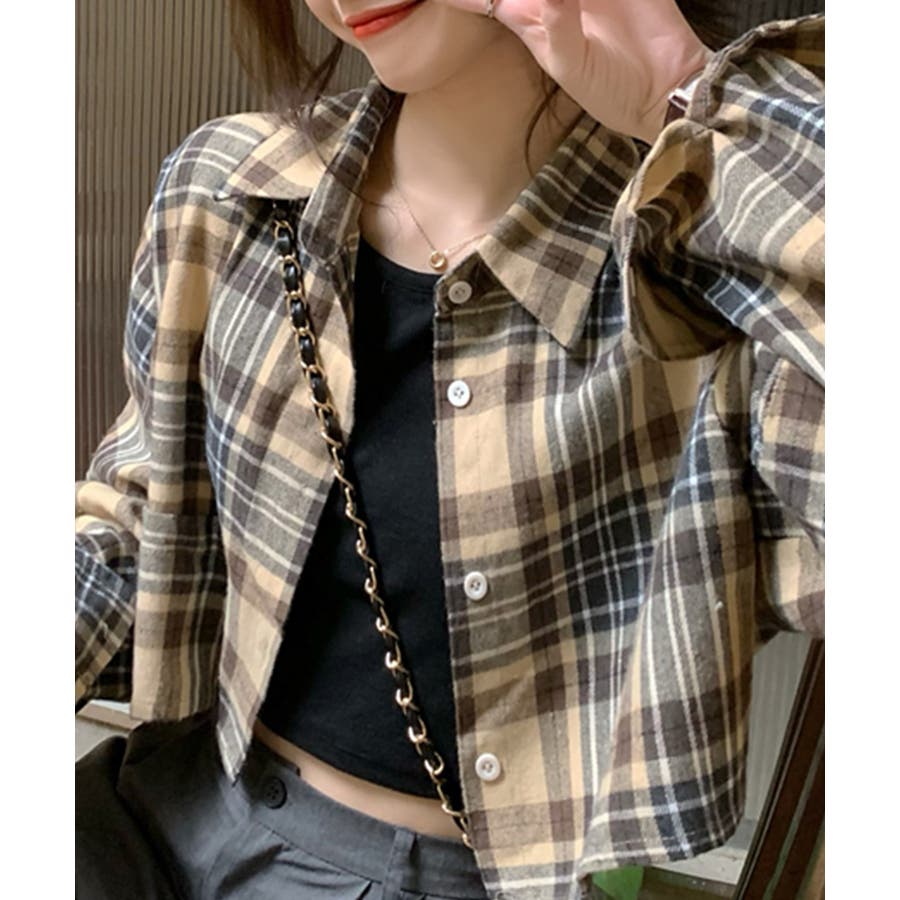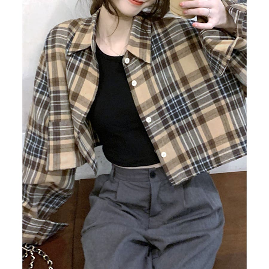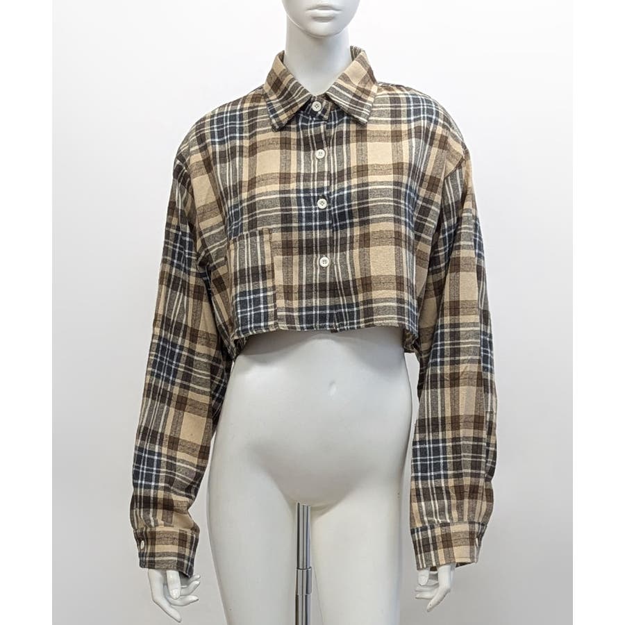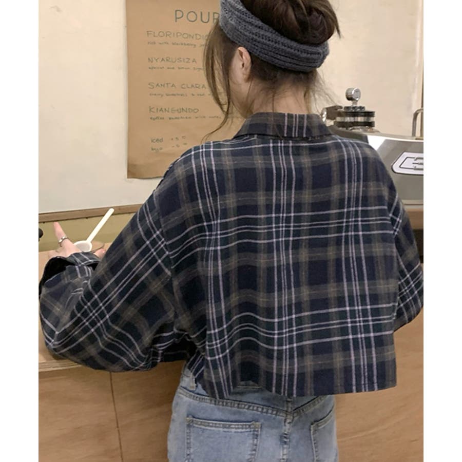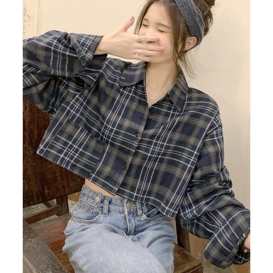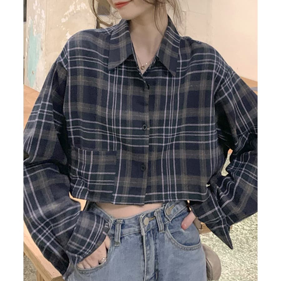 チェック柄ショート丈シャツ クロップド丈 ゆるシャツ