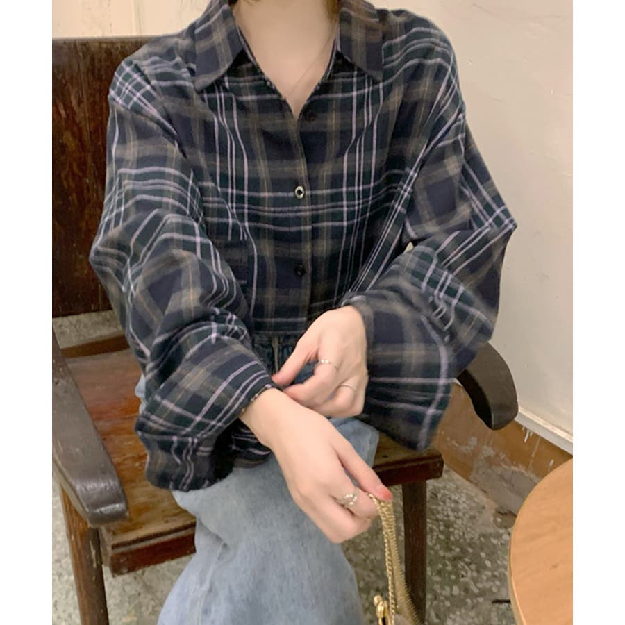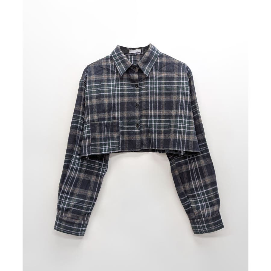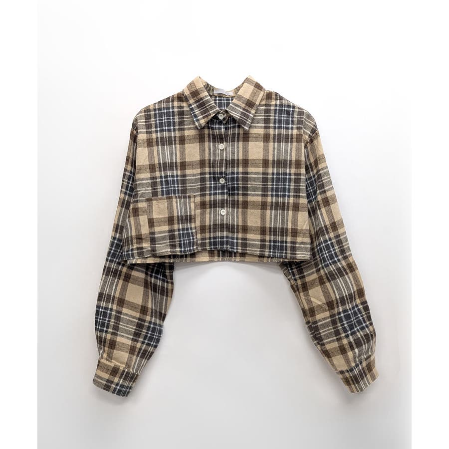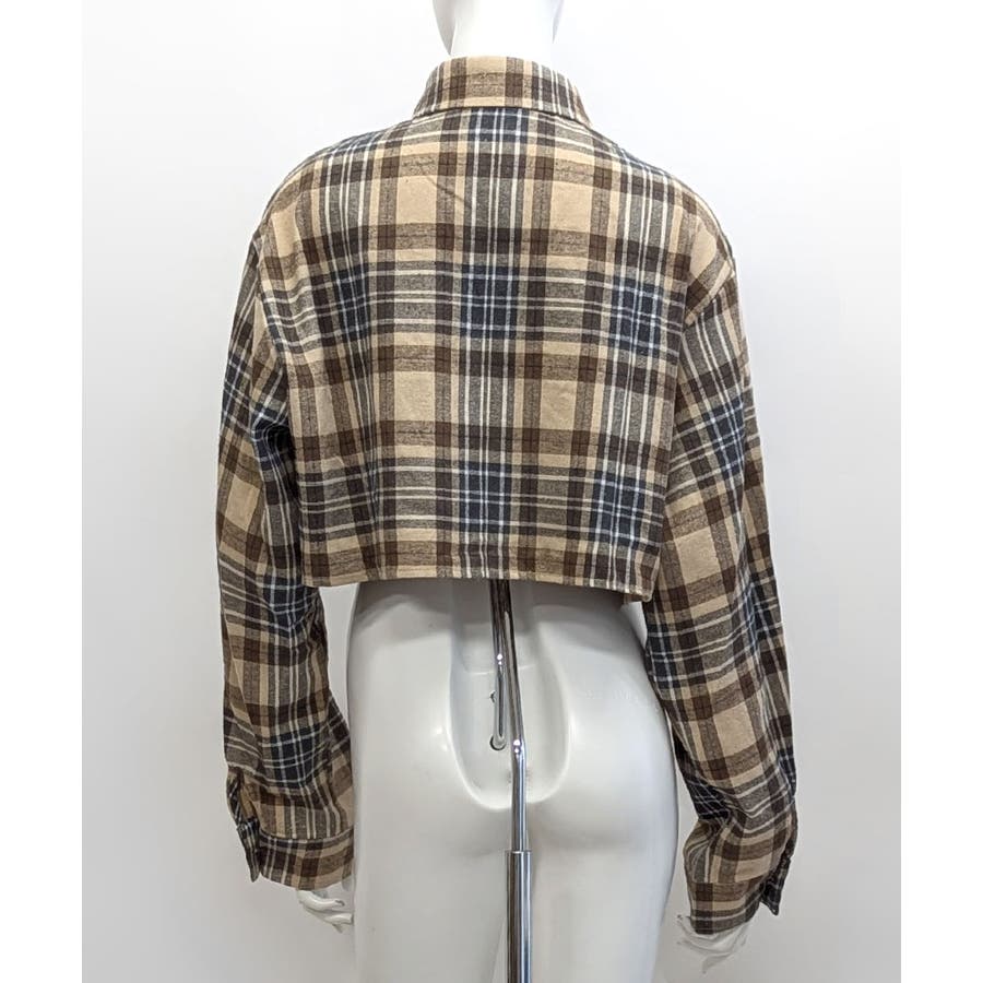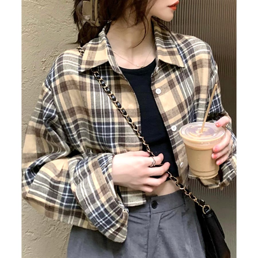 チェック柄ショート丈シャツ クロップド丈 ゆるシャツ