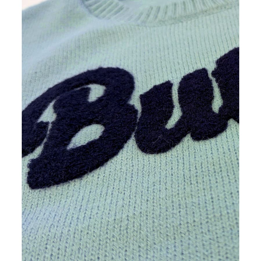 ・ボア素材のロゴがふっくら可愛らしい印象に。