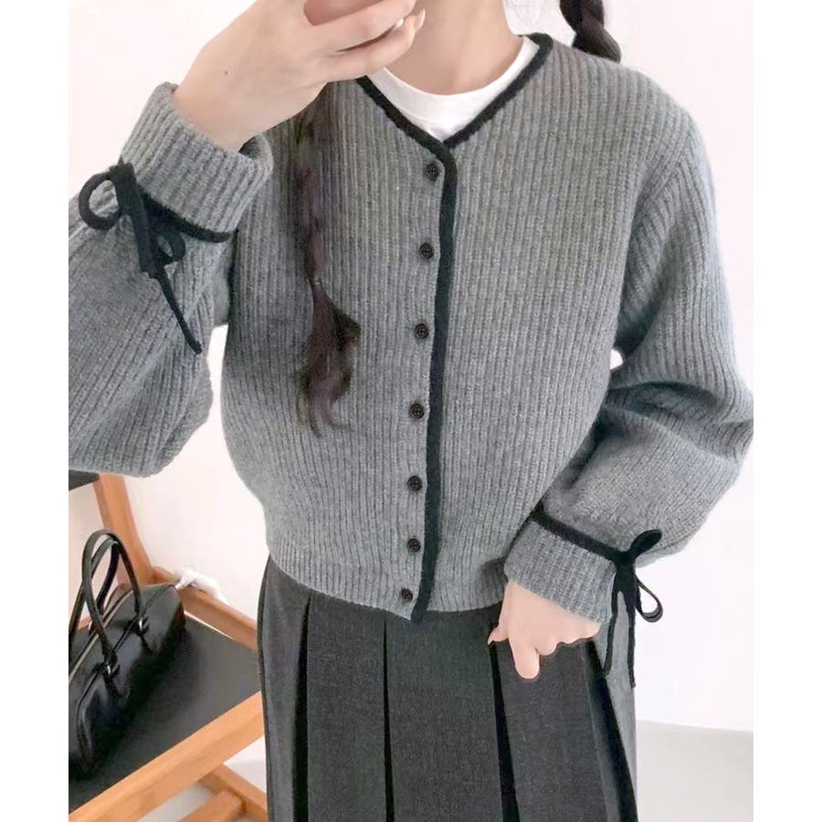 ・袖にリボンディテールを施し、ラブリーな雰囲気に。
