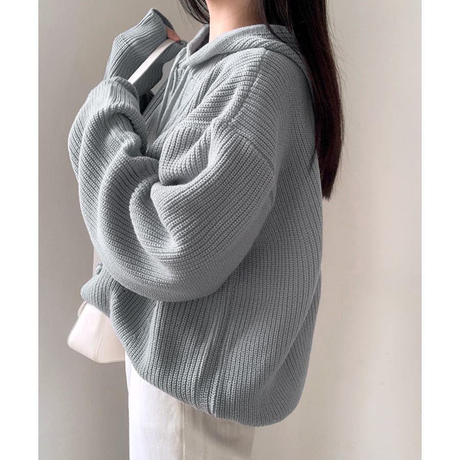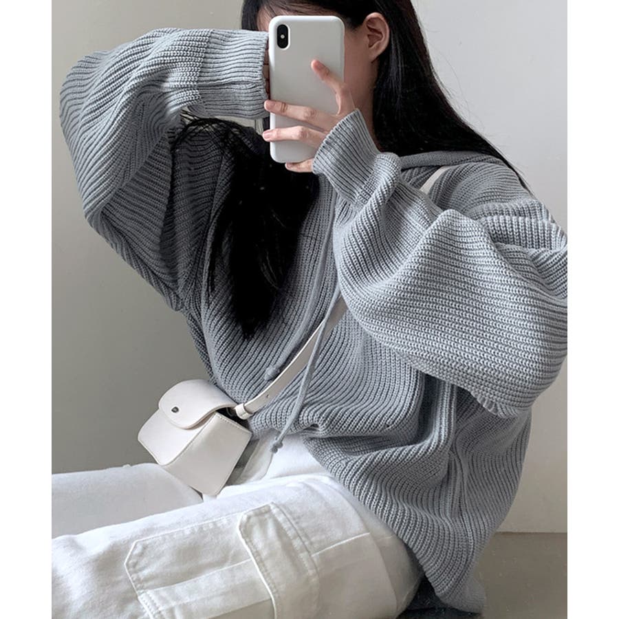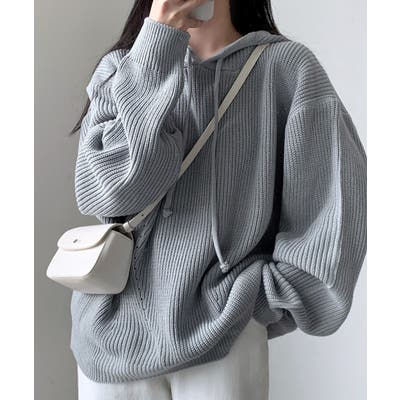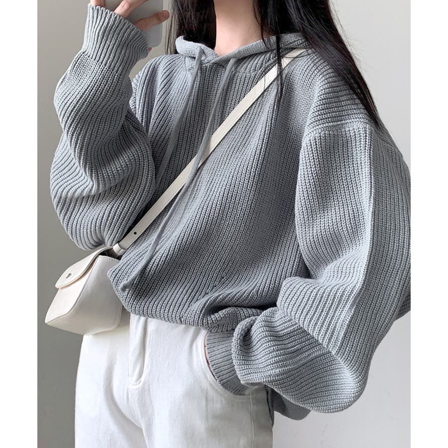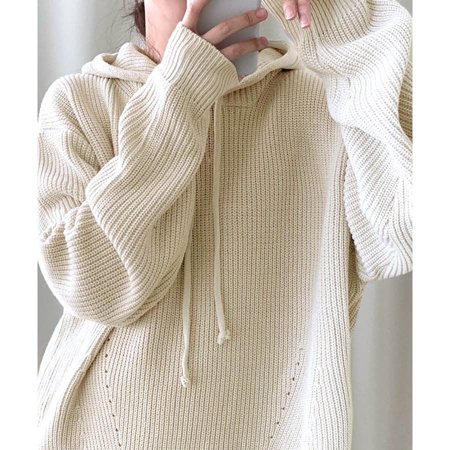 ・ニットのやわらかな雰囲気でカジュアル過ぎない1枚。