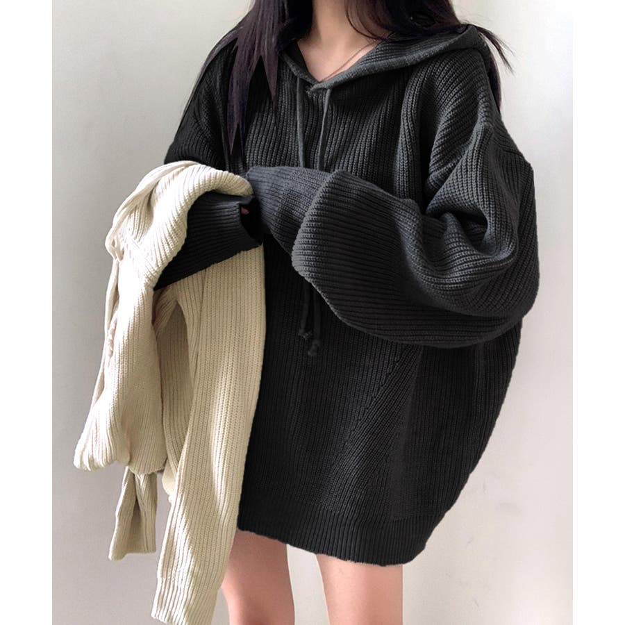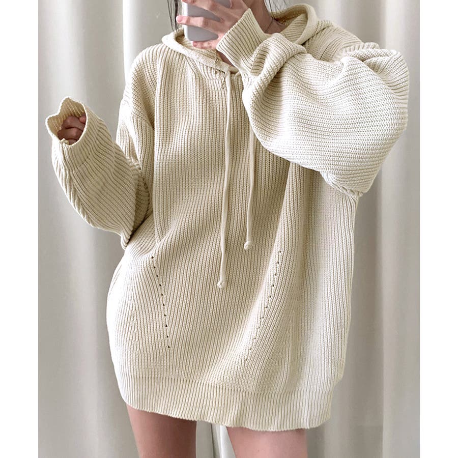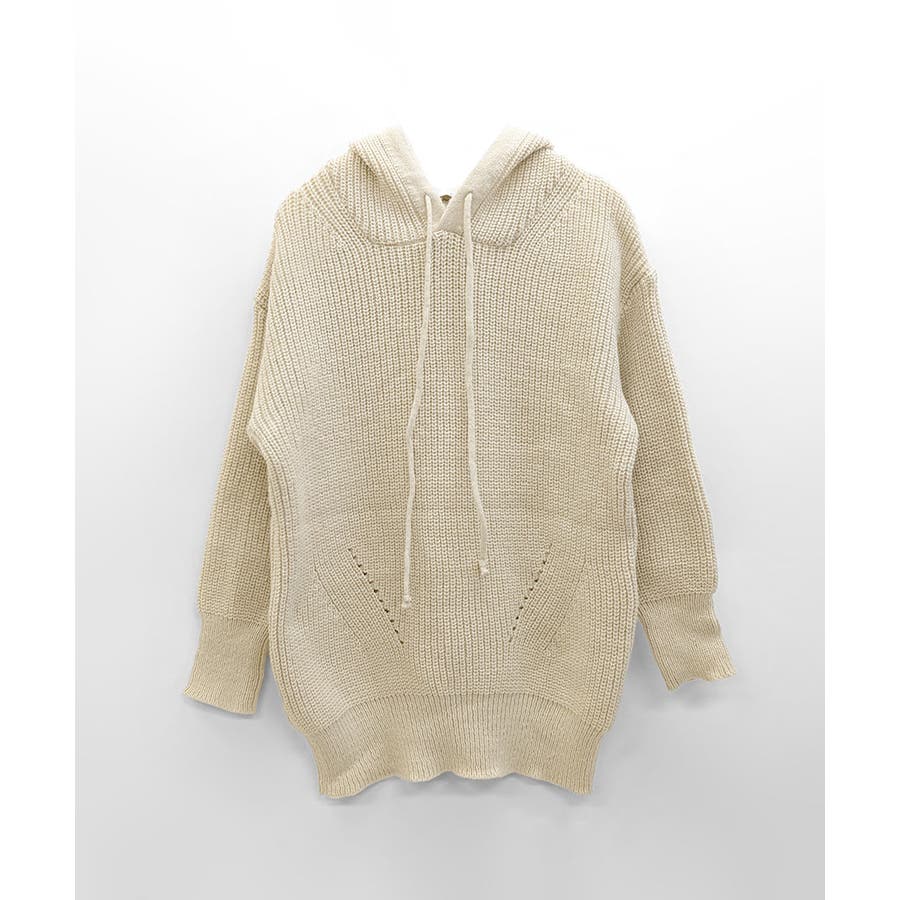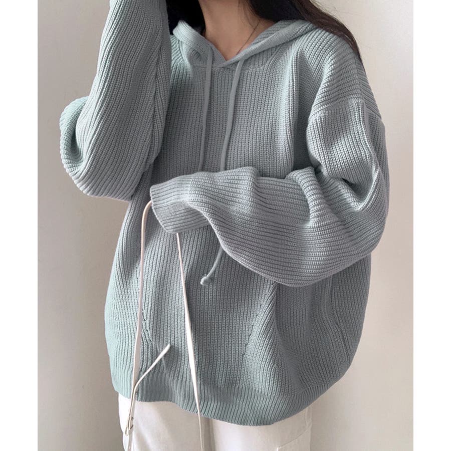 ・ニットのやわらかな雰囲気でカジュアル過ぎない1枚。