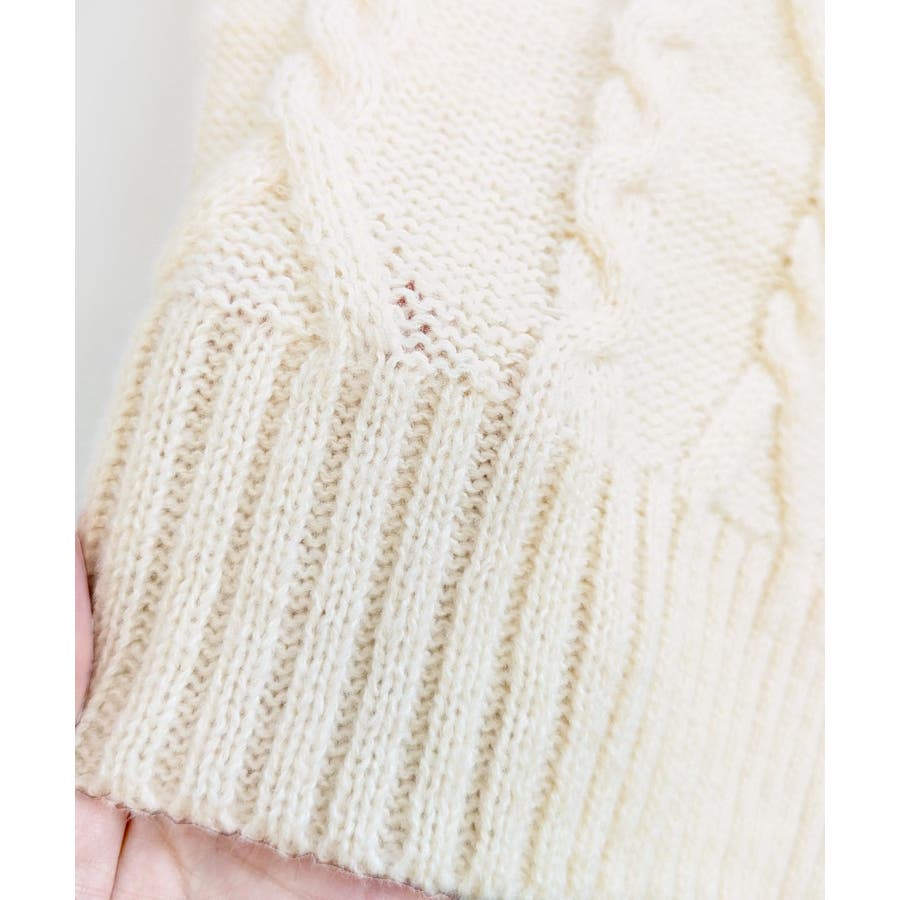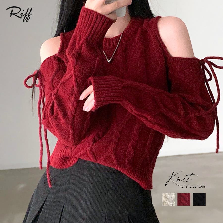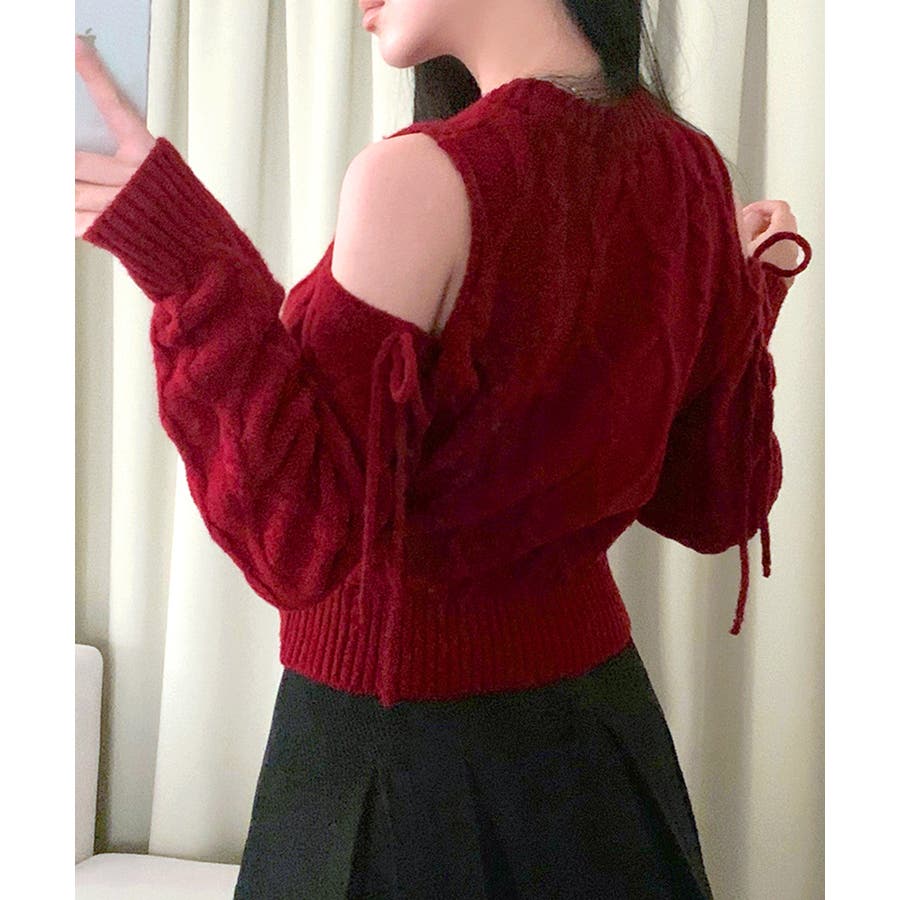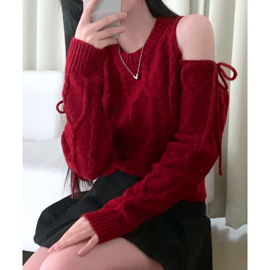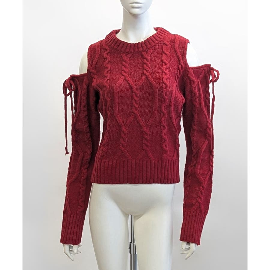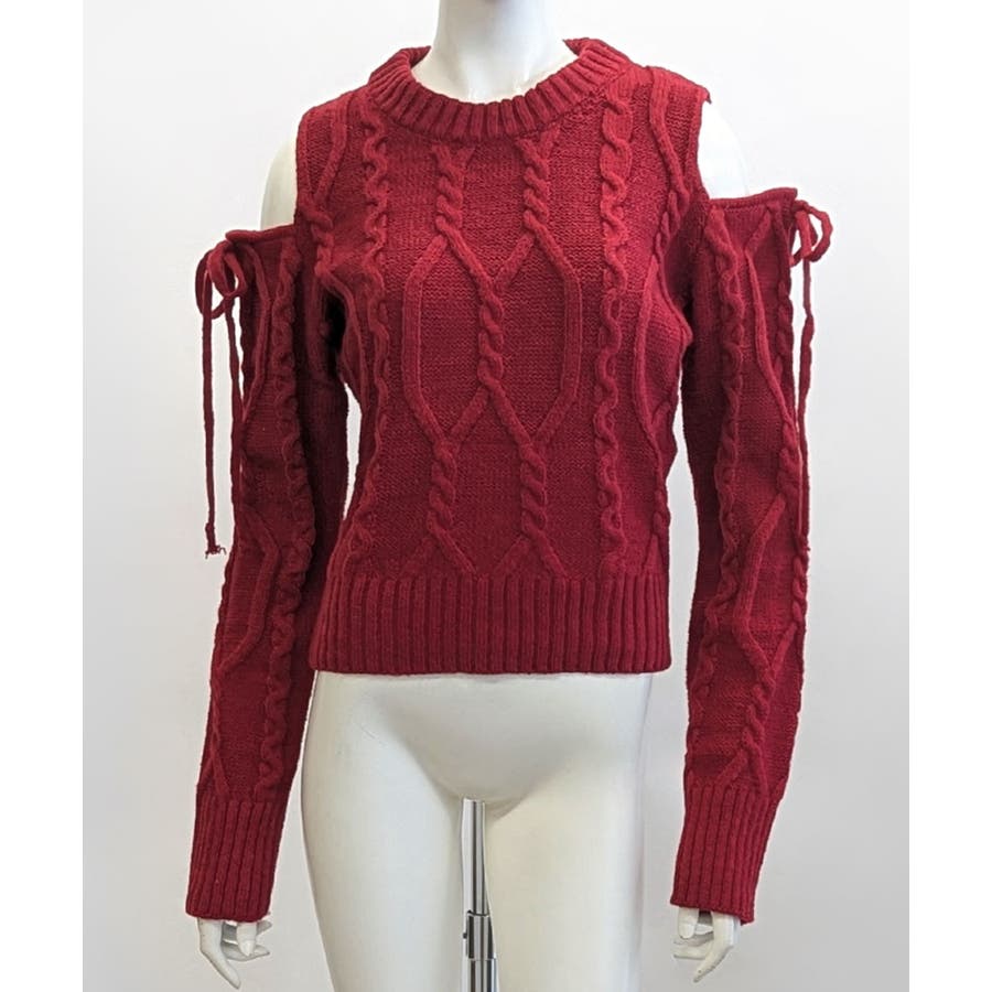 オープンショルダーリボンケーブルニット