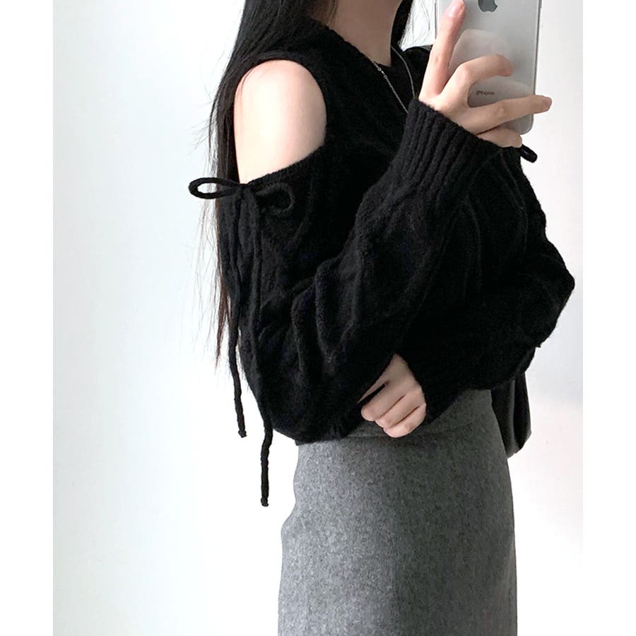 オープンショルダー×リボンのモテニット♡