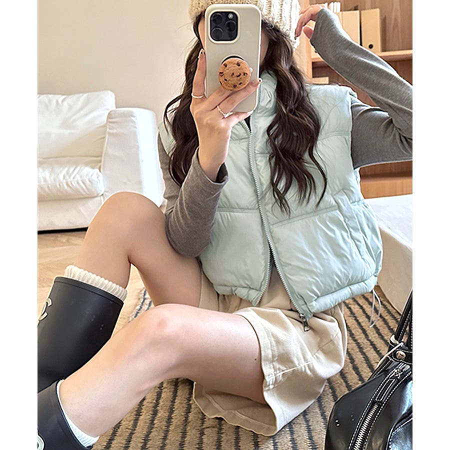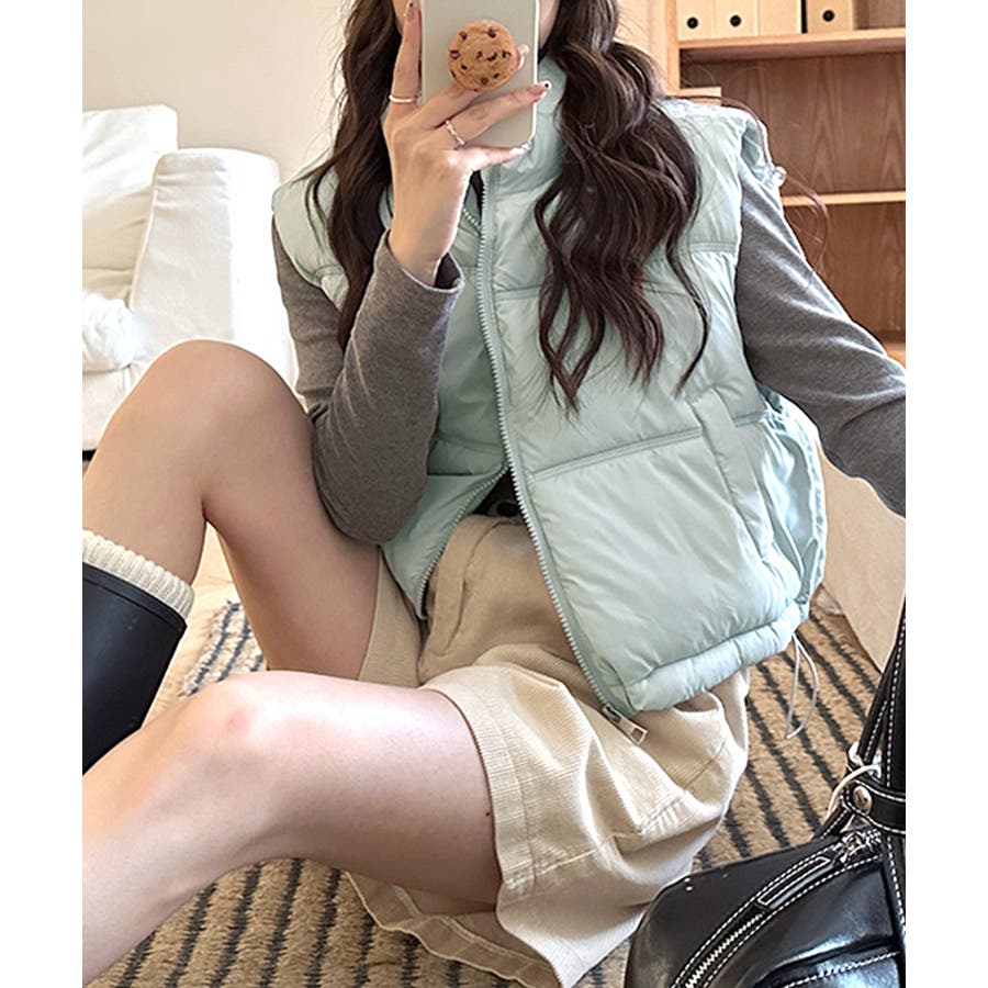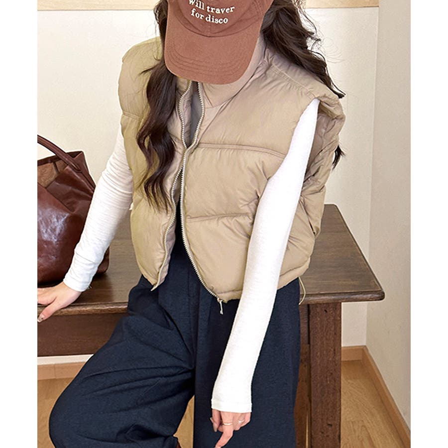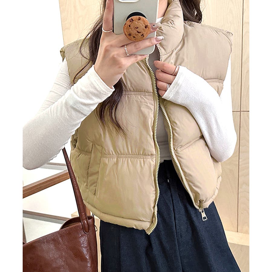 ・カジュアル、ガーリー、大人スタイルと相性のいいダウンベスト。