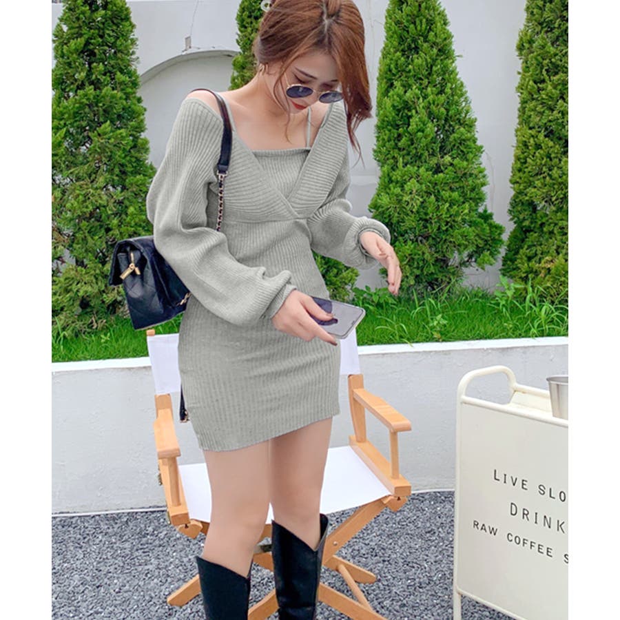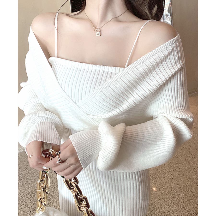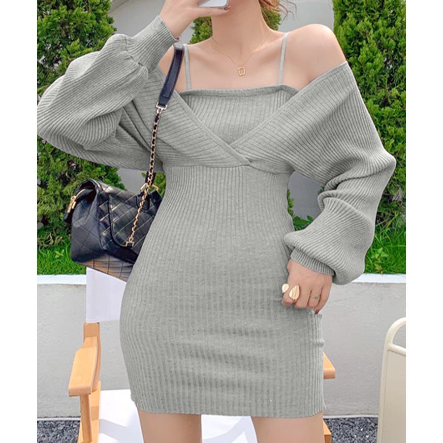 ・キャミとニットをレイヤードしたかのようなデザイン。