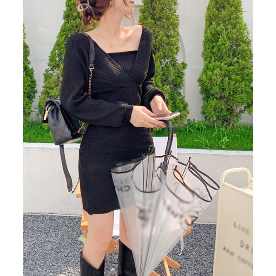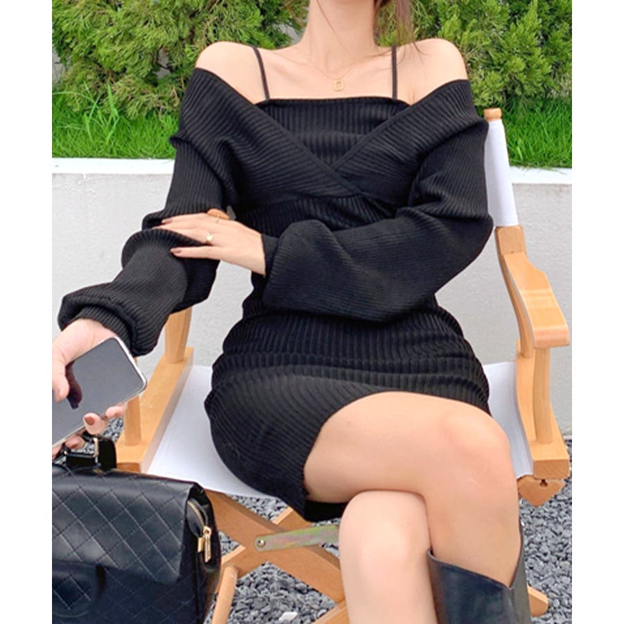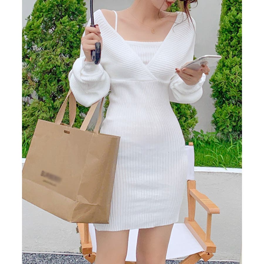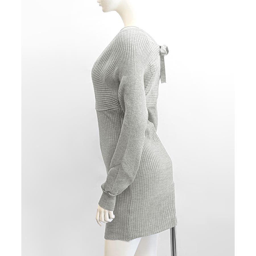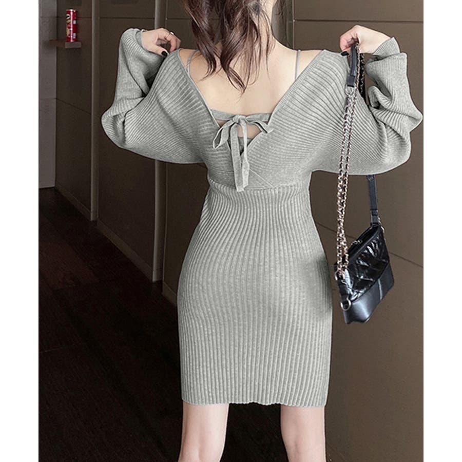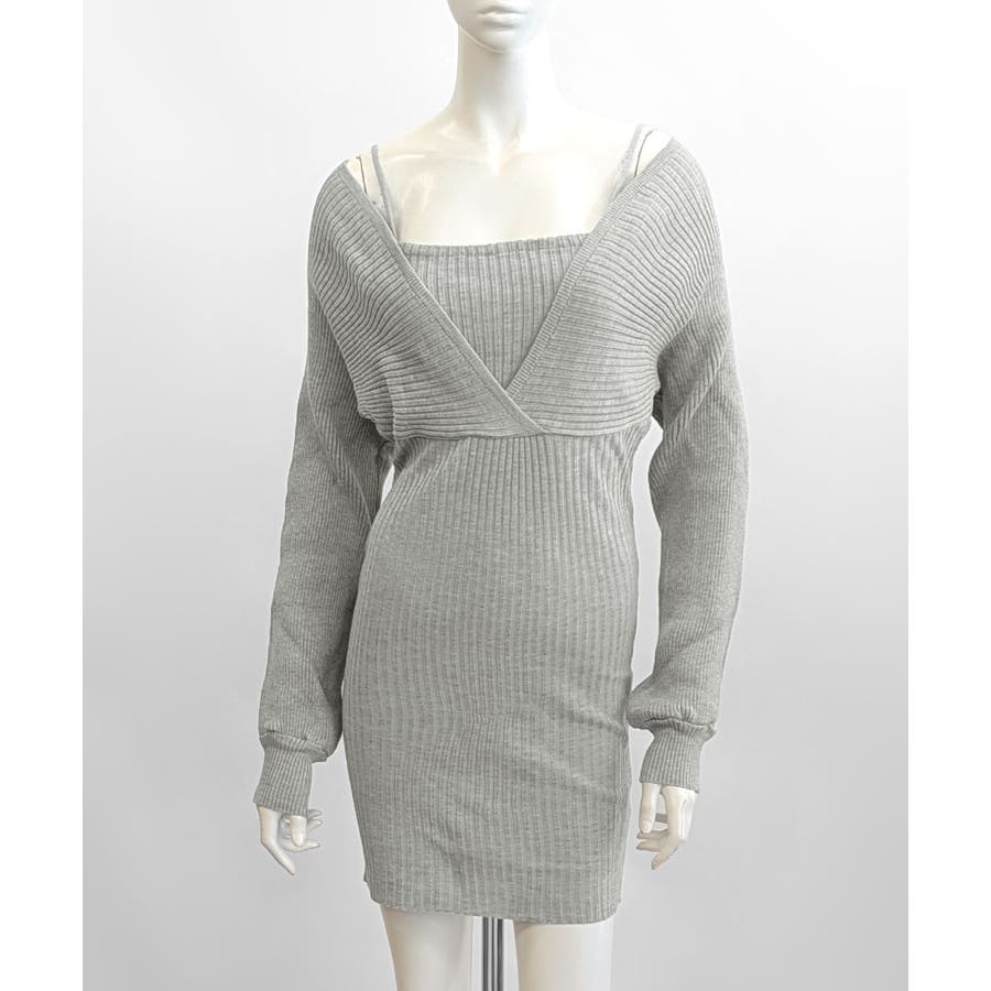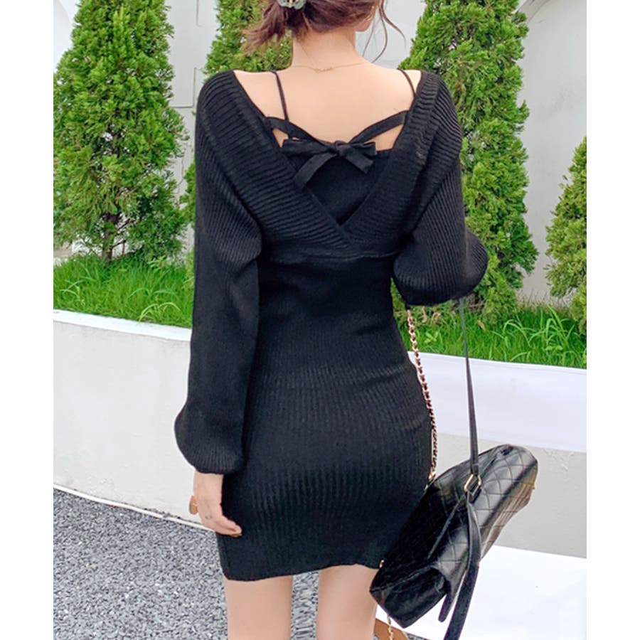 アンサンブル風リブニットワンピース バックリボン カシュクールワンピース