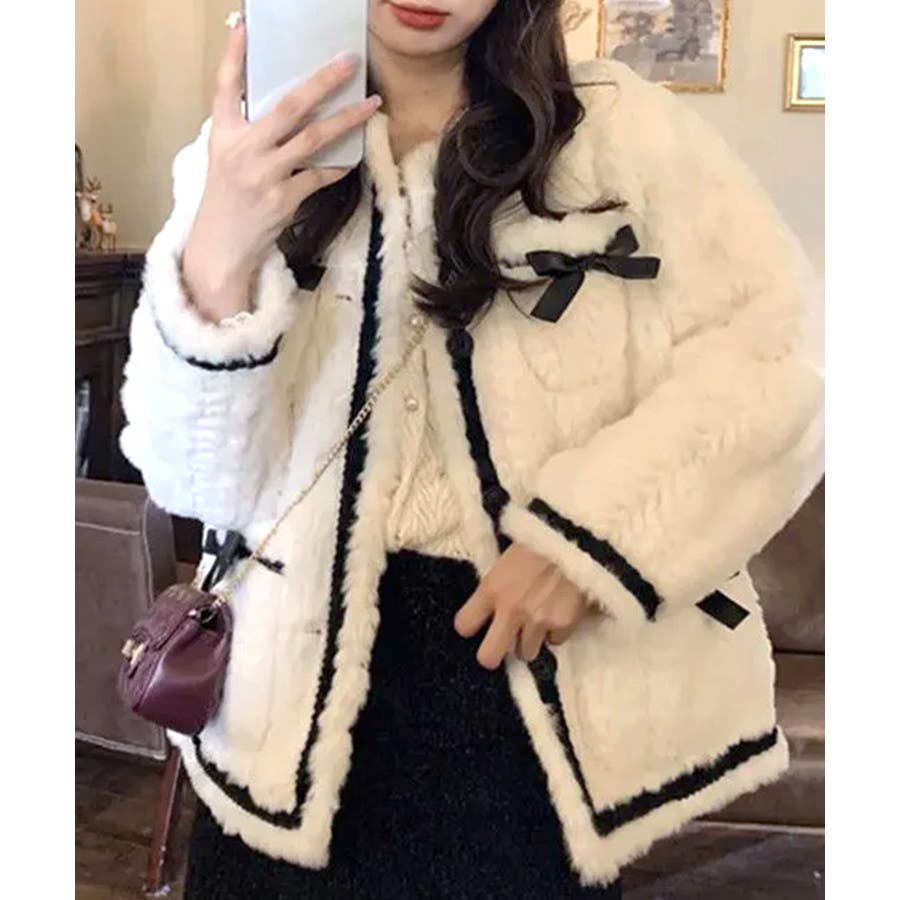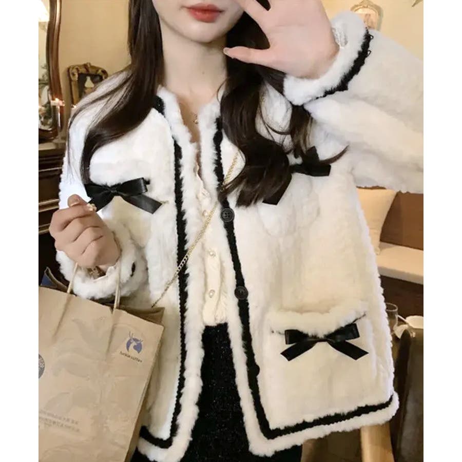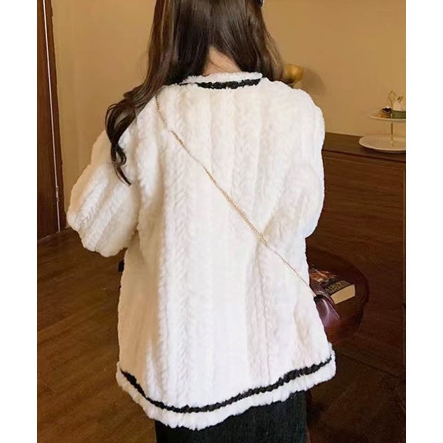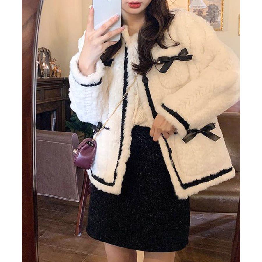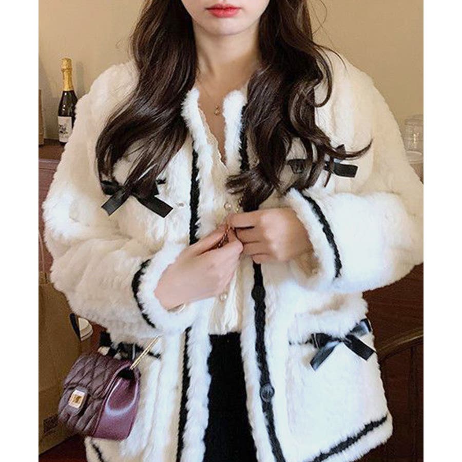 もこもこした肌触りが気持ち良いフェイクファーアウター。