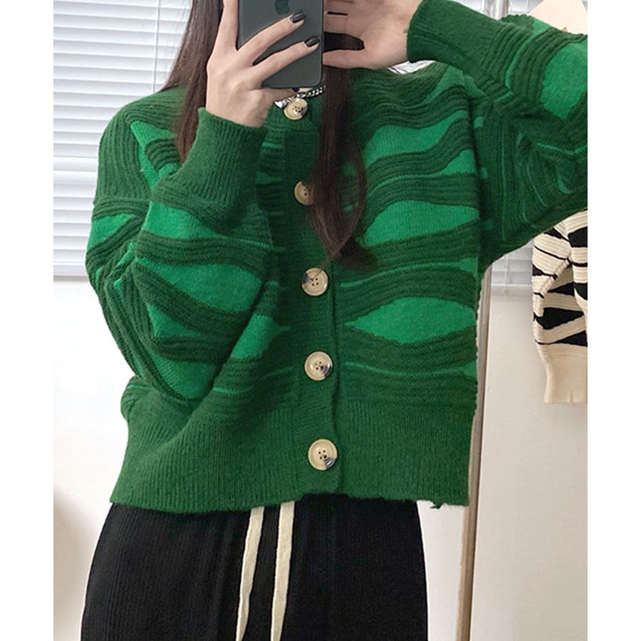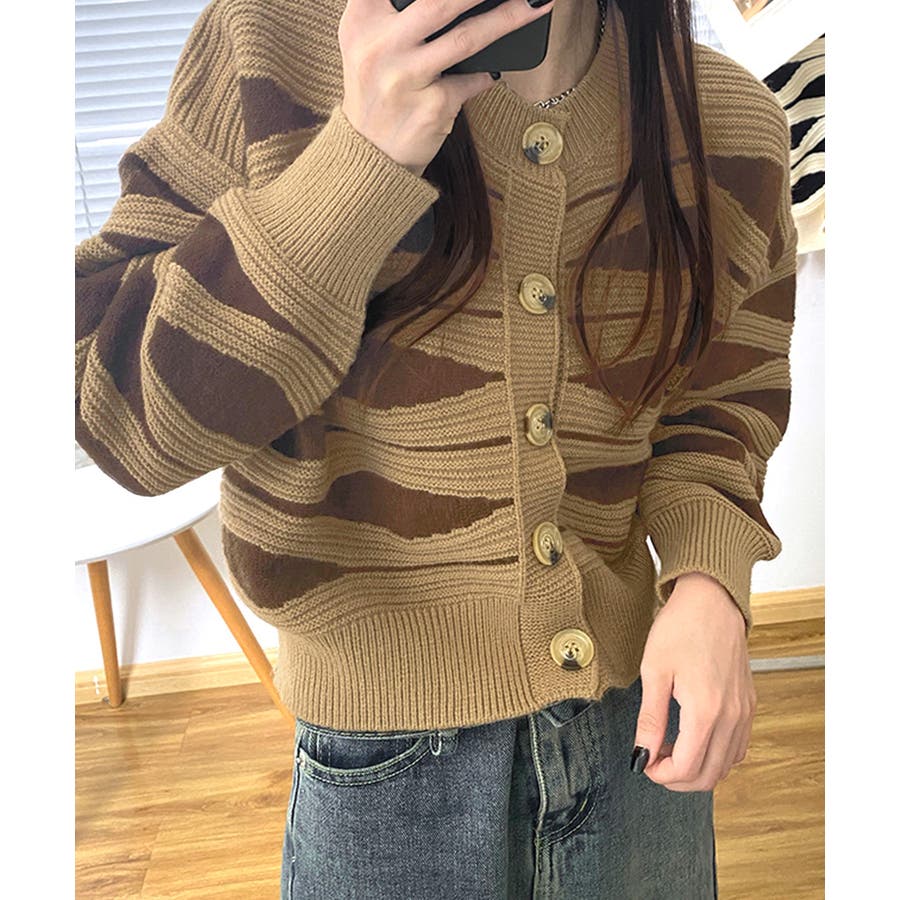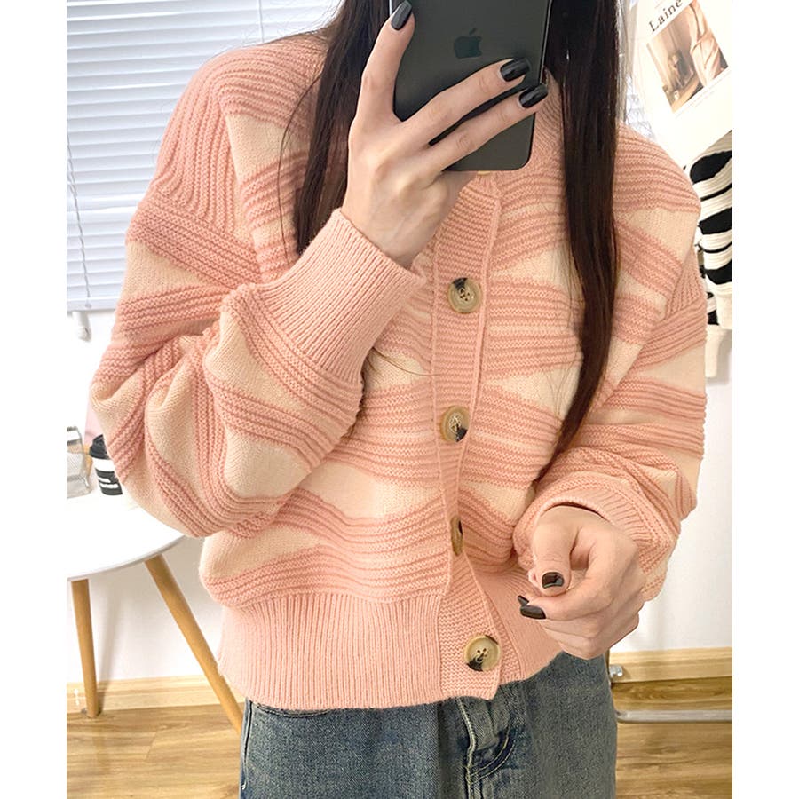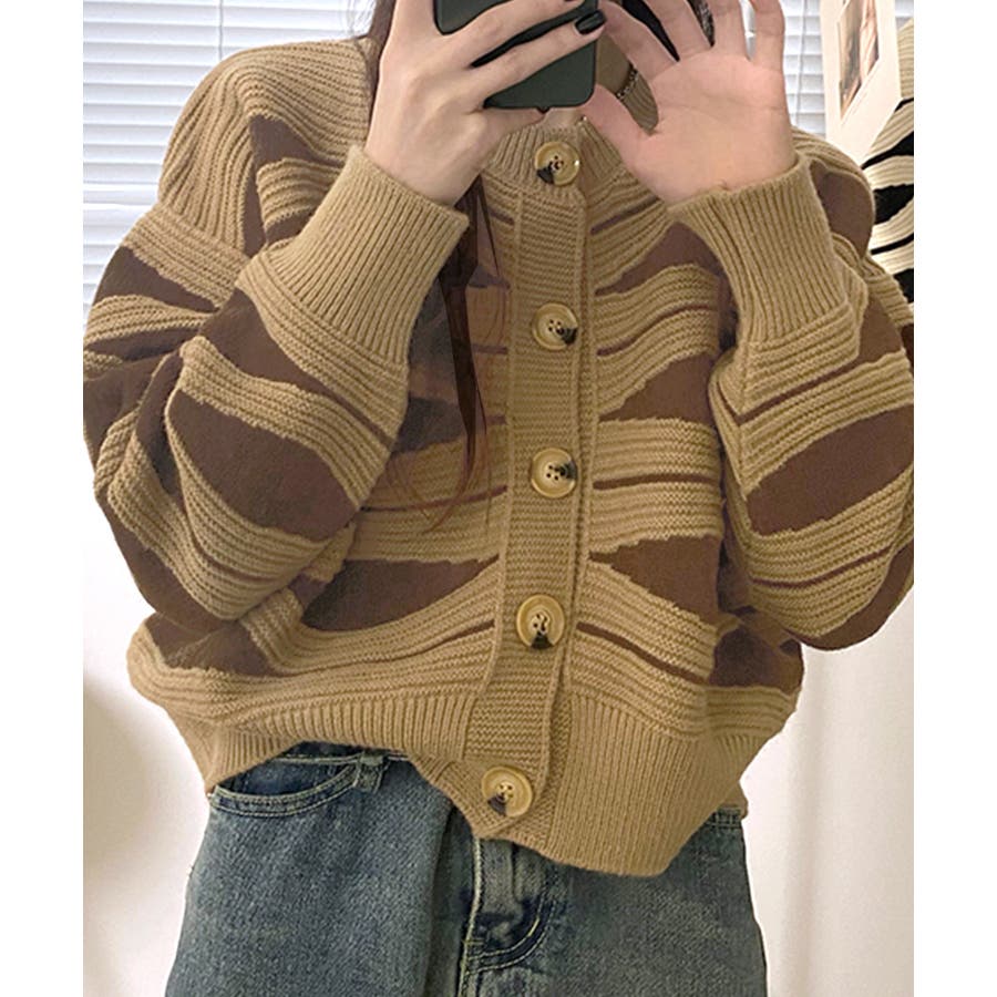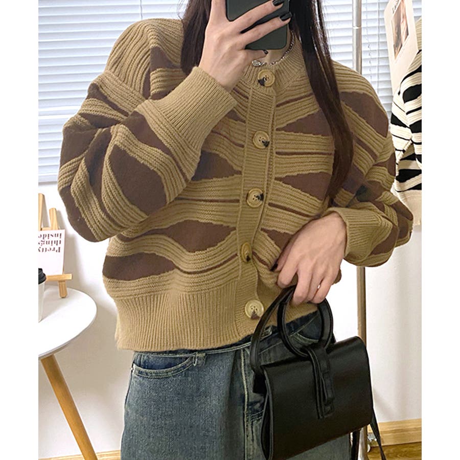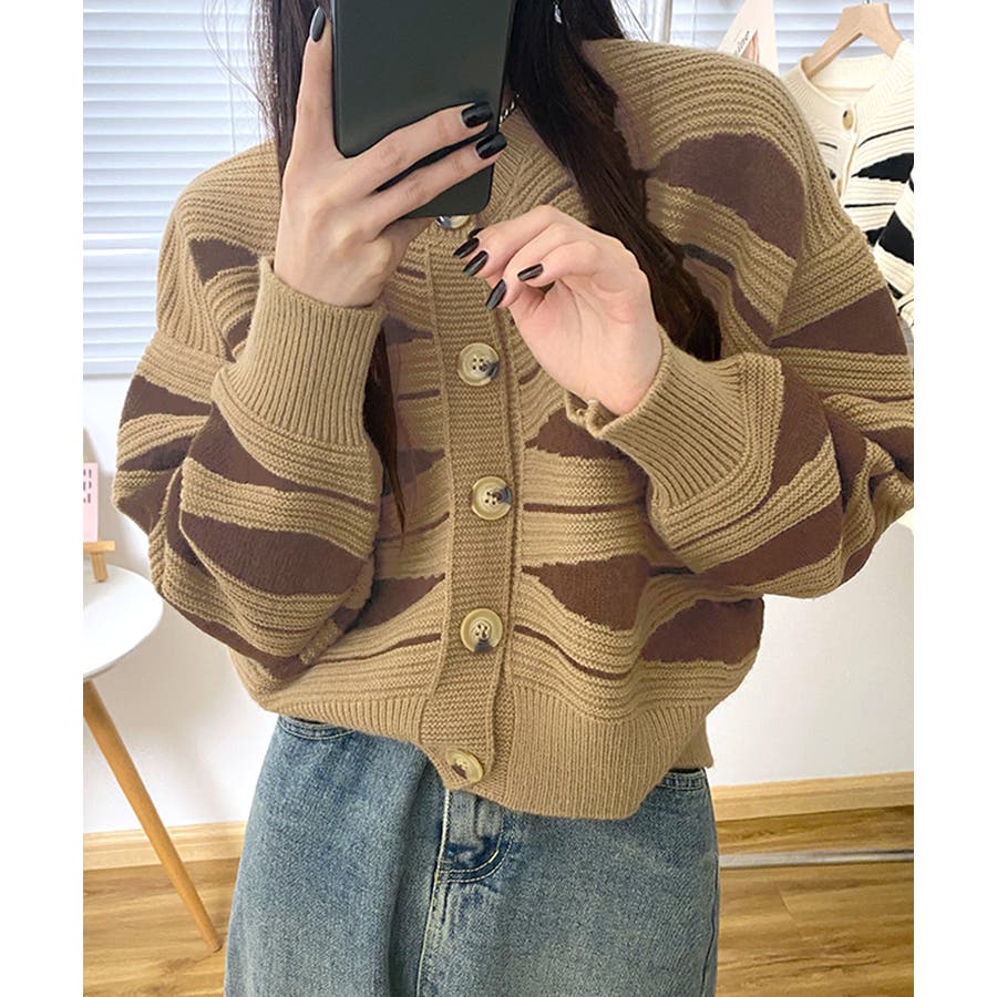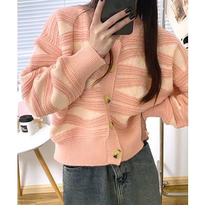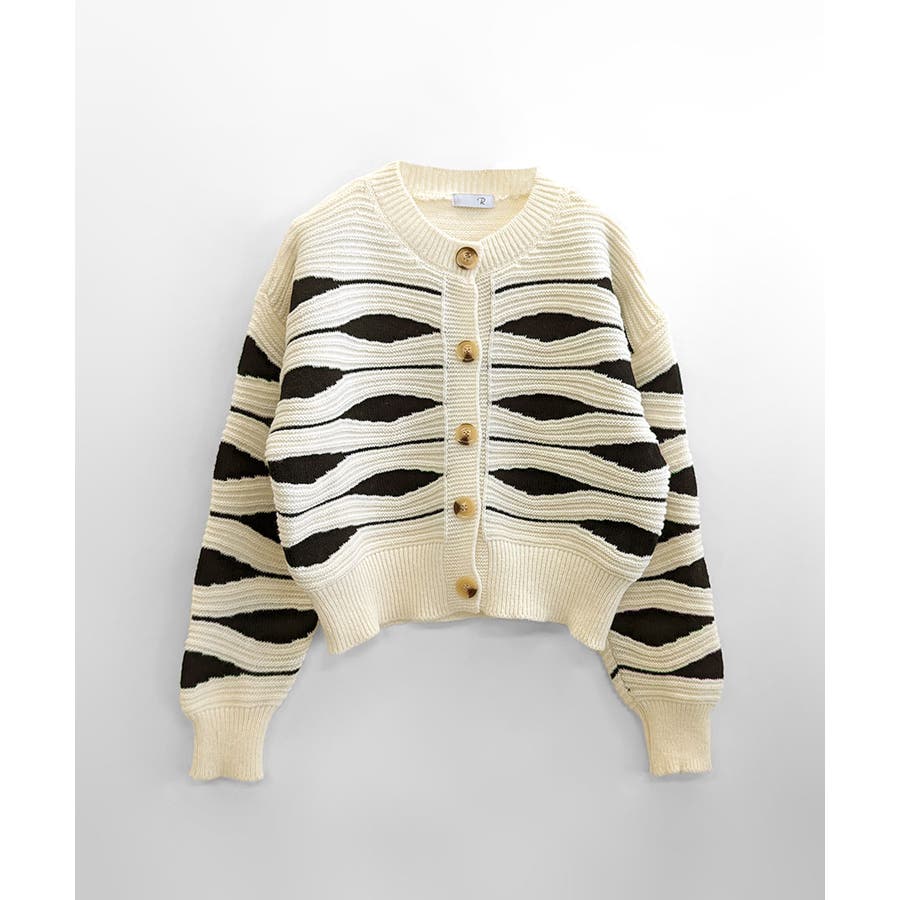 ニュアンスウェーブ柄がお洒落なニットカーディガン。