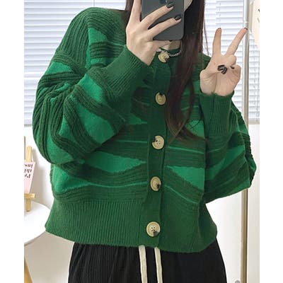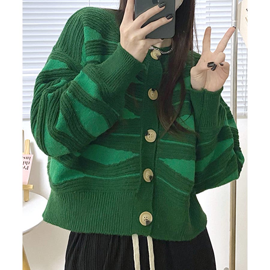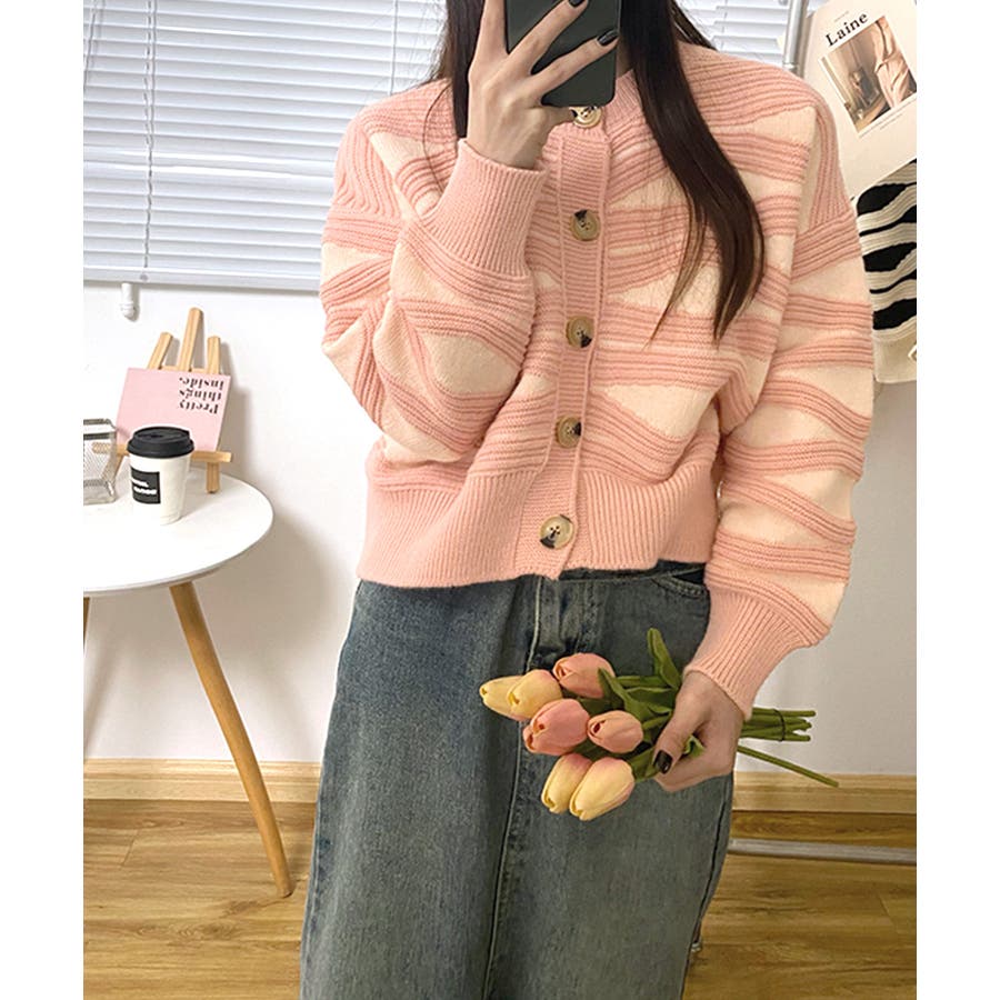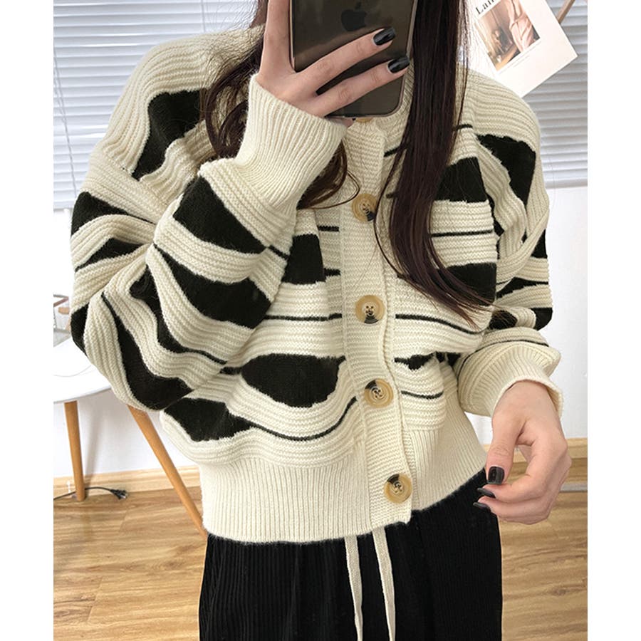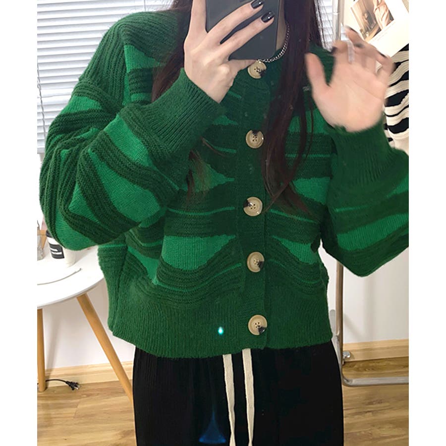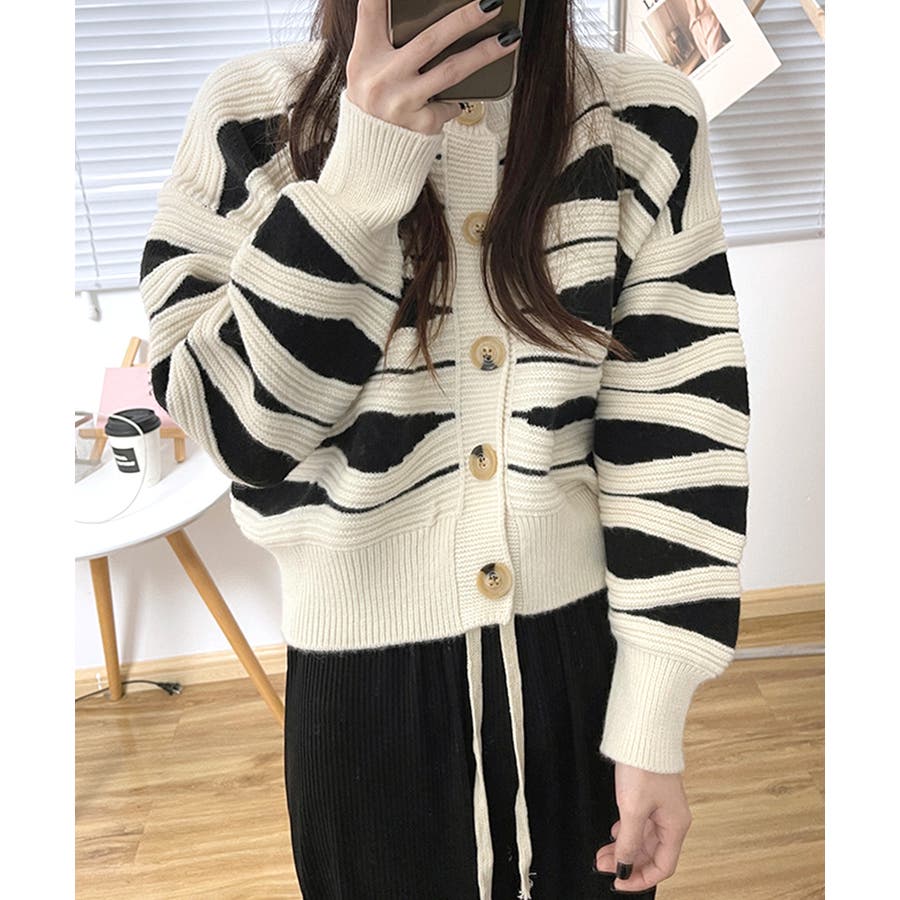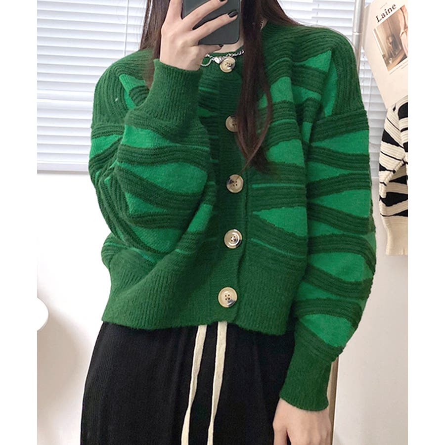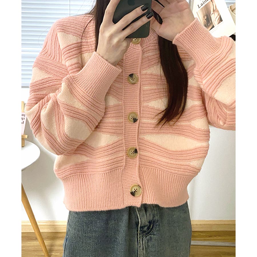 ニュアンスウェーブ柄がお洒落なニットカーディガン。
