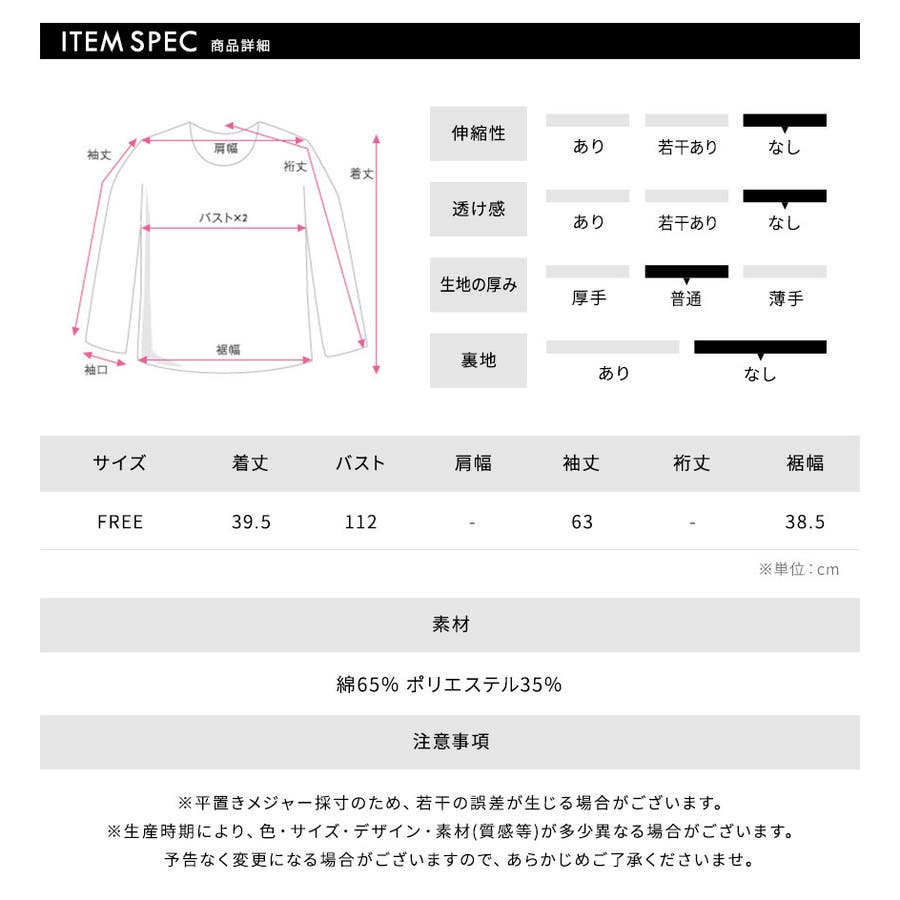 着丈:39.5cm / バスト:112cm / 袖丈:63cm / 裾幅:38.5cm