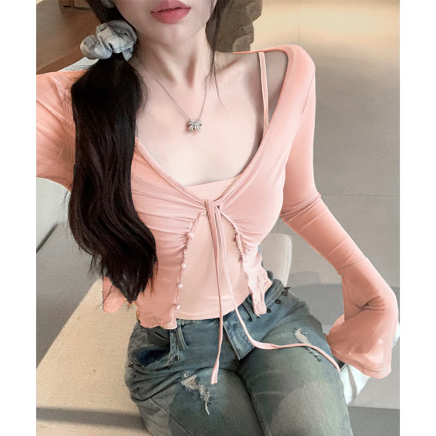 [2点セット] ベルスリーブシアーブラウス+キャミソールセット アンサンブル