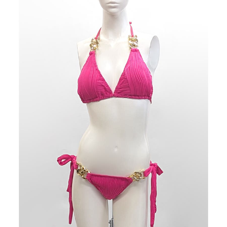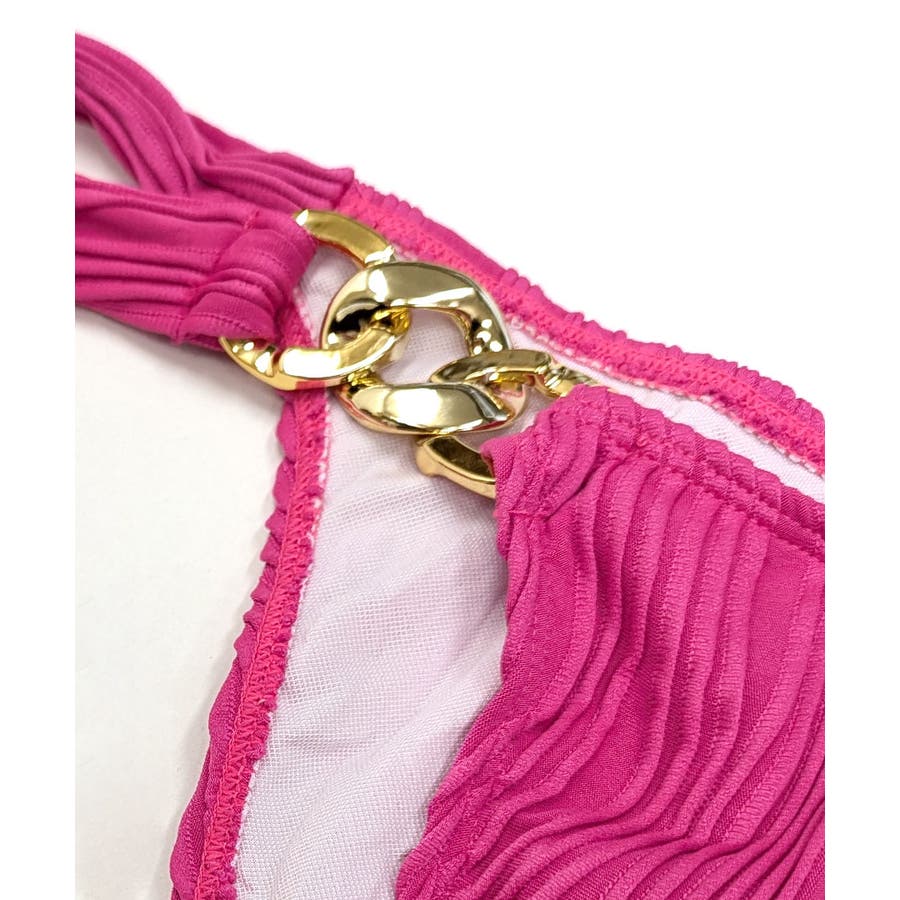 ホルターネックとゴールドのチェーンが華やかさをプラス。