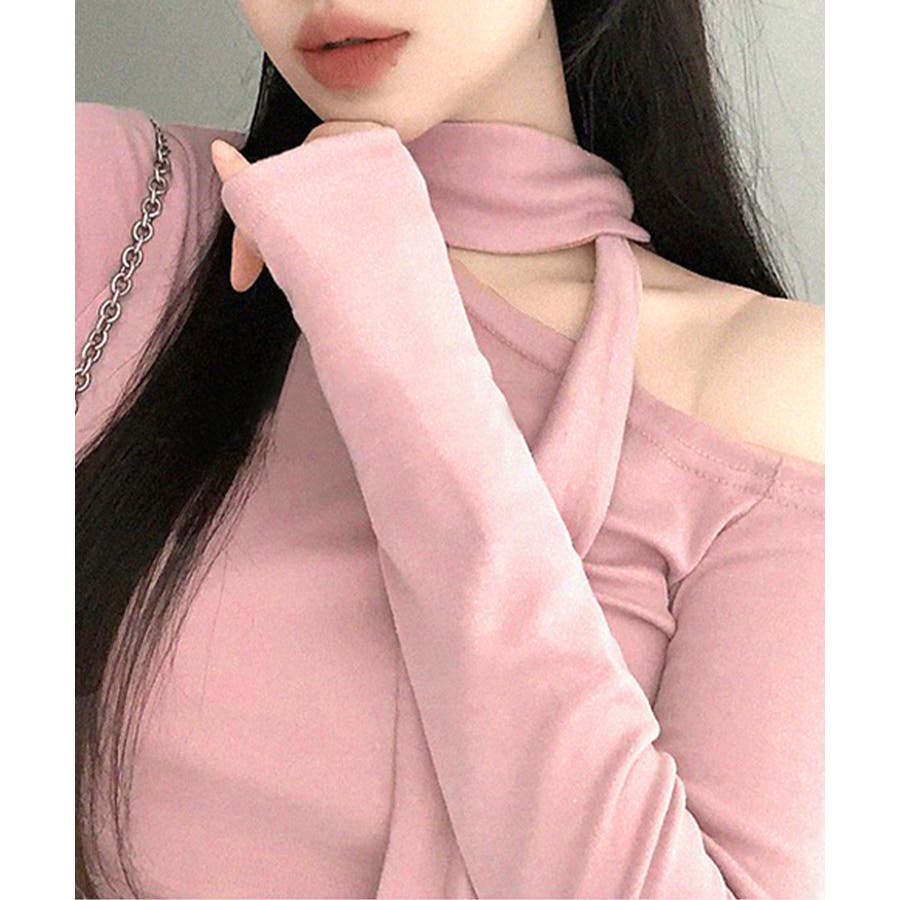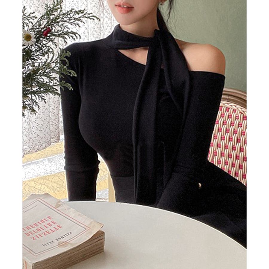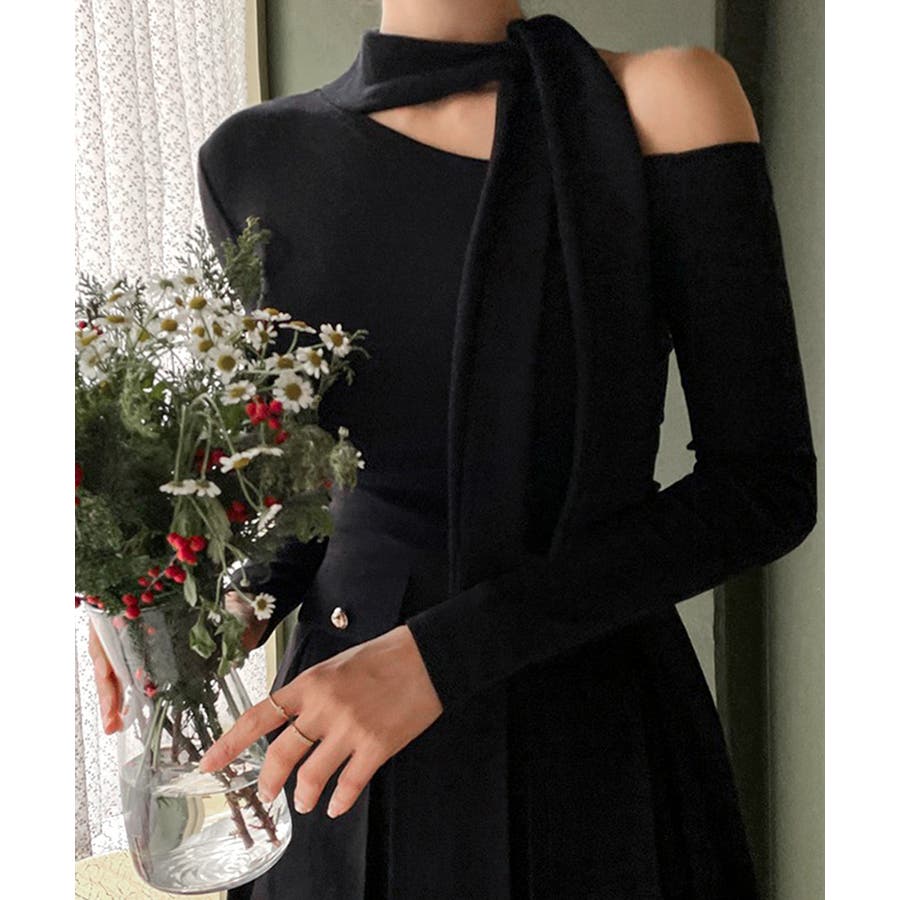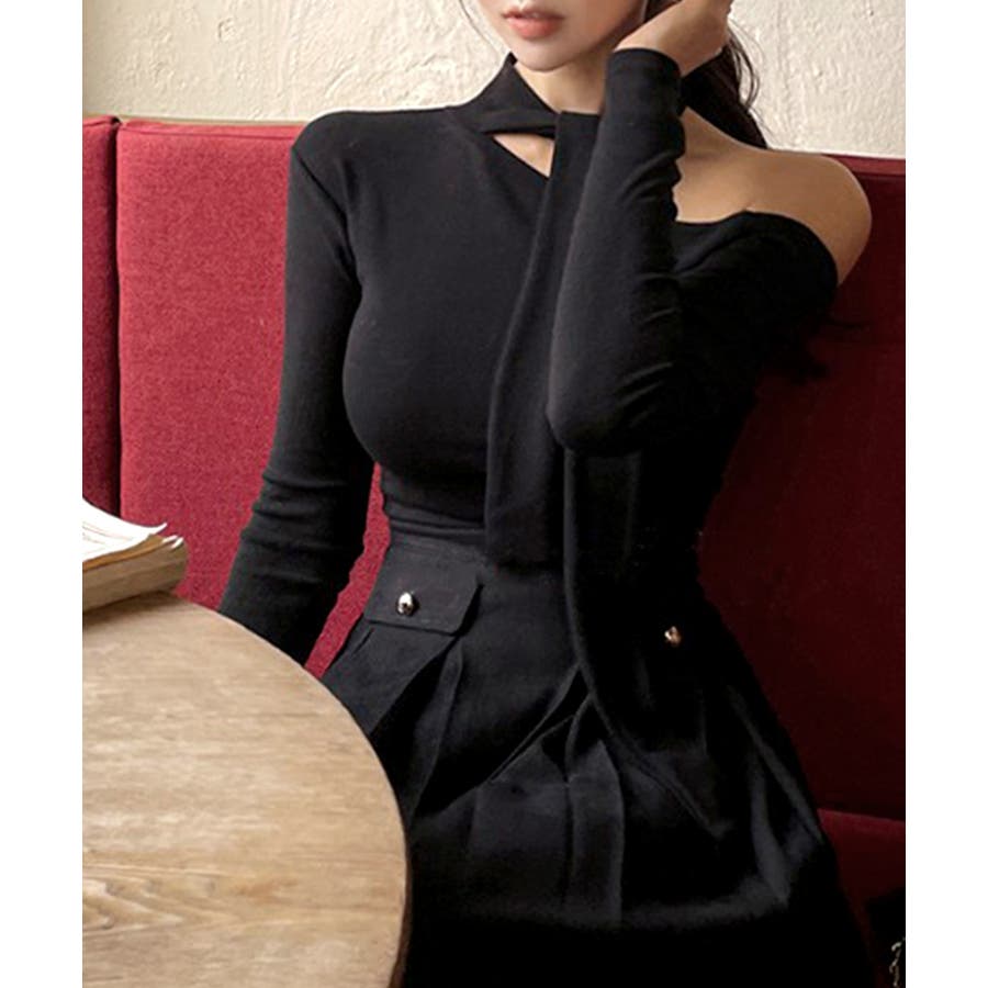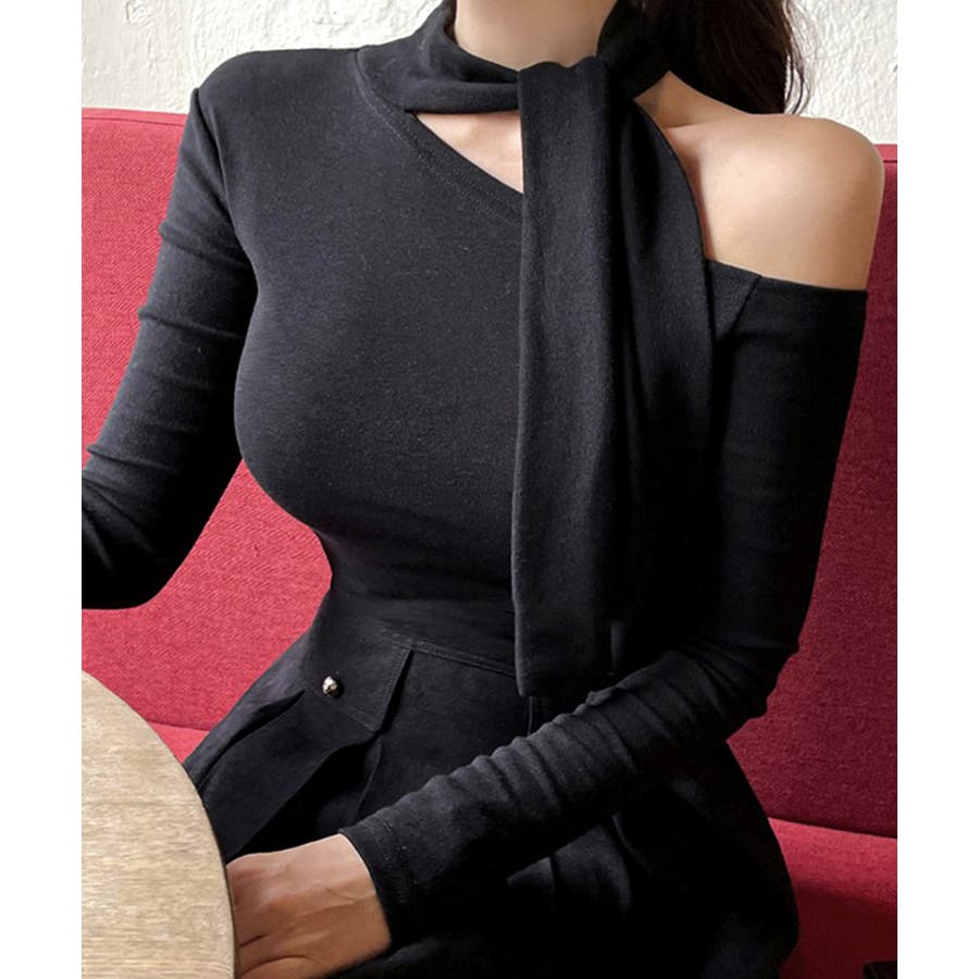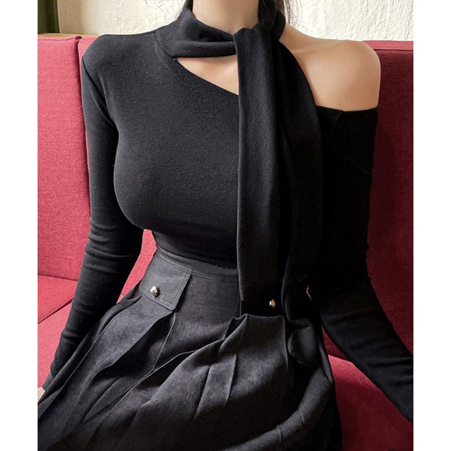 ワンショルダーマフラーデザイントップス チョーカー スカーフ