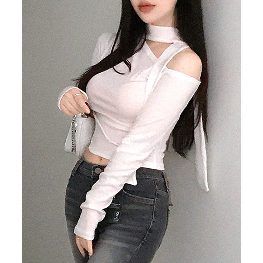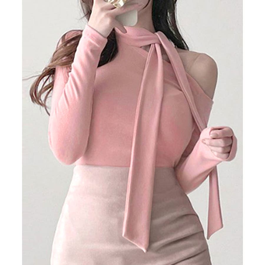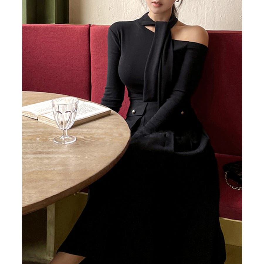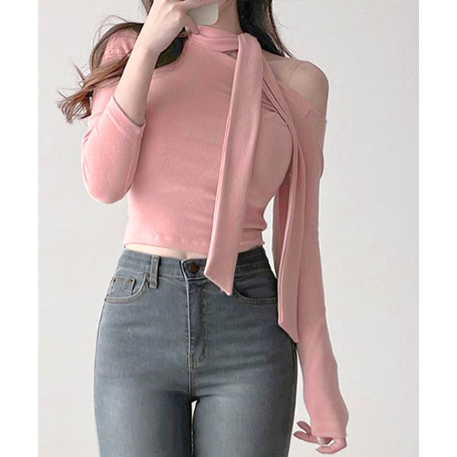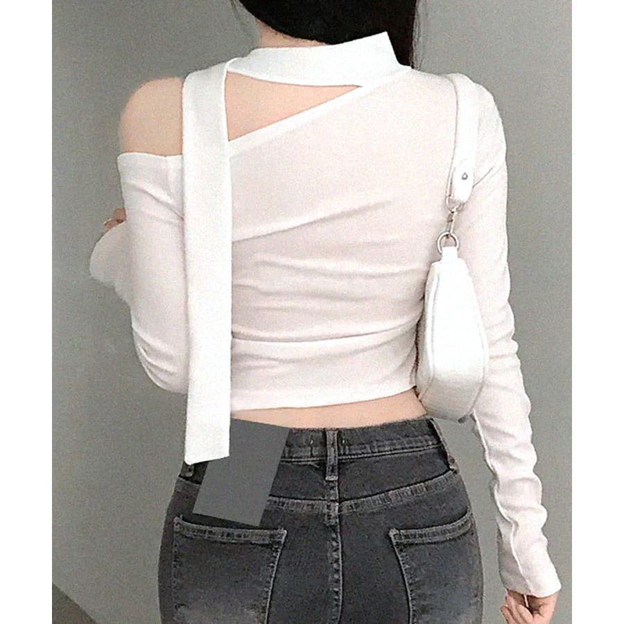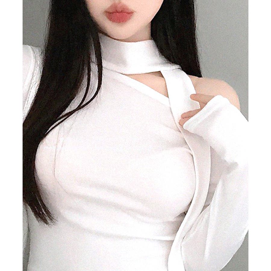 ワンショルダーマフラーデザイントップス チョーカー スカーフ