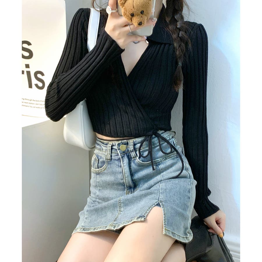 ・ハイウエストボトムと合わせるとよりスタイルアップ。