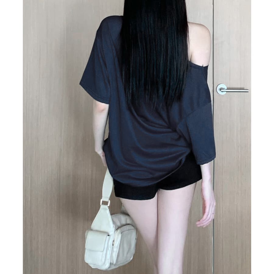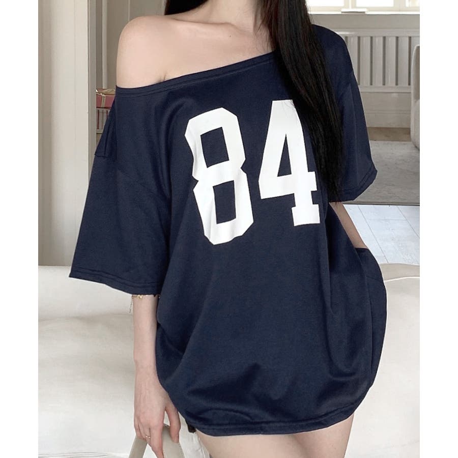 ワンショルダーナンバリングトップス Tシャツ ロゴ