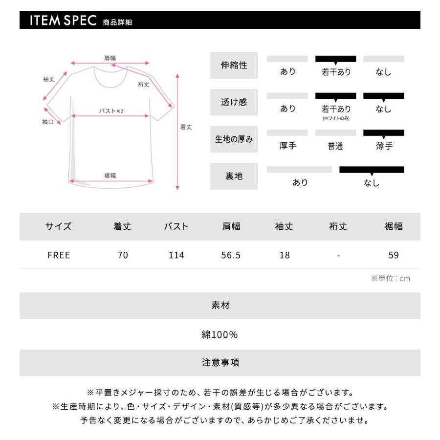 着丈:70cm / バスト:114cm / 肩幅:56.5cm / 袖丈:18cm / 裾幅:59cm
