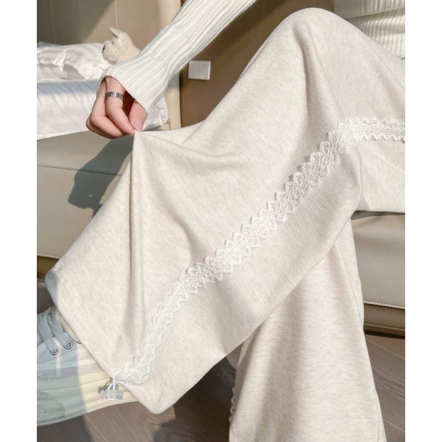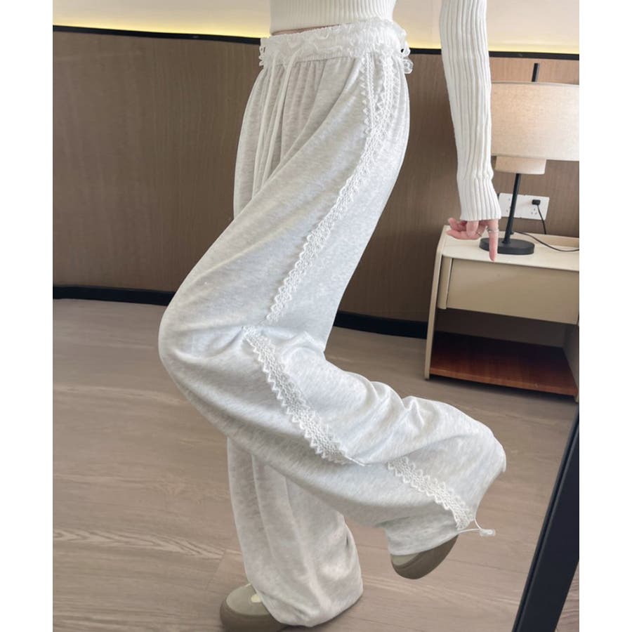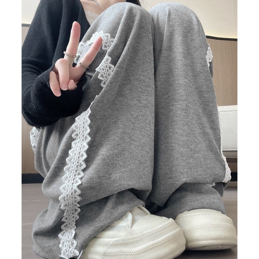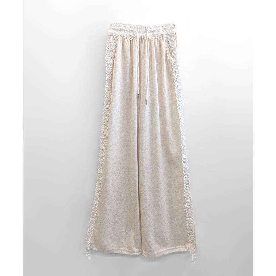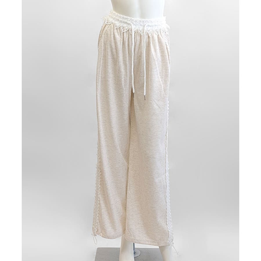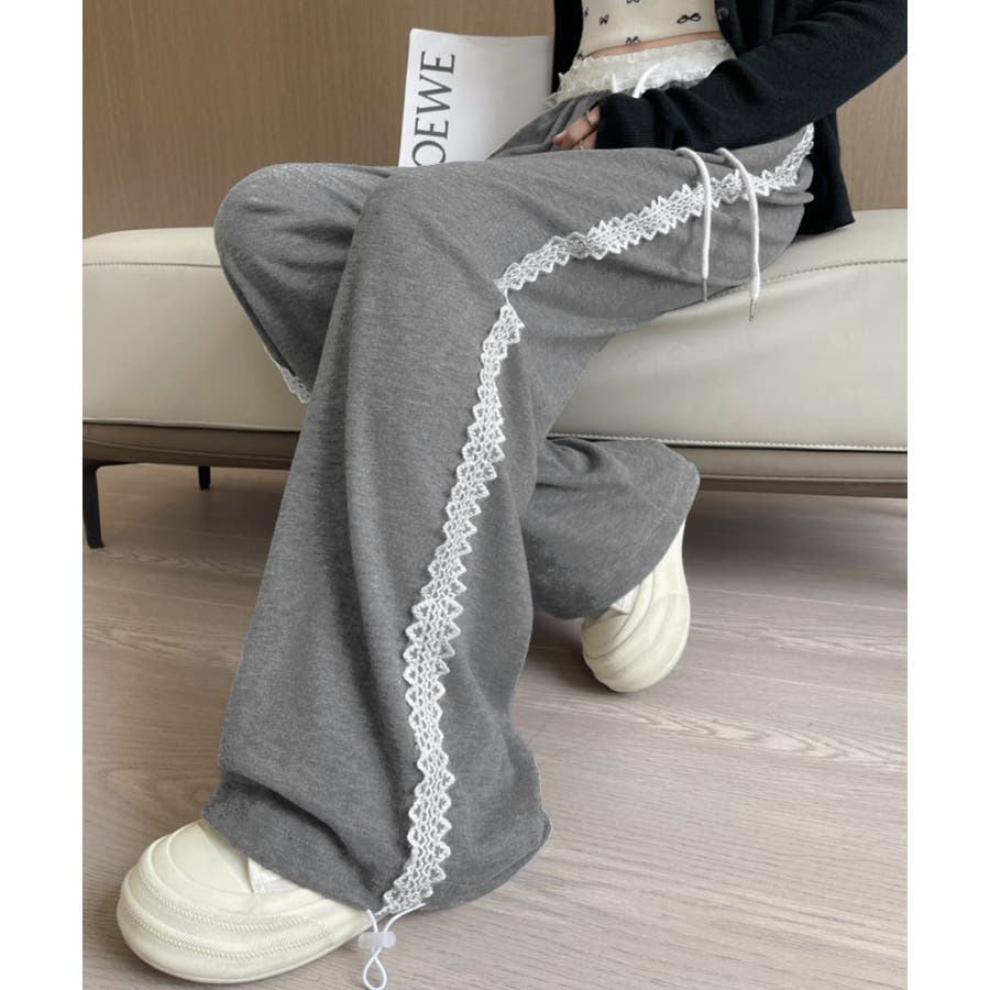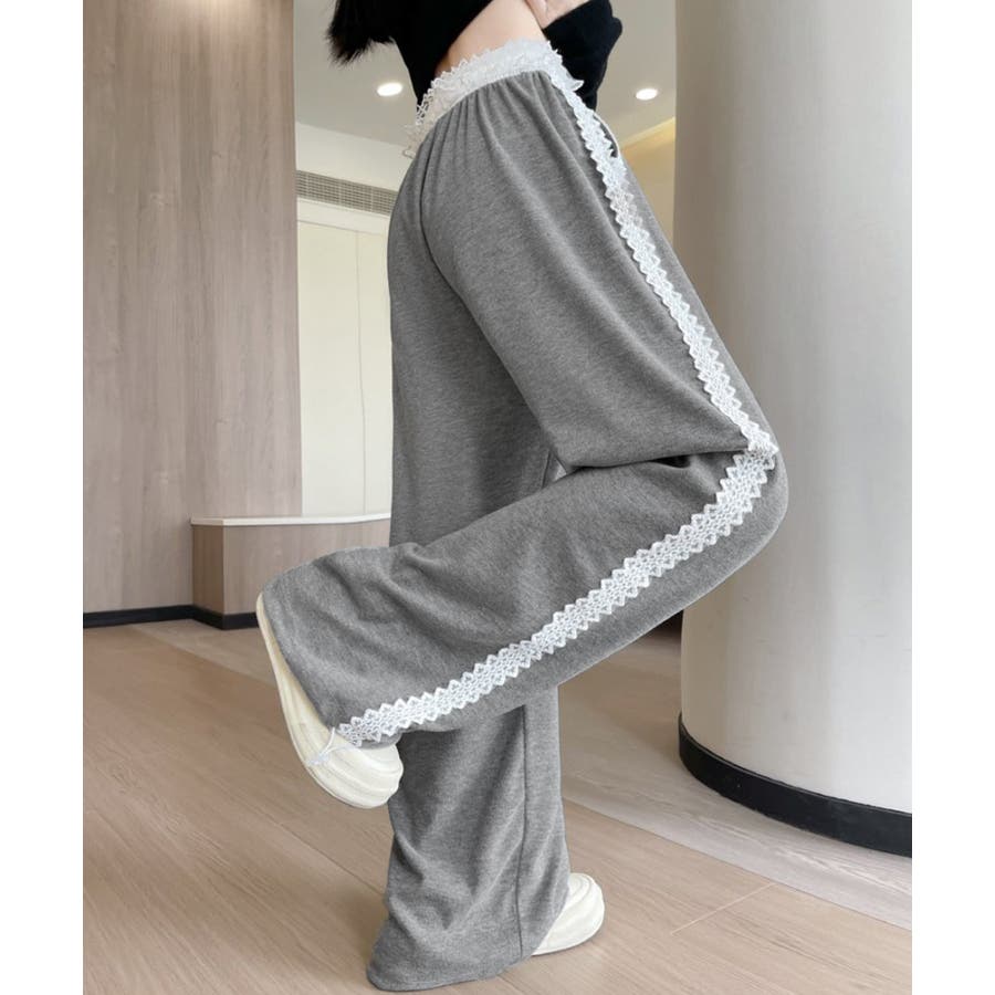 レーススウェットパンツ サイド刺繍 イージーパンツ