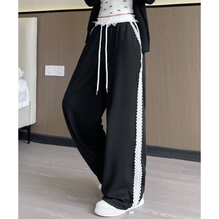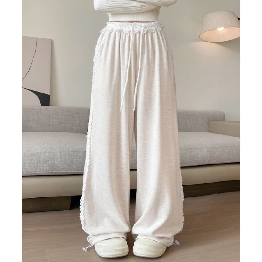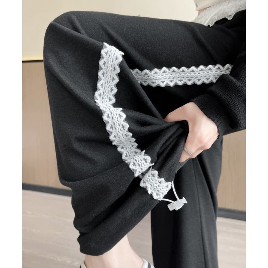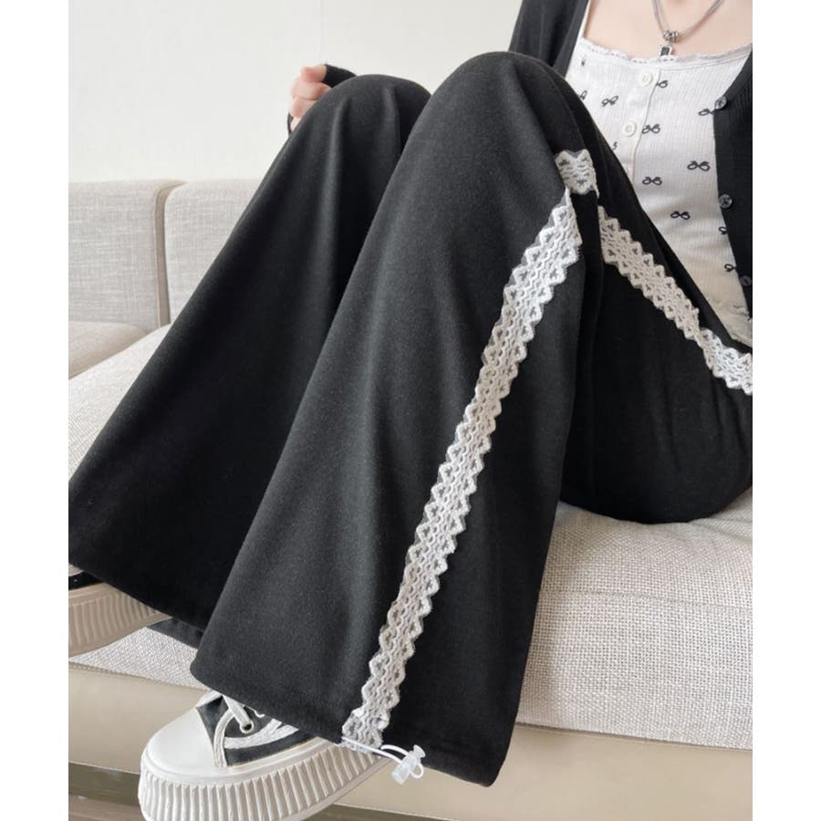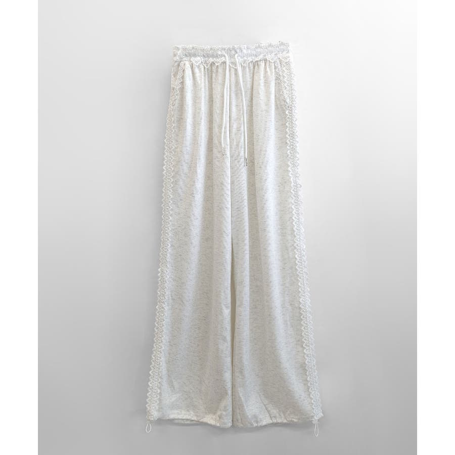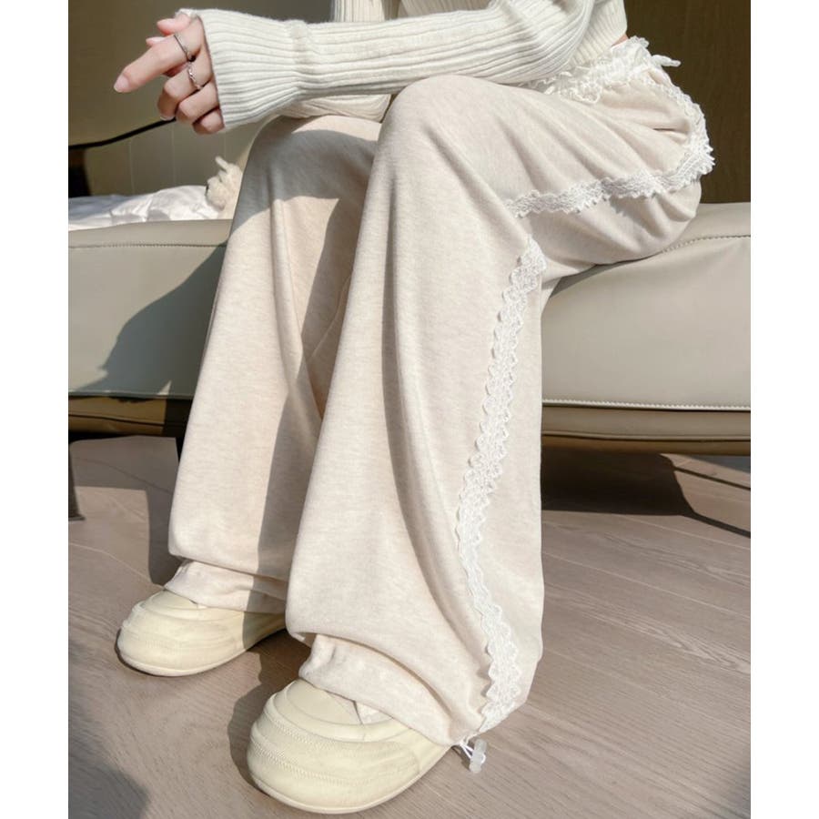 レーススウェットパンツ サイド刺繍 イージーパンツ