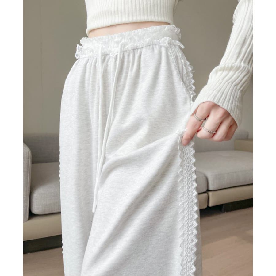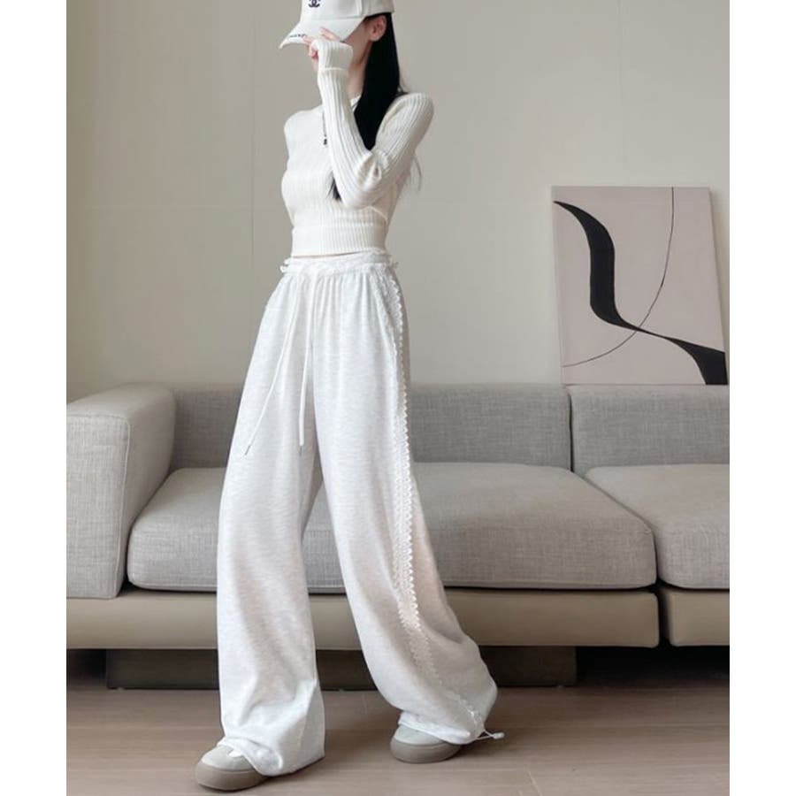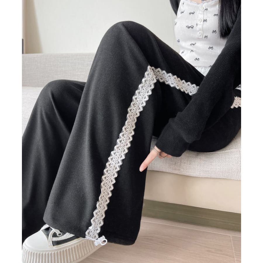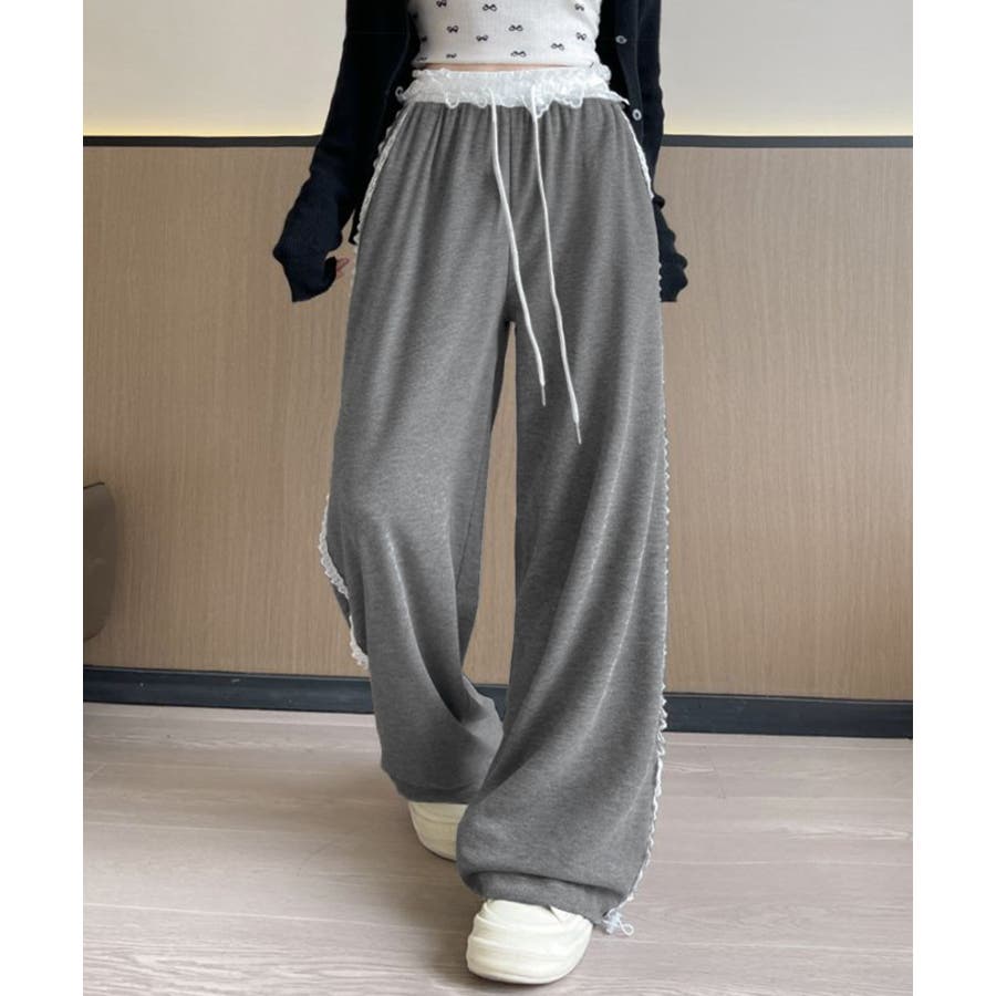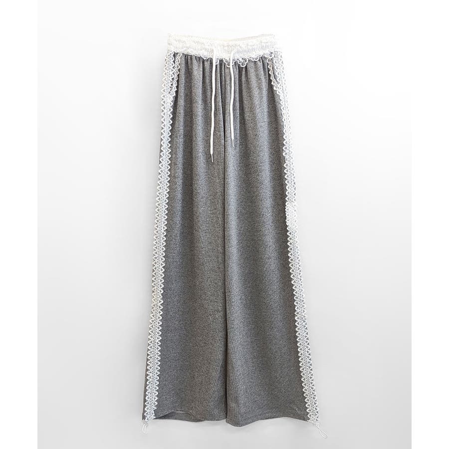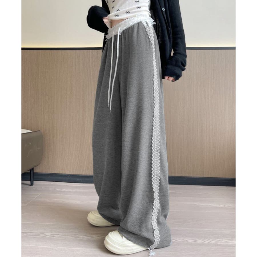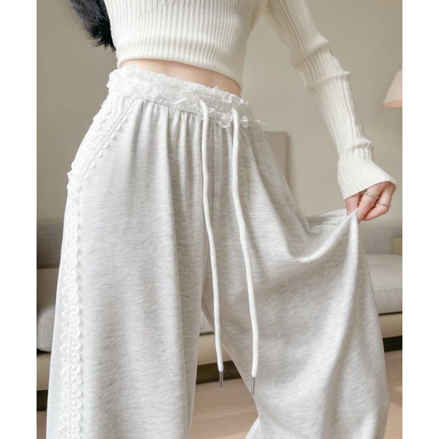 レーススウェットパンツ サイド刺繍 イージーパンツ